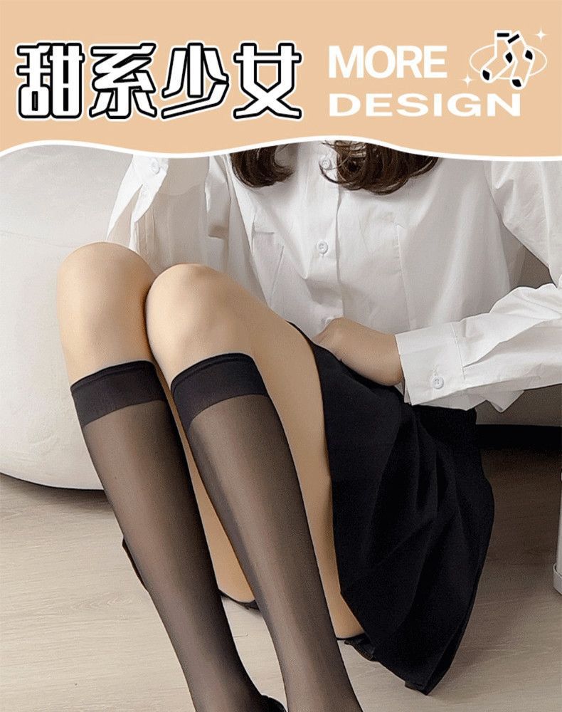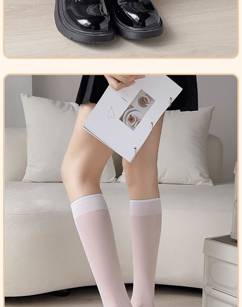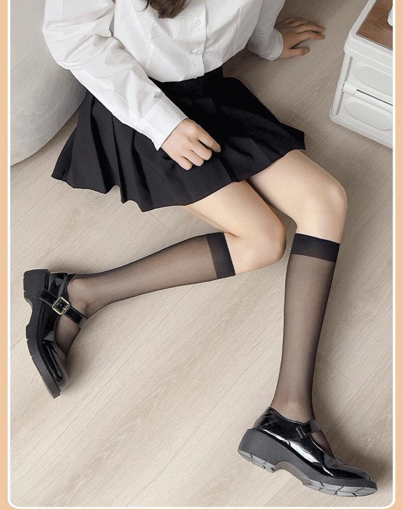 Calcetines Negros para Mujer, Calcetines de Media Caña para Primavera, Otoño e Invierno, Calcetines Largos sin Algodón, Calcetines por Encima de la Rodilla, Calcetines Jk de Media Caña, Calcetines Adelgazantes de Presión para Primavera y Verano