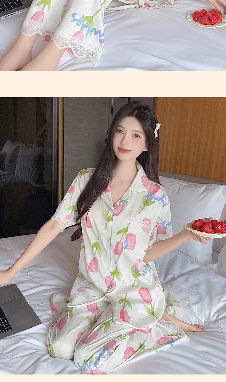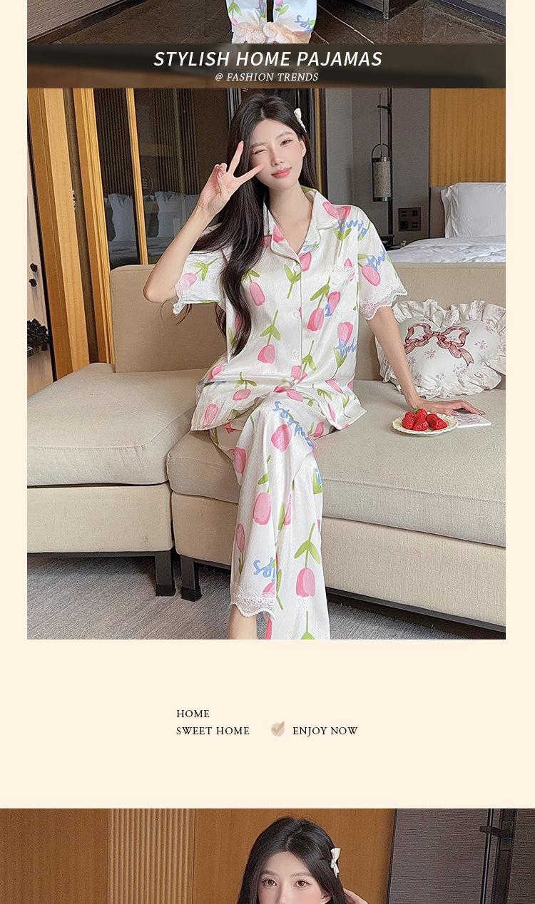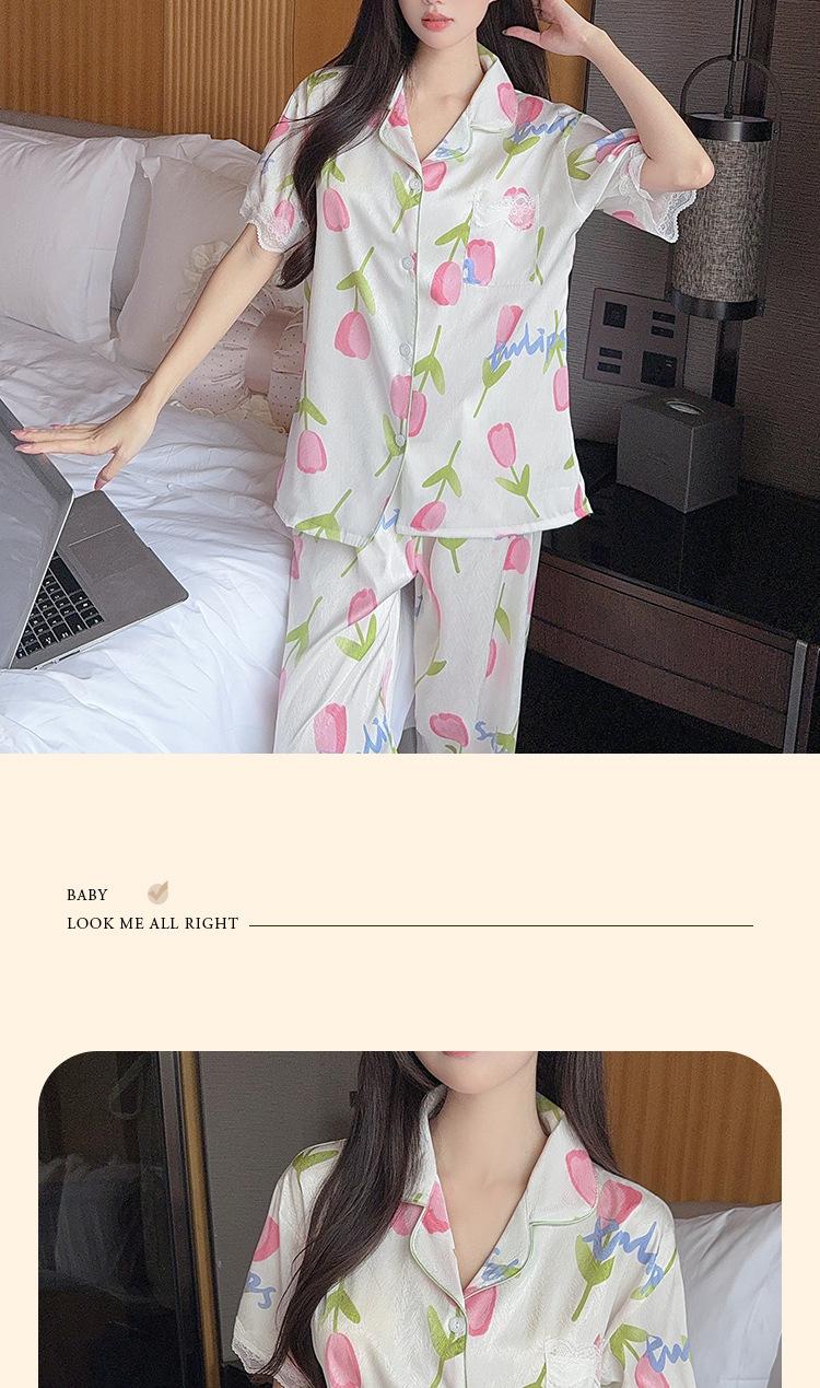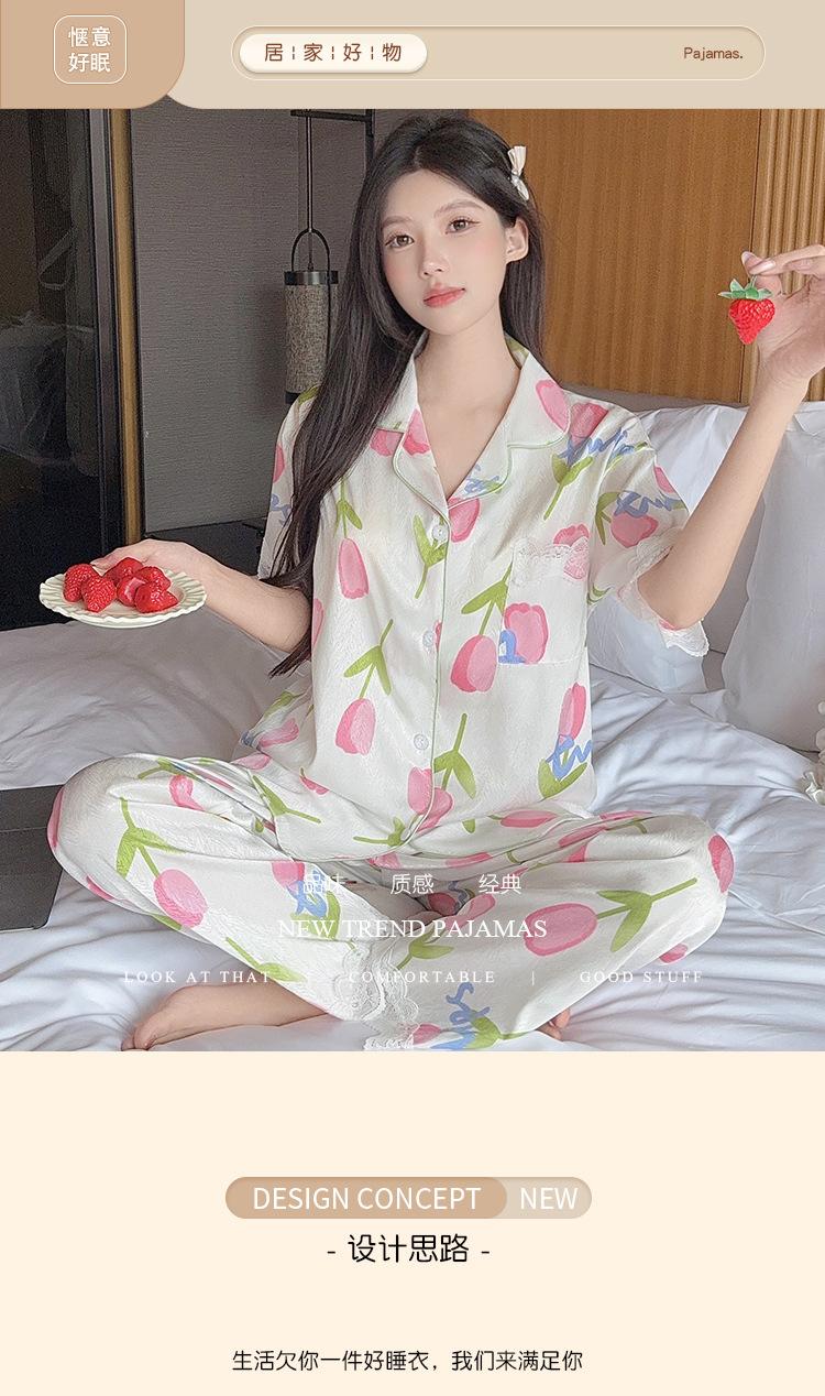"Tulip Two-Piece" Pijama Elegante Pastoral Francés de Seda de Hielo para Mujer Verano Fino Manga Corta Ropa para el Hogar Mayoreo