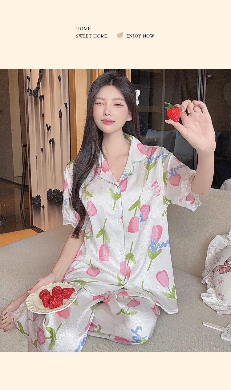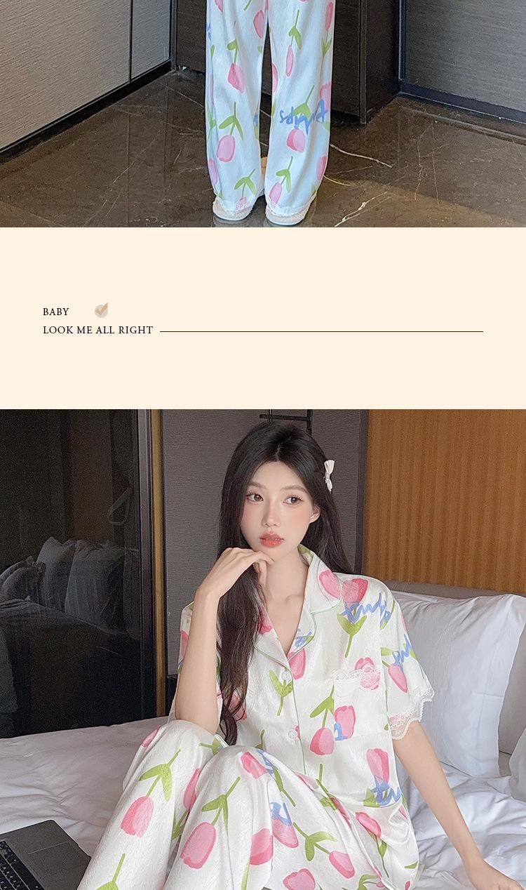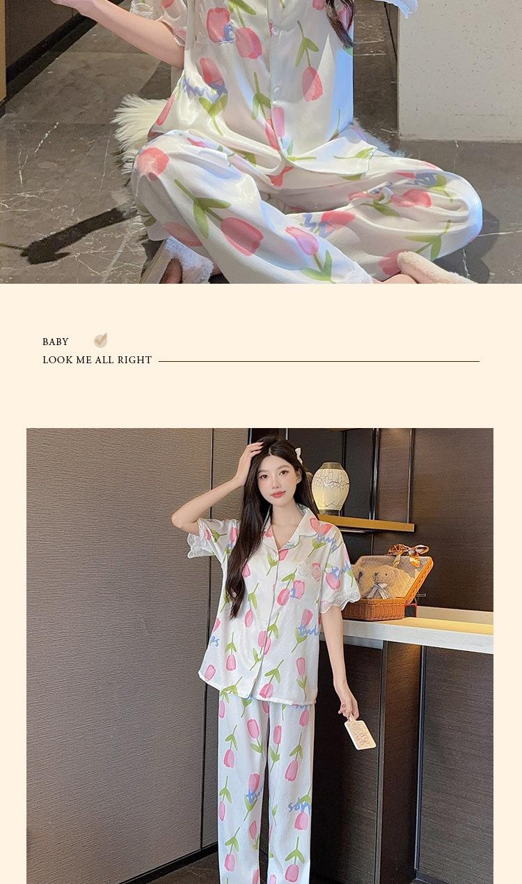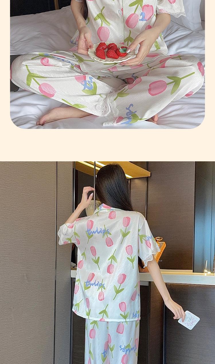 "Tulip Two-Piece" Pijama Elegante Pastoral Francés de Seda de Hielo para Mujer Verano Fino Manga Corta Ropa para el Hogar Mayoreo