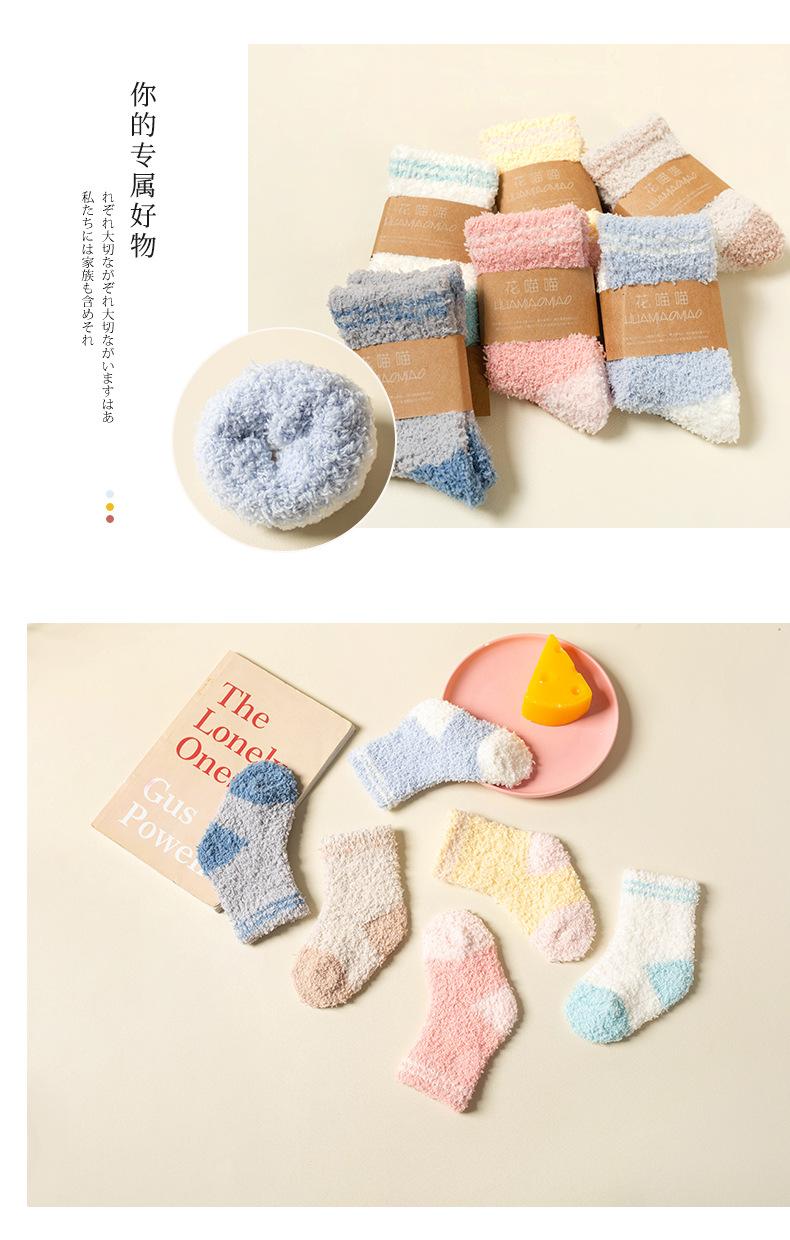 Calcetines personalizados de terciopelo coral Calcetines de media pantorrilla Calcetines afelpados gruesos y cálidos Calcetines de felpa para piso Transpirables Absorbentes de sudor Calcetines para niños