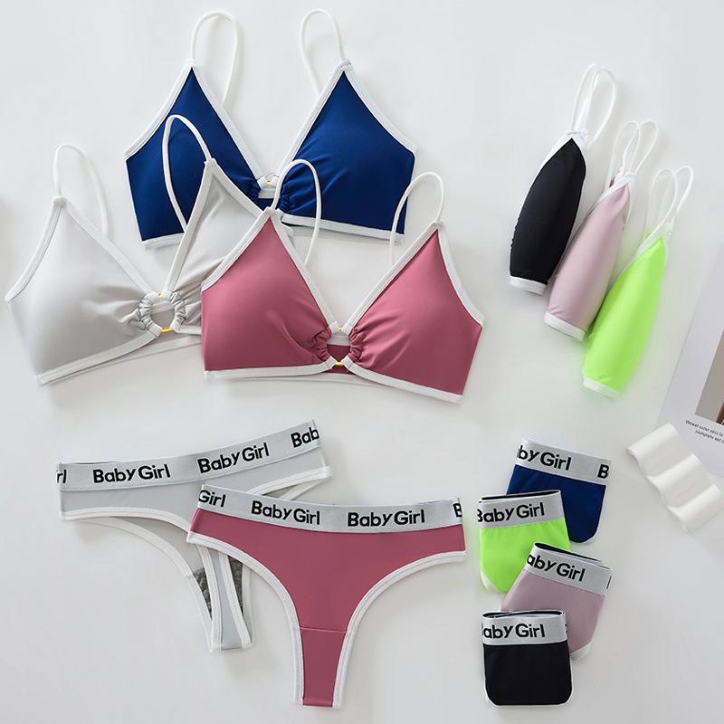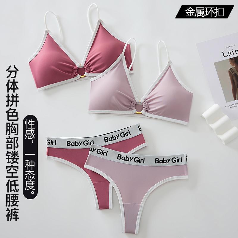 Conjunto de Brasier de Venta Caliente Transfronterizo, Chaleco Sexy de Espalda Hermosa, Deseo Puro, Ropa Interior con Tirantes Push-Up para Busto Pequeño, Conjunto de Dos Piezas Tanga