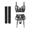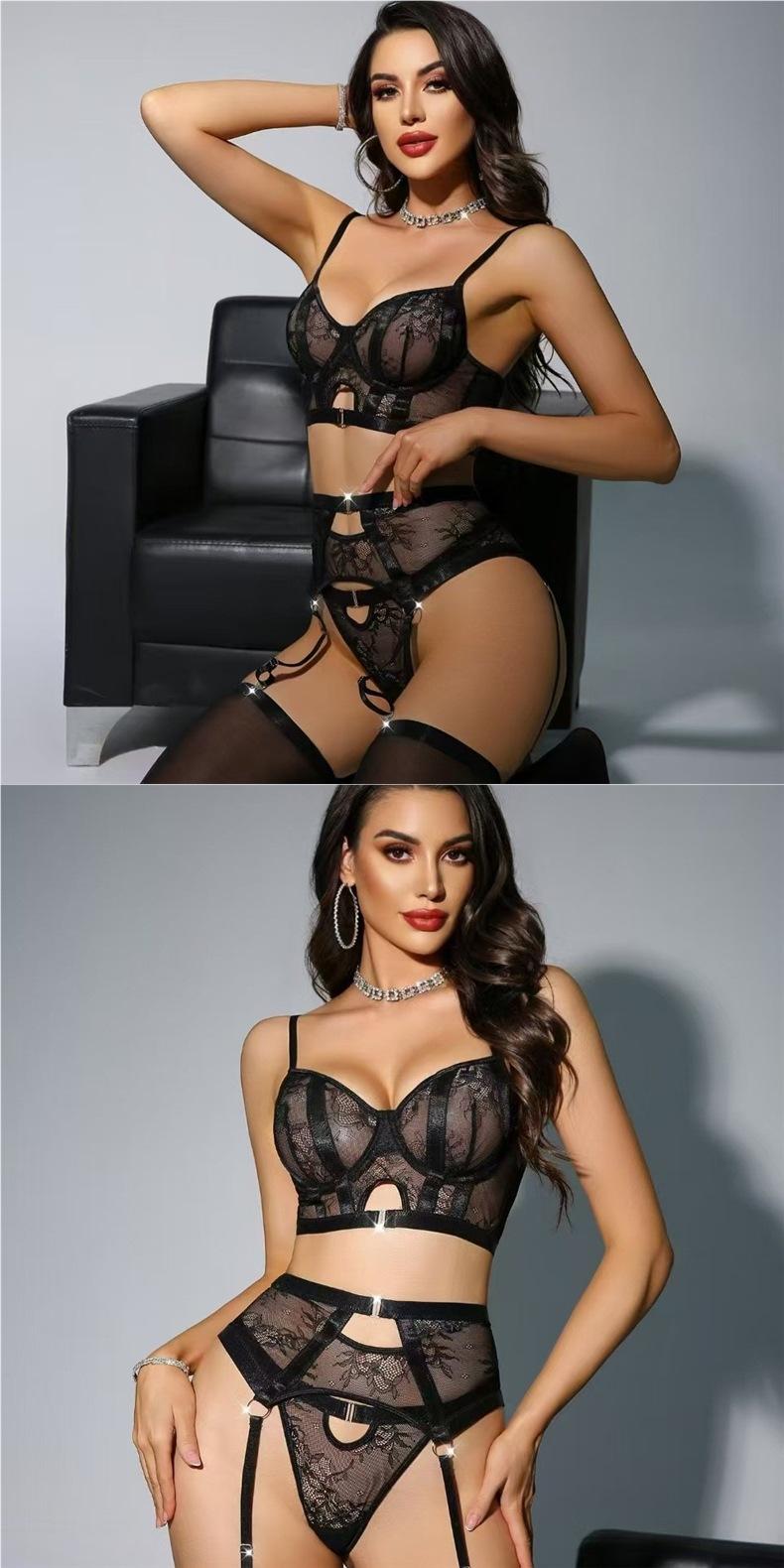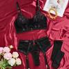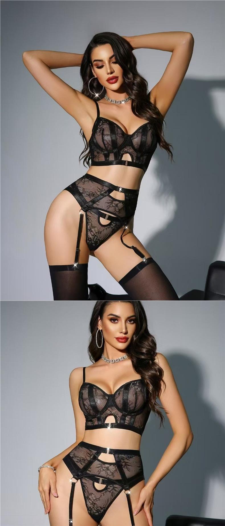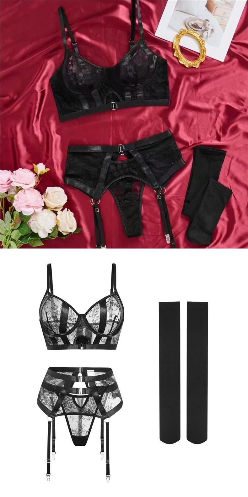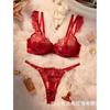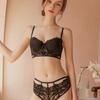 Encaje Europeo y Americano Ropa Interior Negra Hueca Sexy Sujetador con Varilla Ropa Interior Push-Up para Mujer Set de Ropa Interior Sujetador Delgado