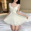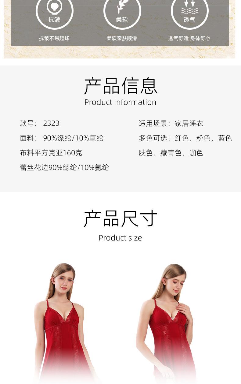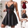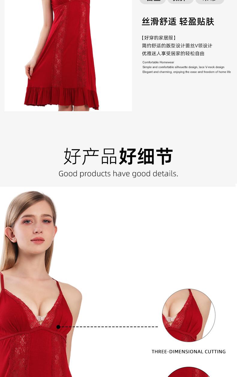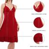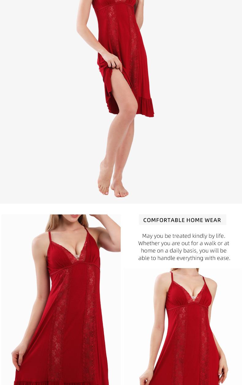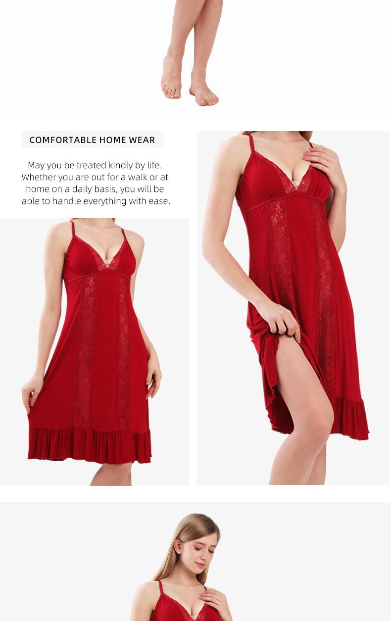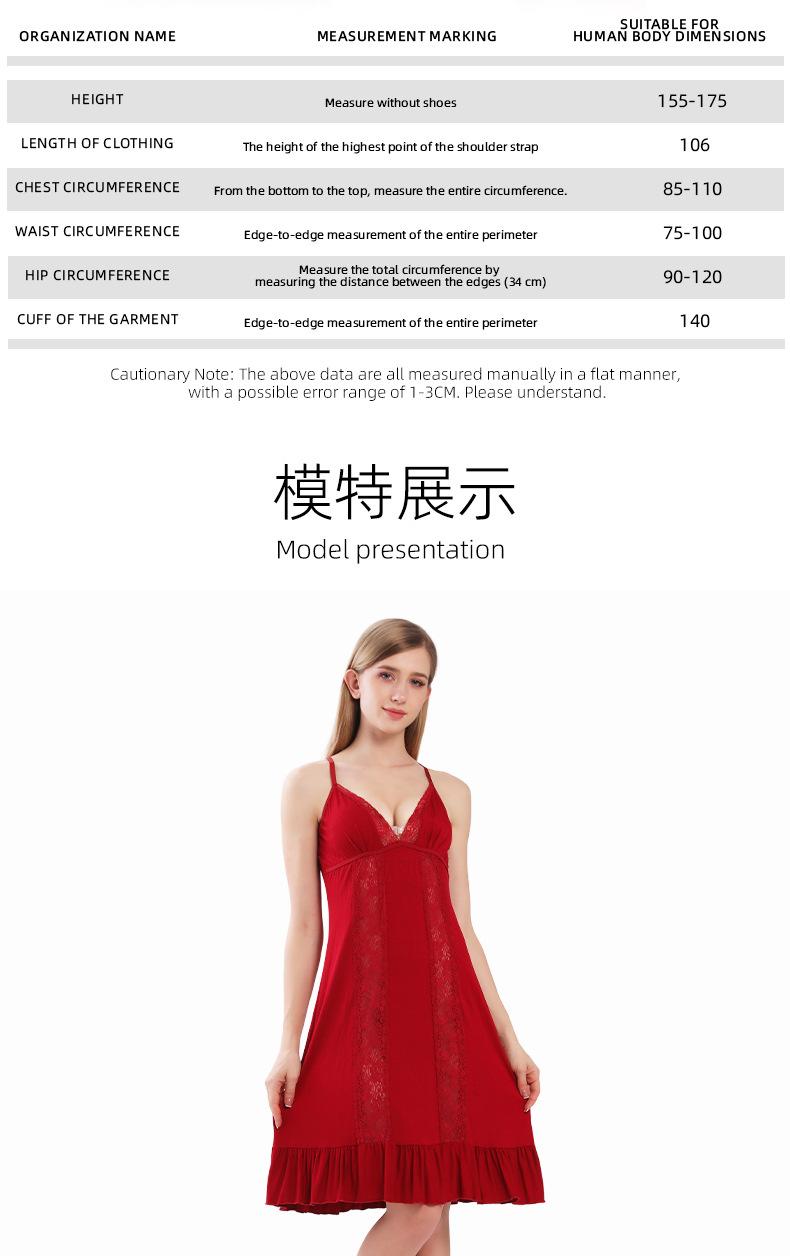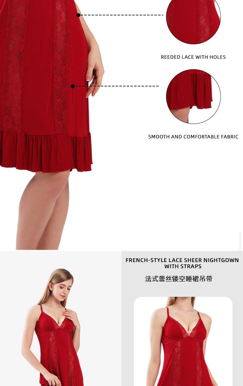 Camisón de Verano Europeo y Americano Estilo Francés, Camisón Transpirable, Camisón Camisola de Alta Gama, Ropa de Noche Sexy Semitransparente Roja al por Mayor
