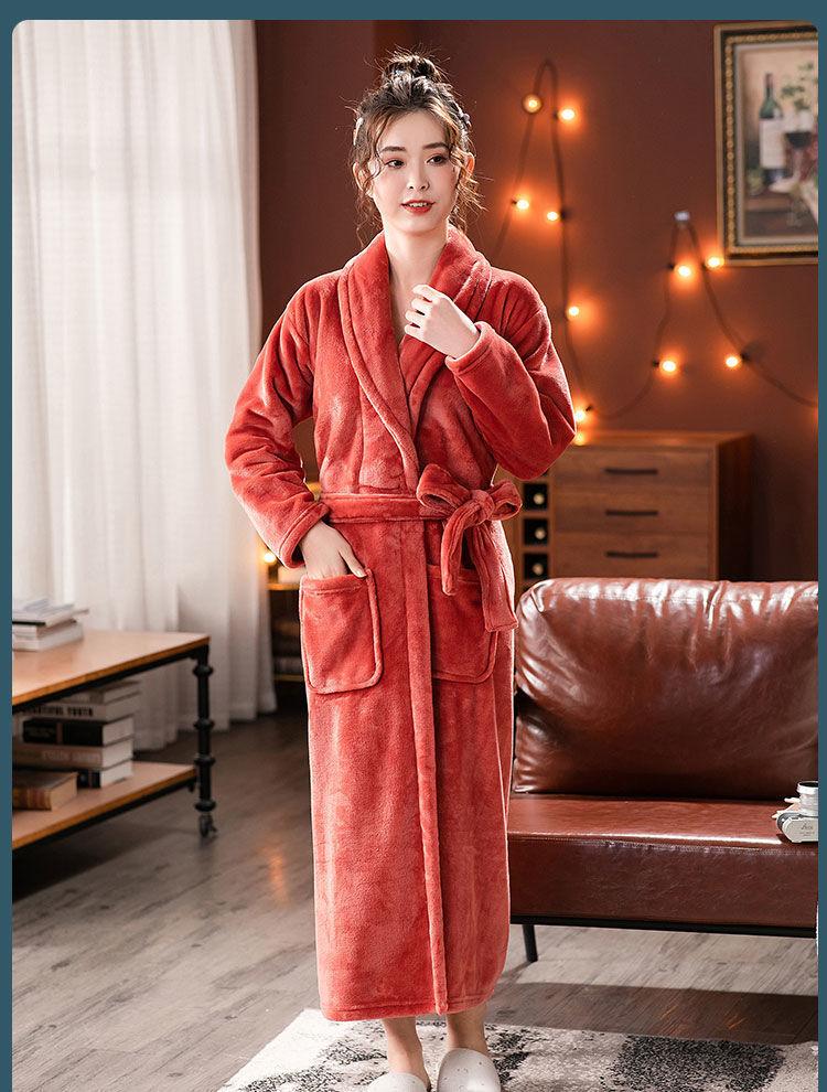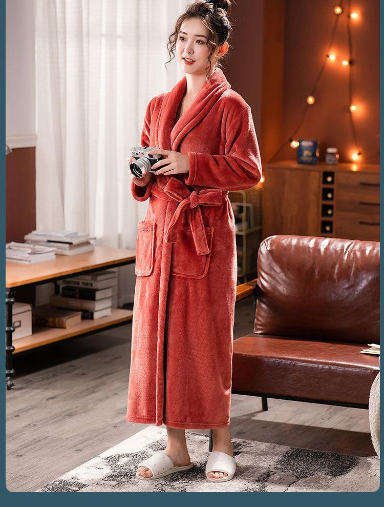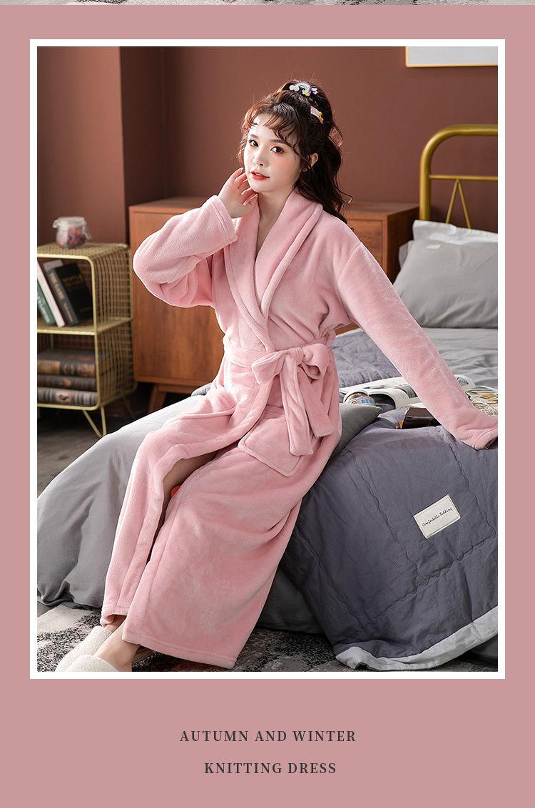 Camisón de Franela de Invierno para Mujer en Otoño e Invierno Espesado y Largo Pareja Damas Bata de Baño de Terciopelo Coral Bata Pijama