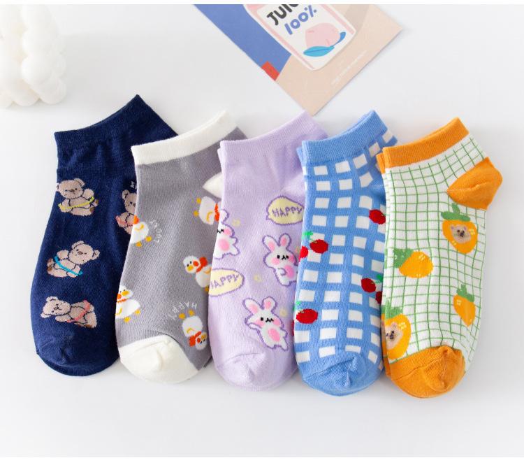 Calcetines de Animales Lindos para Mujer Calcetines de Algodón de Verano para Mujer Calcetines Bajos de Estilo Japonés de Moda Calcetines de Barco Finos Transpirables de Primavera y Otoño
