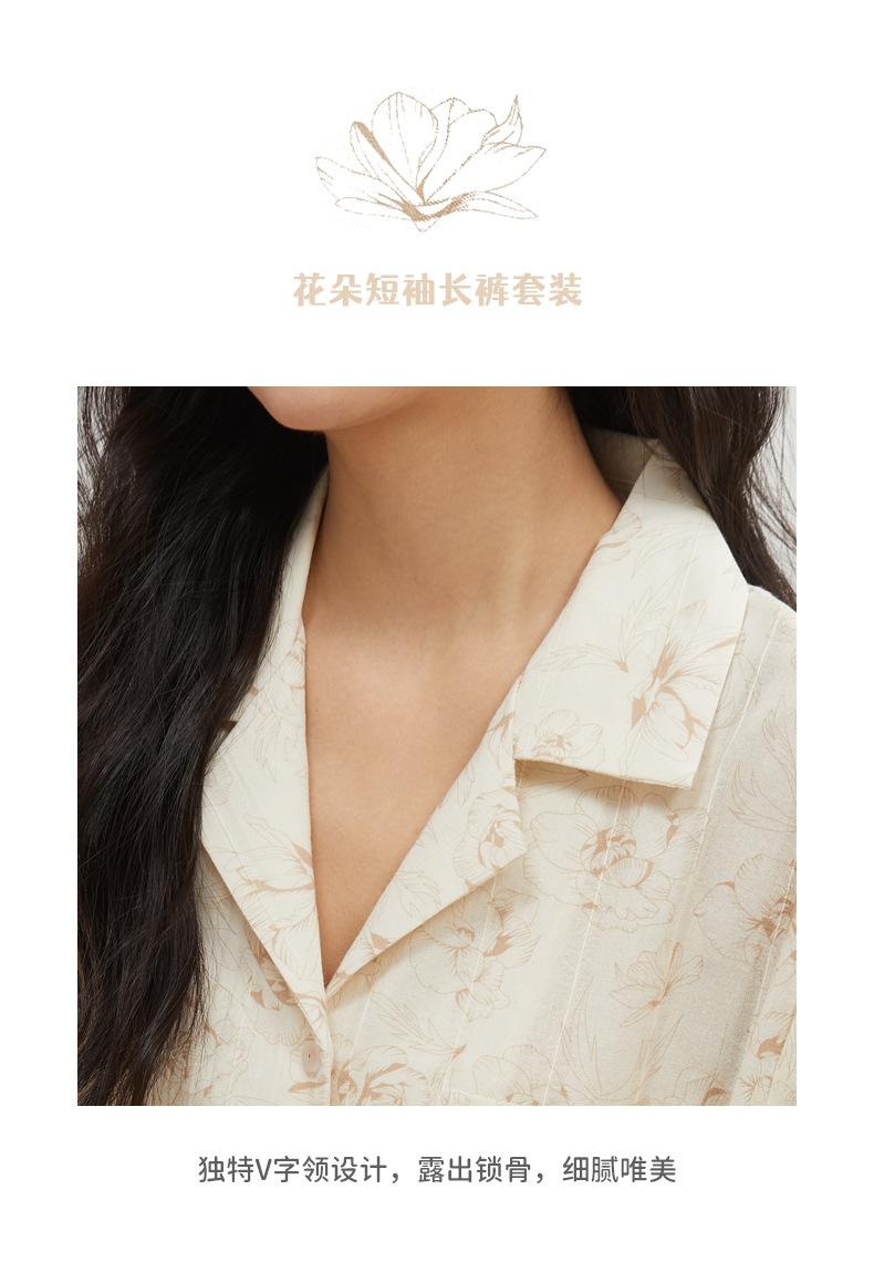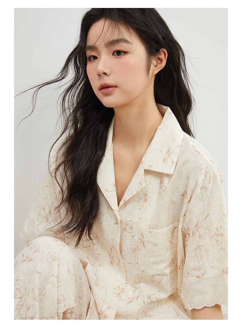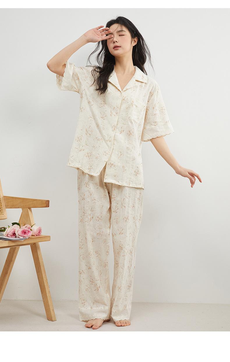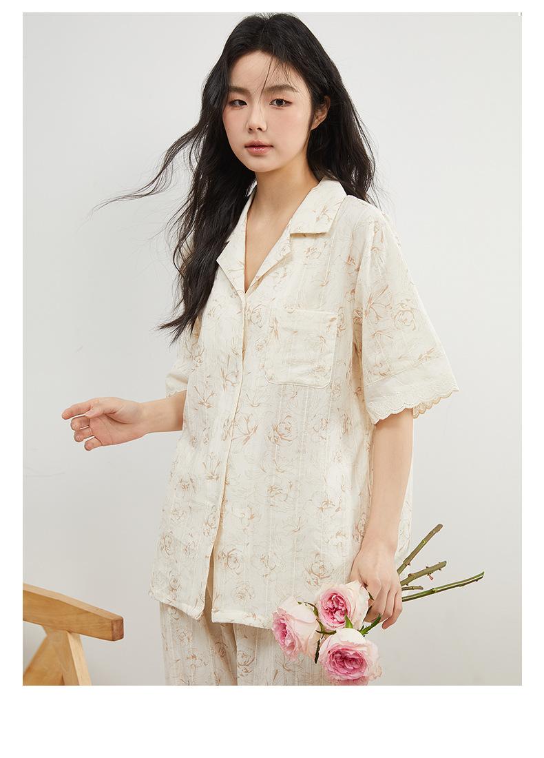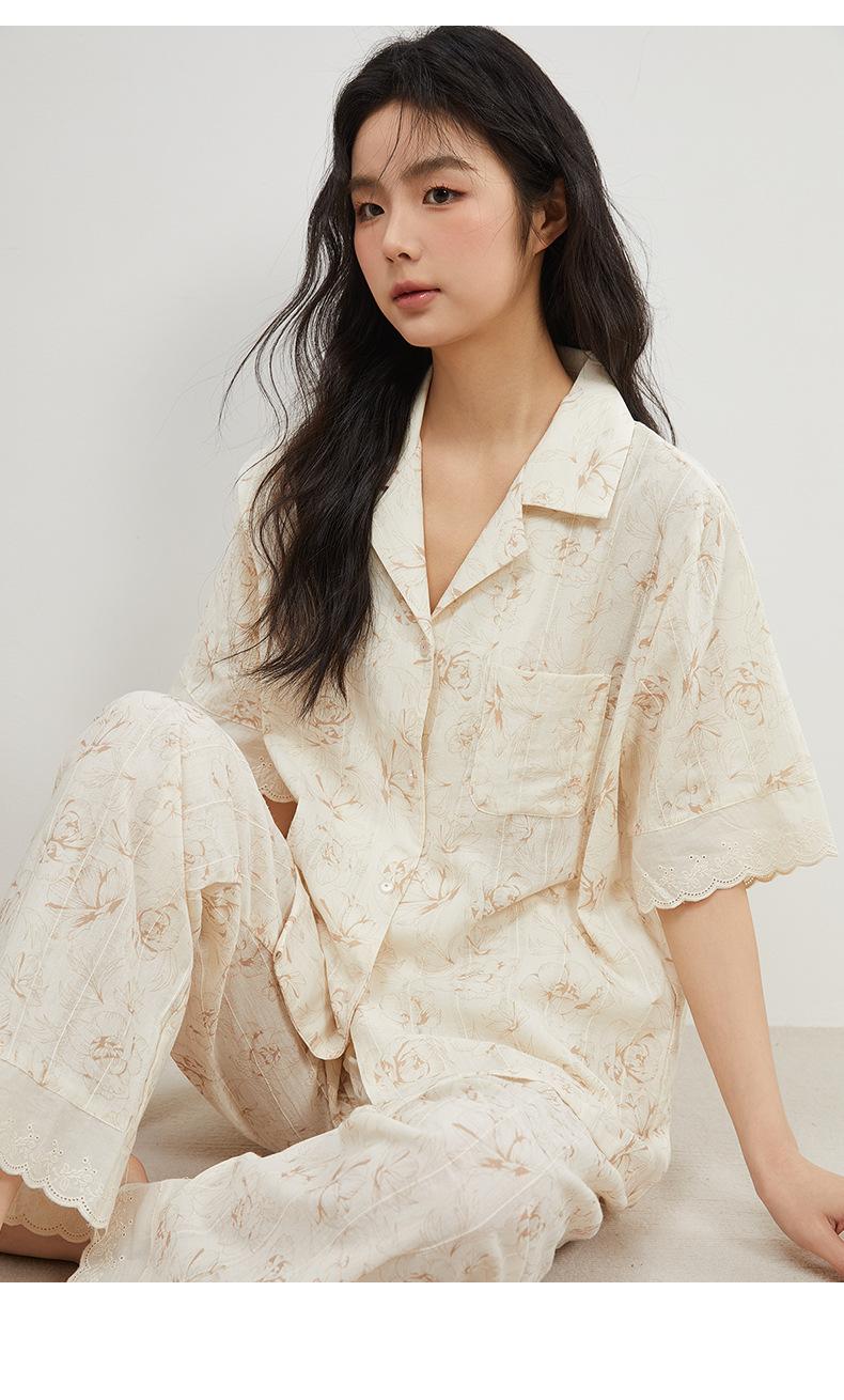 25 Pijamas de Primavera y Verano para Mujer Nuevos Pantalones de Manga Corta Algodón Encaje Pijamas de Alta Gama Set de Ropa para el Hogar de Algodón Puro