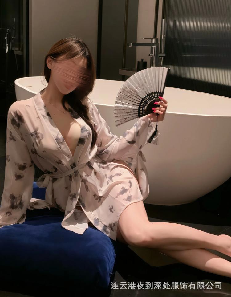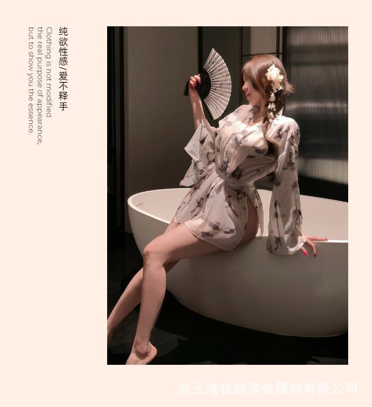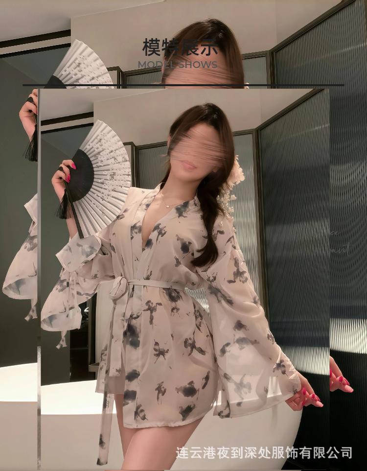 Lencería Sexy Deseo Puro Kimono Estampado Mariposa Bata Perspectiva Traje Uniforme Pijama Gratis Tentación qqny
