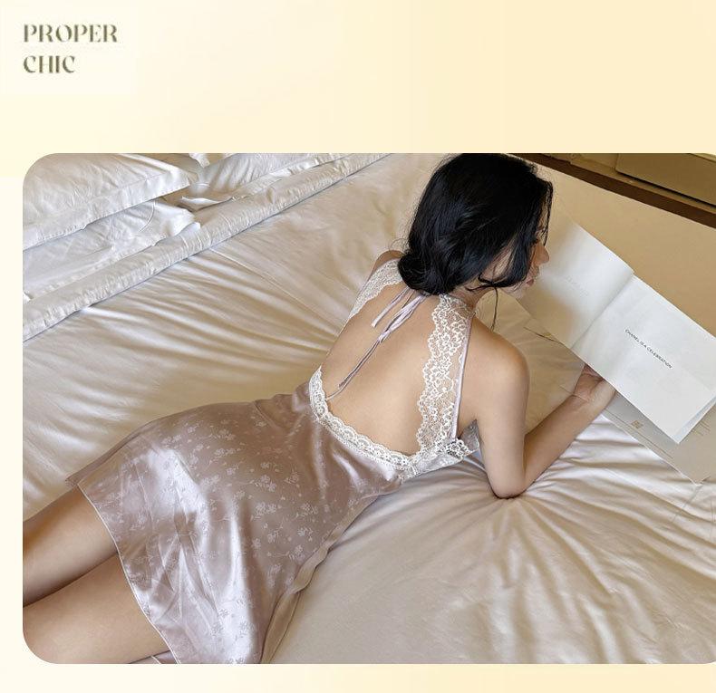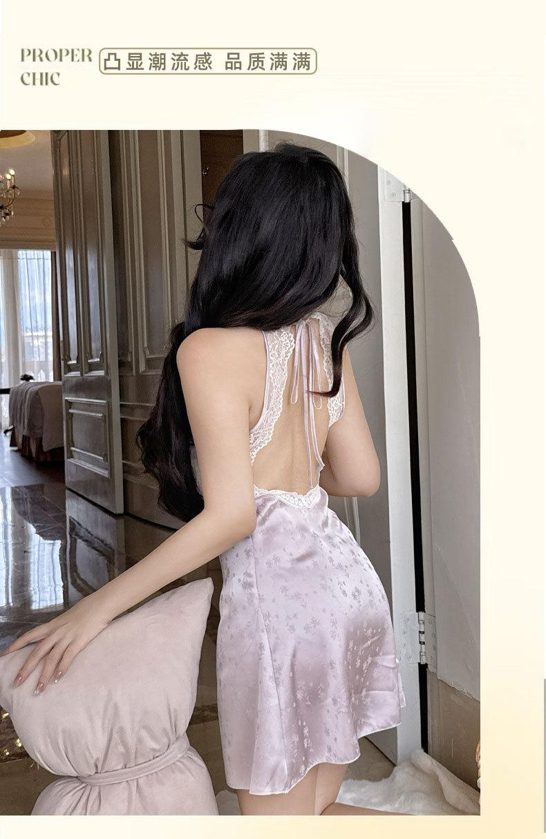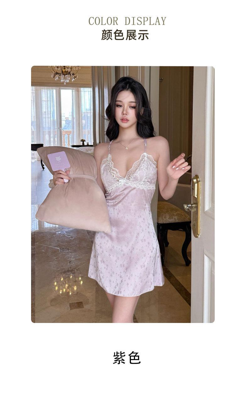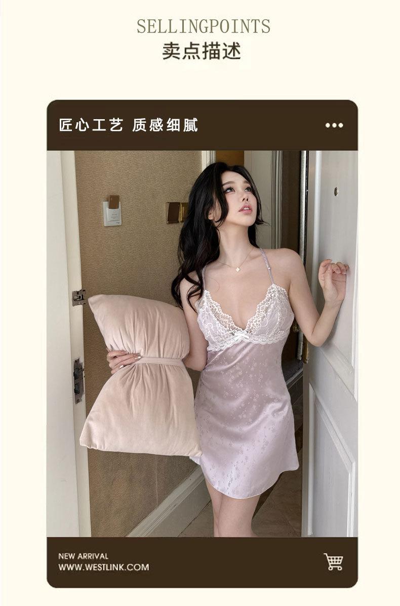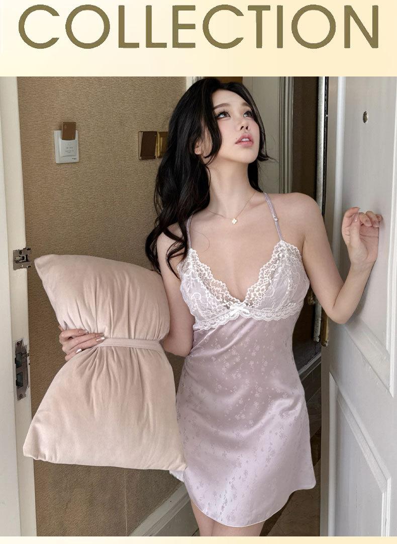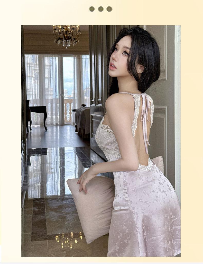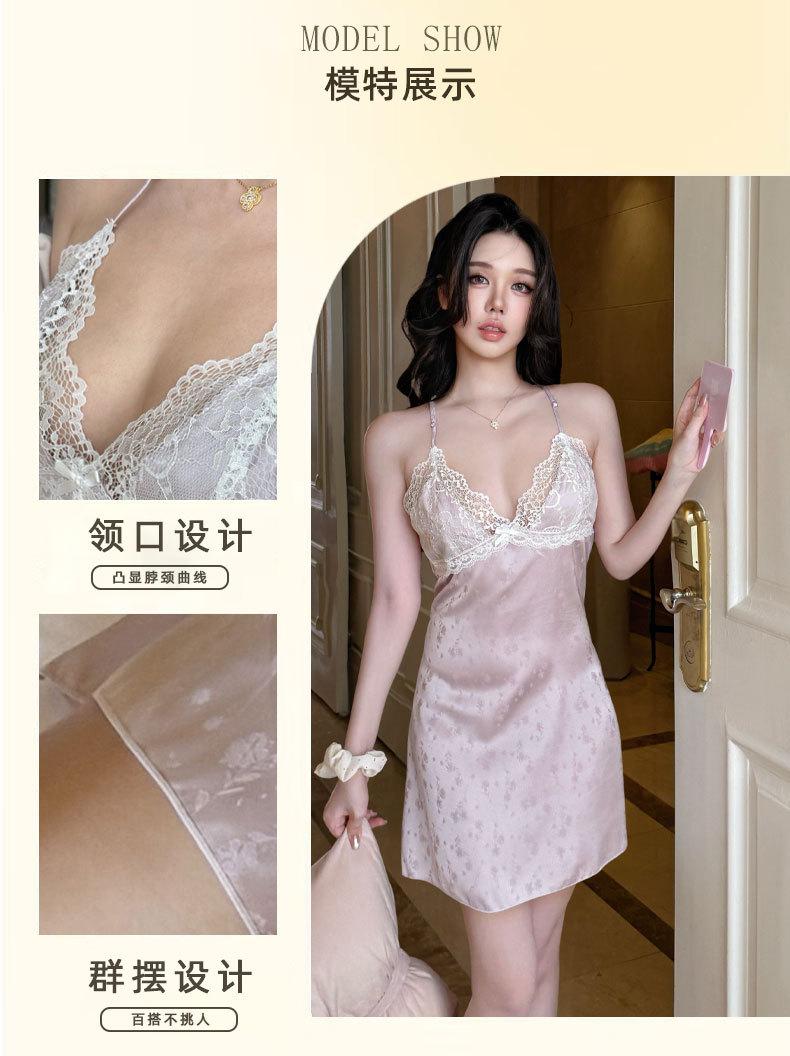 2025 Nuevo Camisón de Seda de Hielo y Nieve para Mujer Francés Delgado Casual Sexy Encaje Tirantes Tentación Casual Vestido para el Hogar