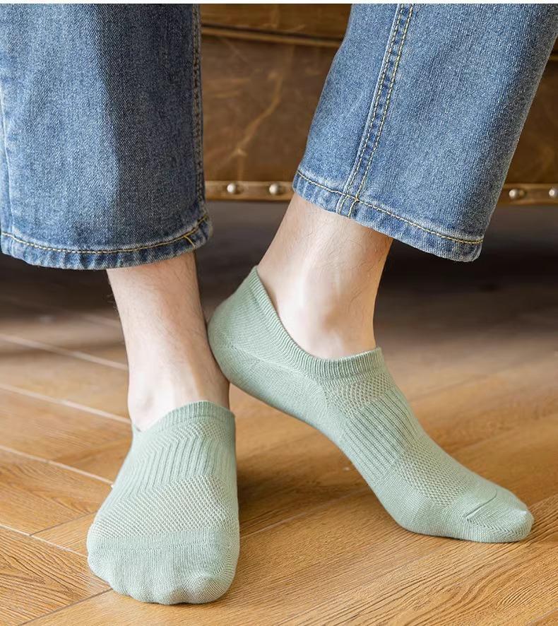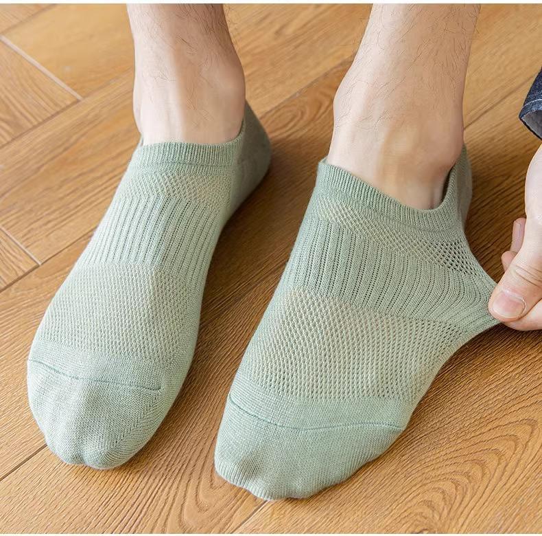 Calcetines finos de verano para hombre, de algodón, de color liso, de tubo corto, informales, de malla transpirable, de boca baja, para barco, venta al por mayor de calcetines Zhuji para hombre