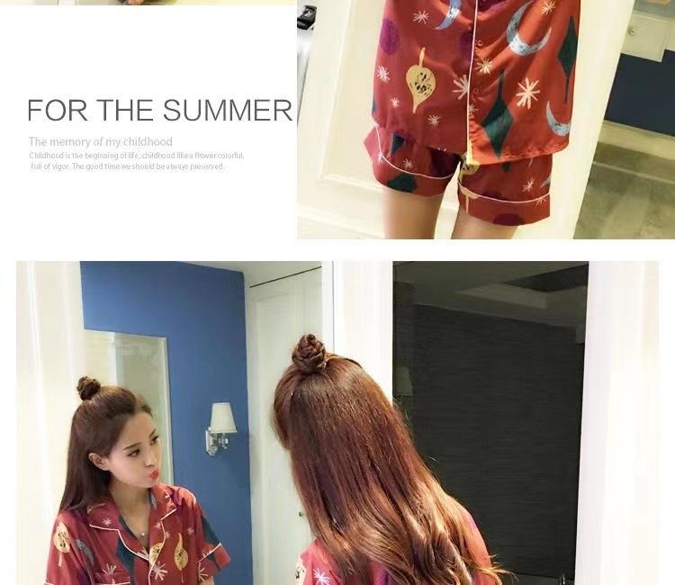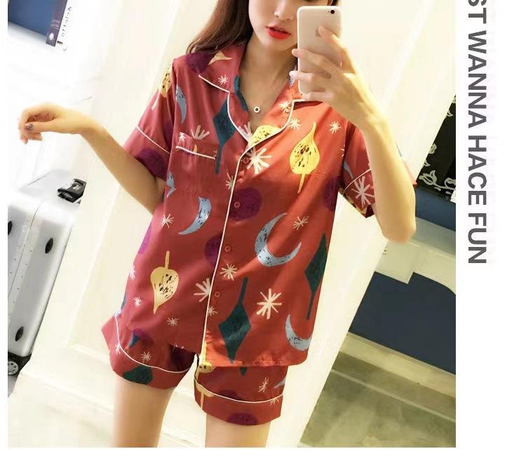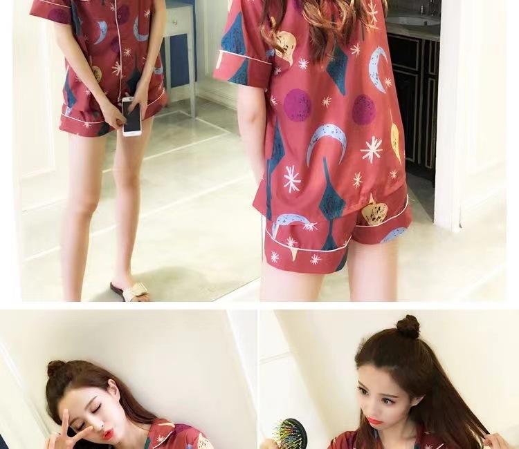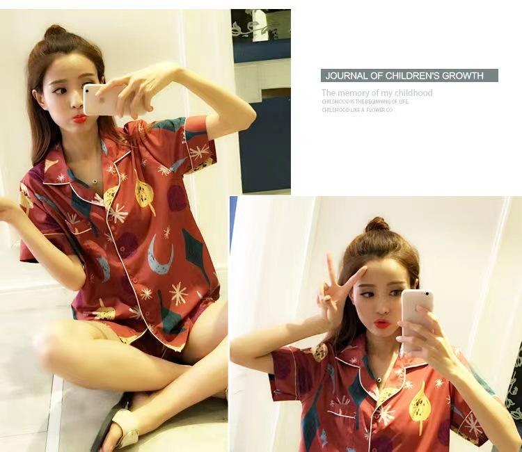 Pijama de estilo coreano para mujer verano seda de hielo estudiante conjunto de dos piezas lindo holgado manga corta niña seda sexy traje de talla grande