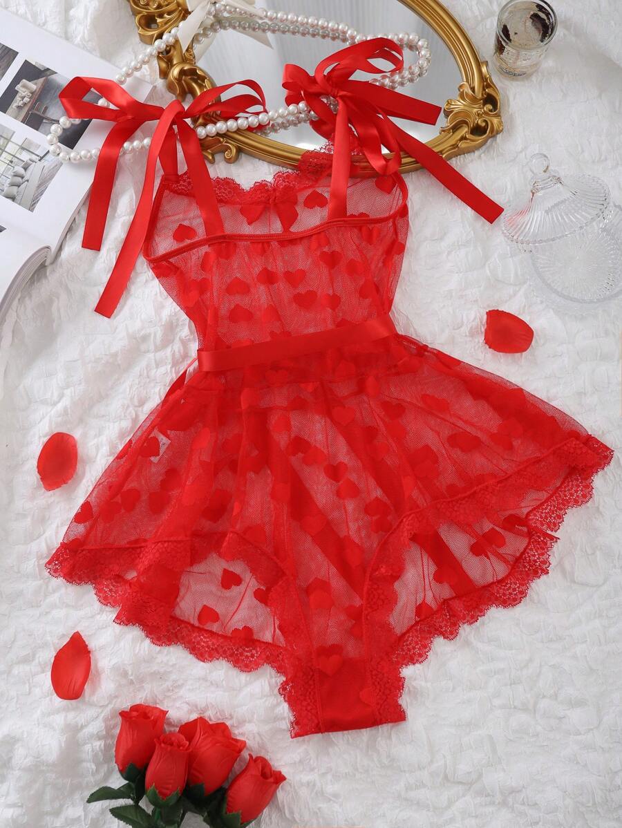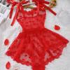Transfronterizo Europa y Estados Unidos nuevo sexy rojo amor malla hueco espalda descubierta tirantes sexy traje de ropa interior sexy