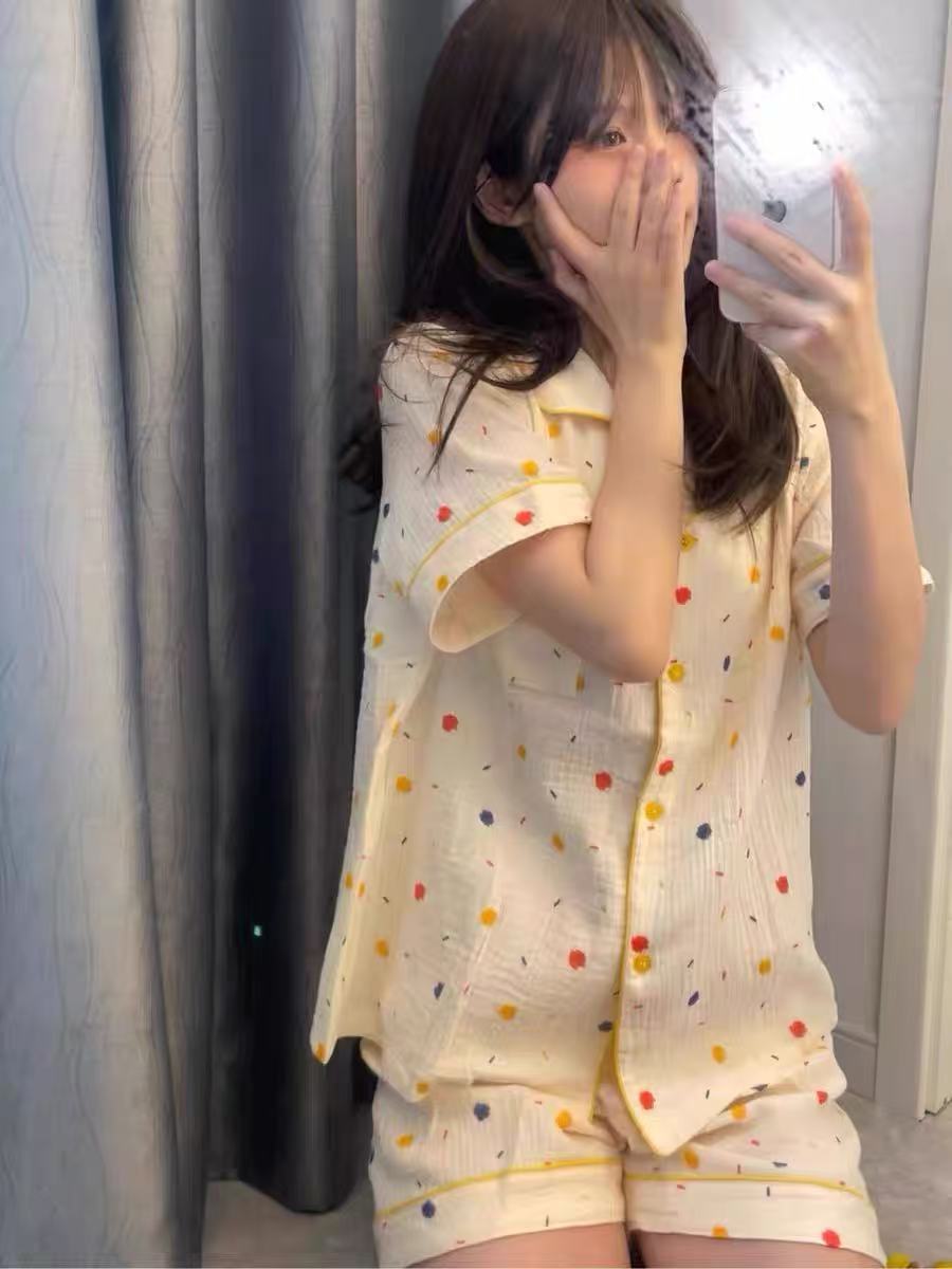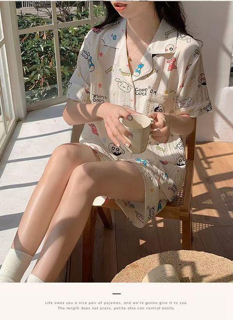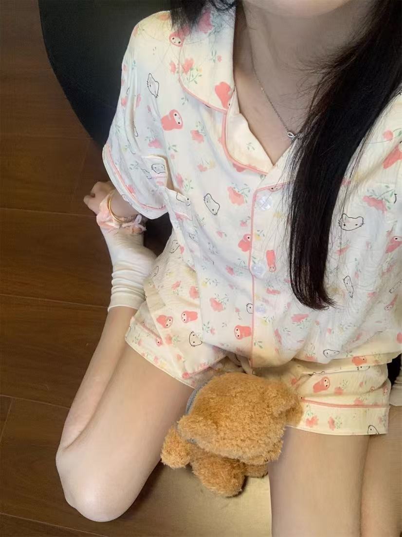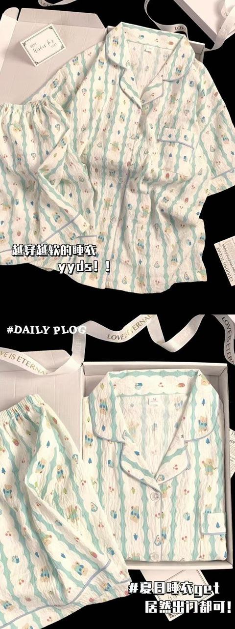 Pijamas de Algodón Dopamine Clouds para Mujer Verano 2025 Nuevo Estilo Ropa de Exterior Dulce Conjunto de Dos Piezas Ropa para el Hogar Verano Delgada