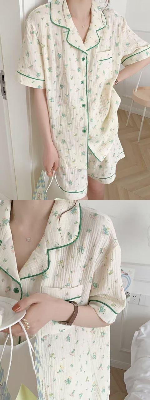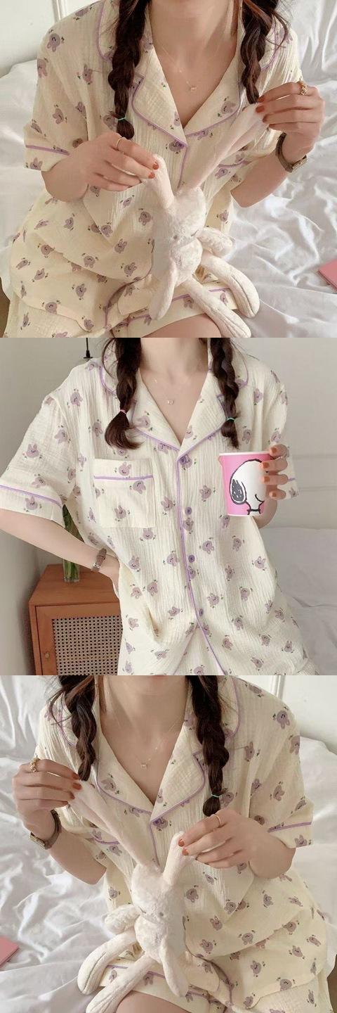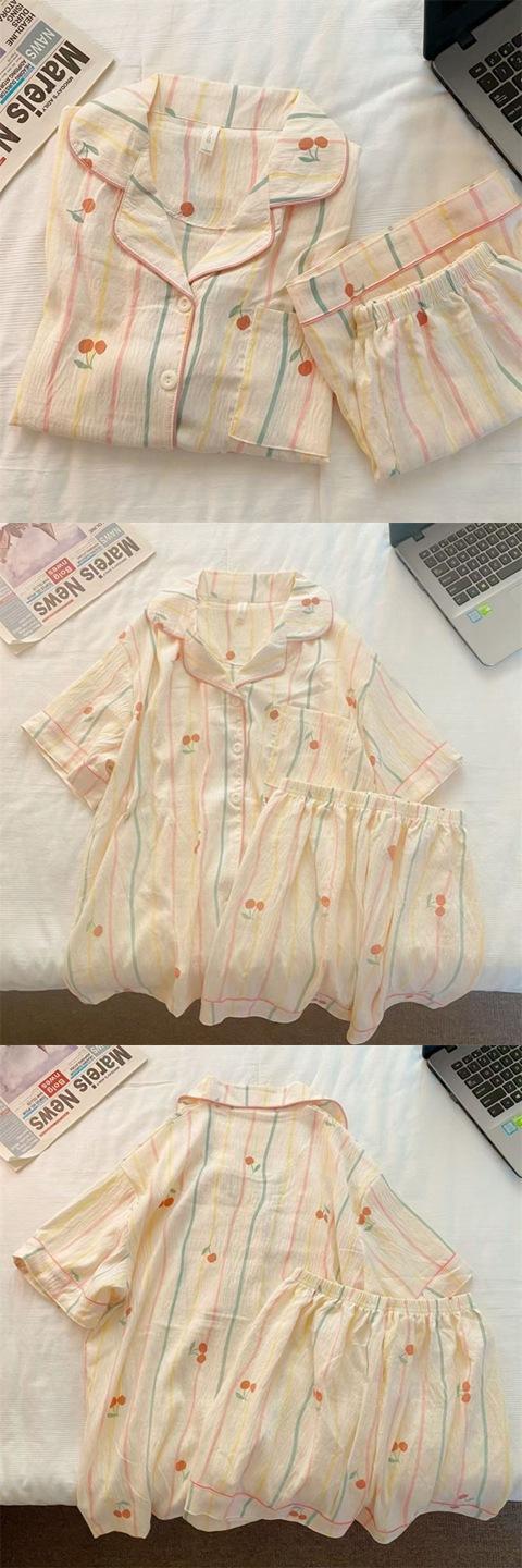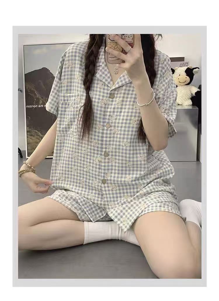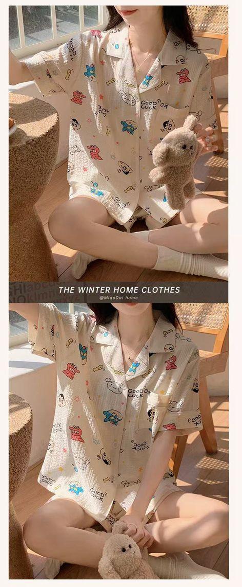 Pijamas de Algodón Dopamine Clouds para Mujer Verano 2025 Nuevo Estilo Ropa de Exterior Dulce Conjunto de Dos Piezas Ropa para el Hogar Verano Delgada