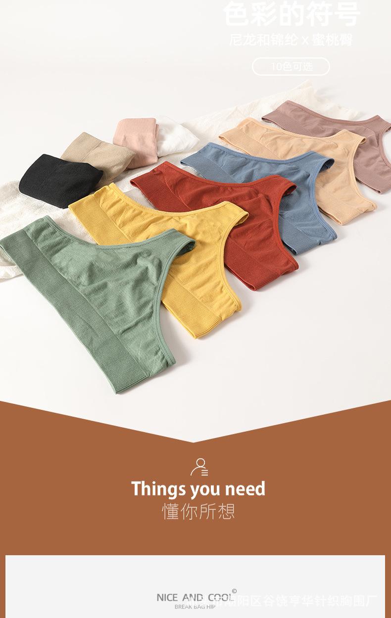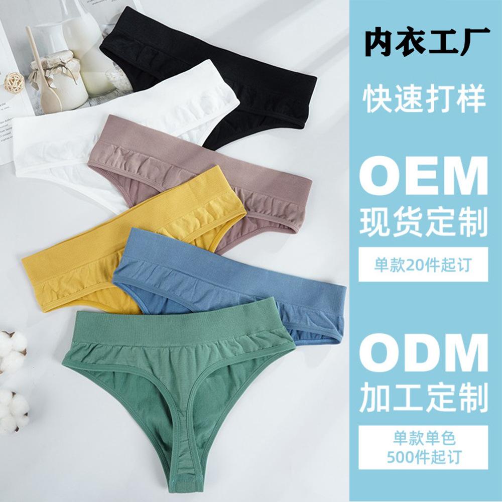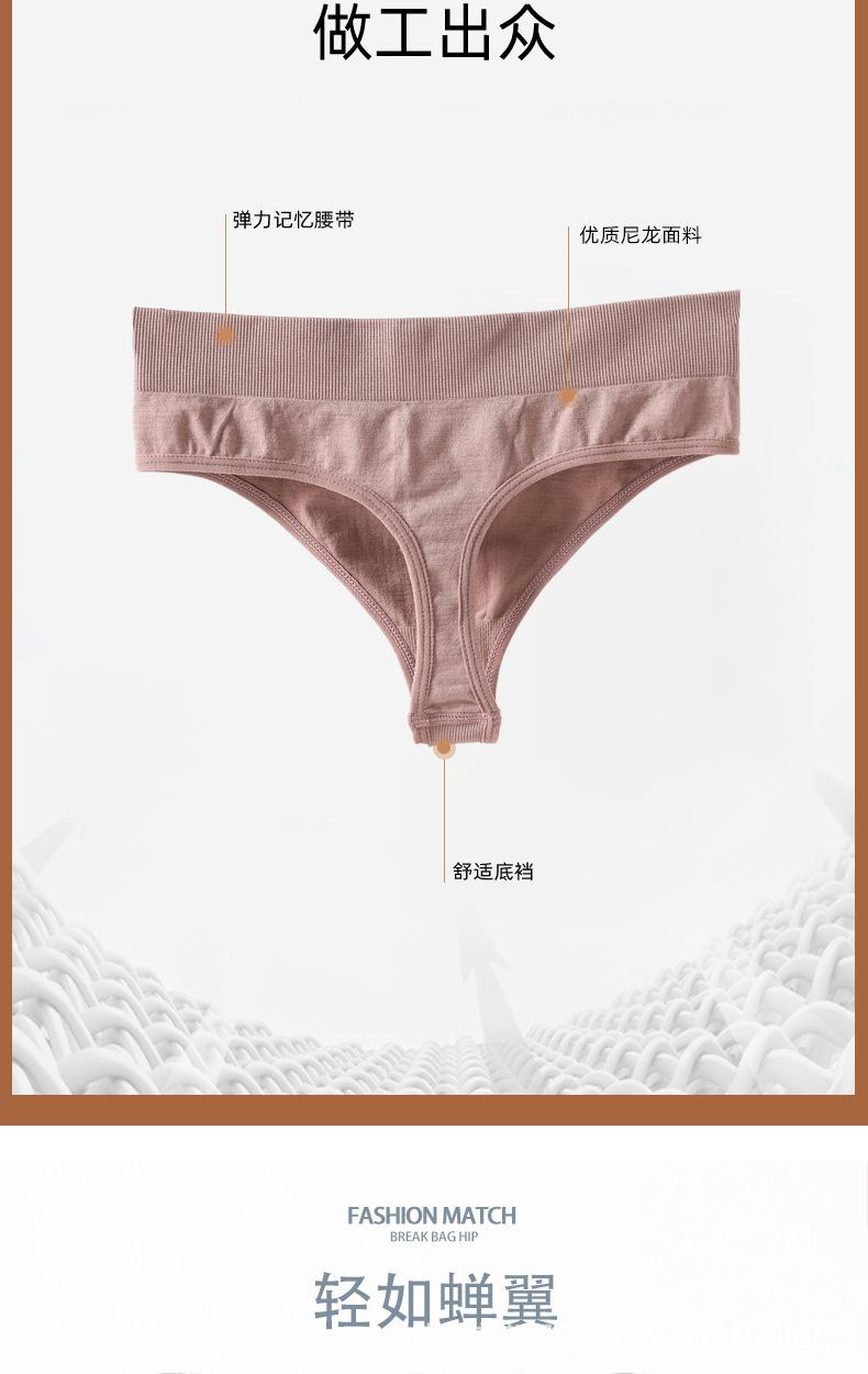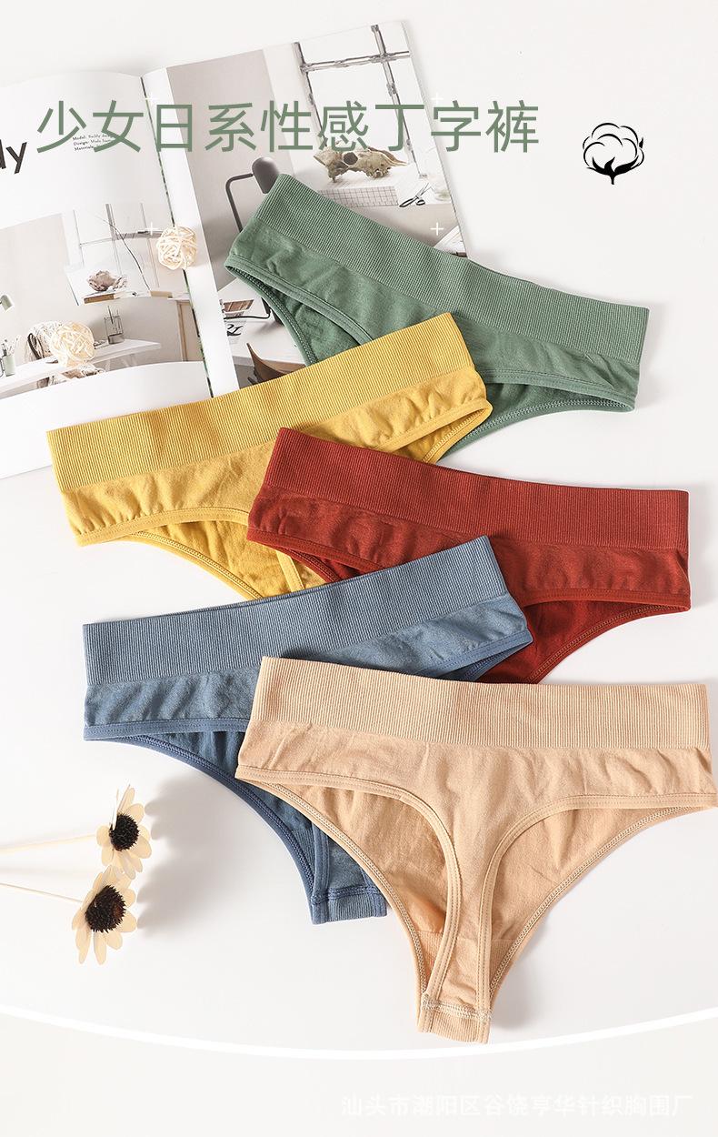 Procesamiento Personalizado Hilo Sin Costuras Tiro Bajo Tanga Color Puro Corte Alto Algodón Sexy Transpirable Deportivo Fitness Tanga para Mujer