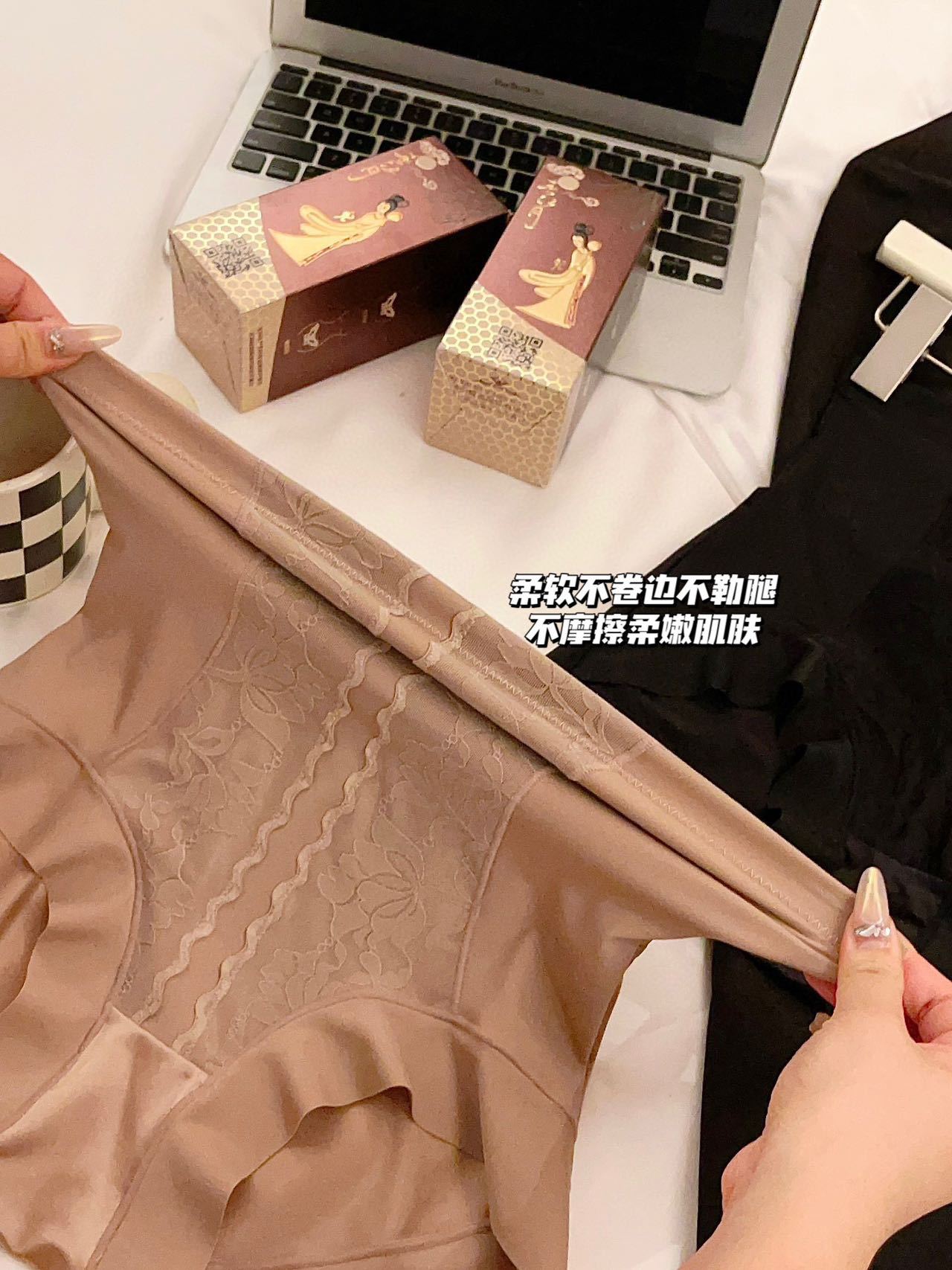 Concubina de verano Pantalones bajos de triángulo creciente cuando pantalones de suspensión de seda de morera Ropa interior de cintura alta para levantar cadera Base sin enrollar