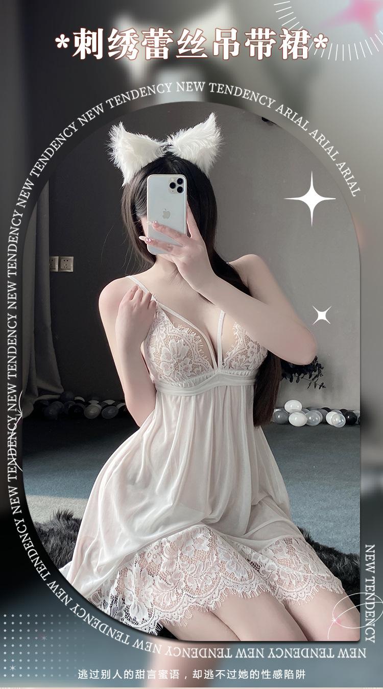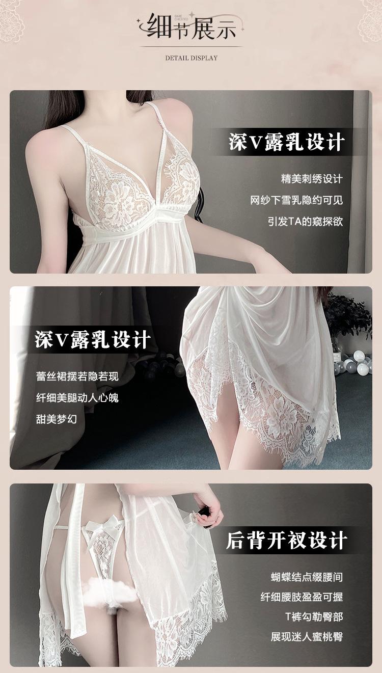 Íntimos Sexy Tirantes para Mujer Escote V Profundo Encaje Transparente Falda de Malla Fina Coqueto Espalda Descubierta Encaje Camisón Sexy 1534
