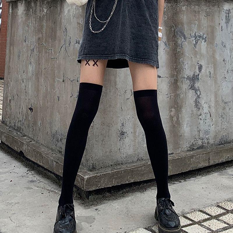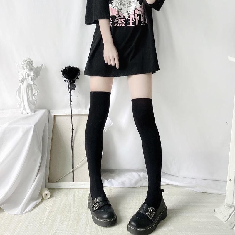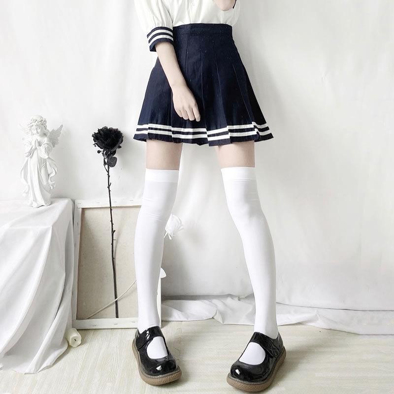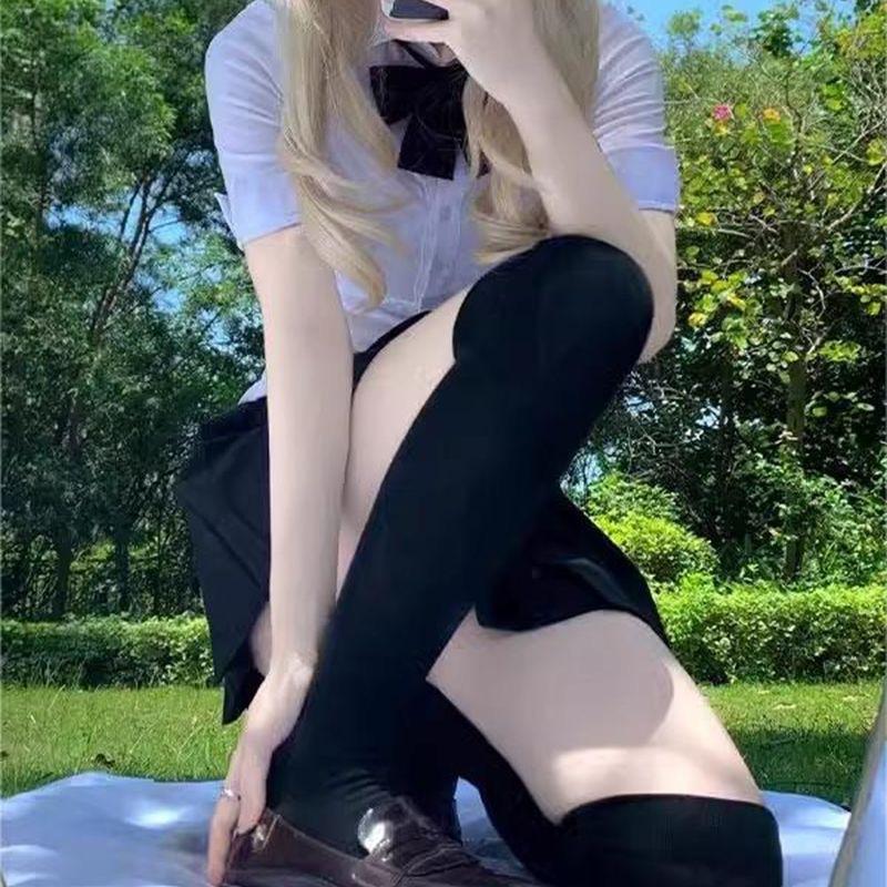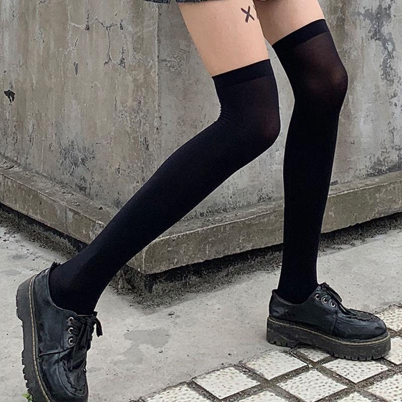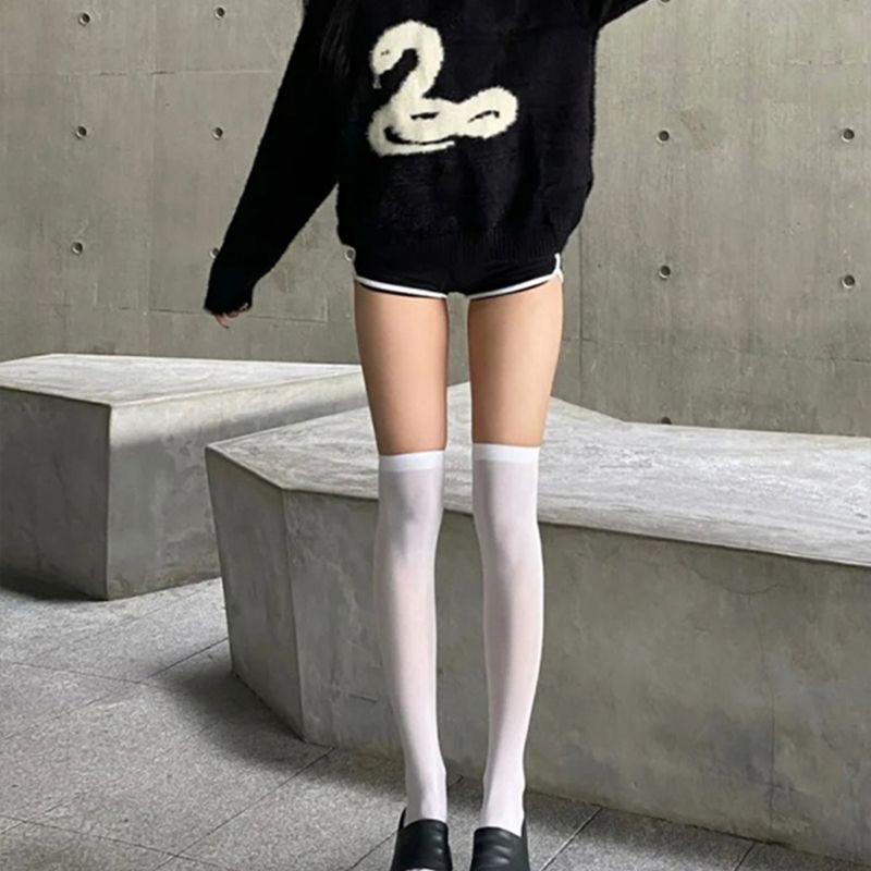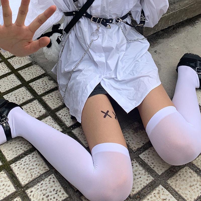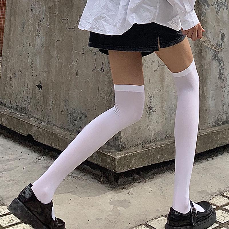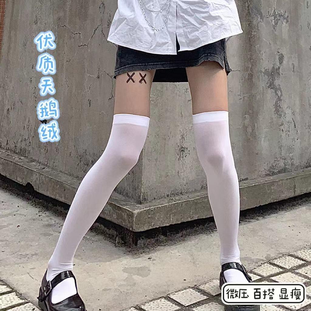 Medias de Terciopelo JK Japonés Blancas de Seda Medias de Presión para Mujer Medias Sexy Finas hasta el Muslo Negras Primavera y Verano