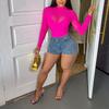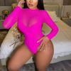 Lencería Sexy Malla Hueca Rojo Rosa Exportación Europea y Americana Bikini Manga Larga Sexy Sin Espalda Falso Transparente Una Pieza W839