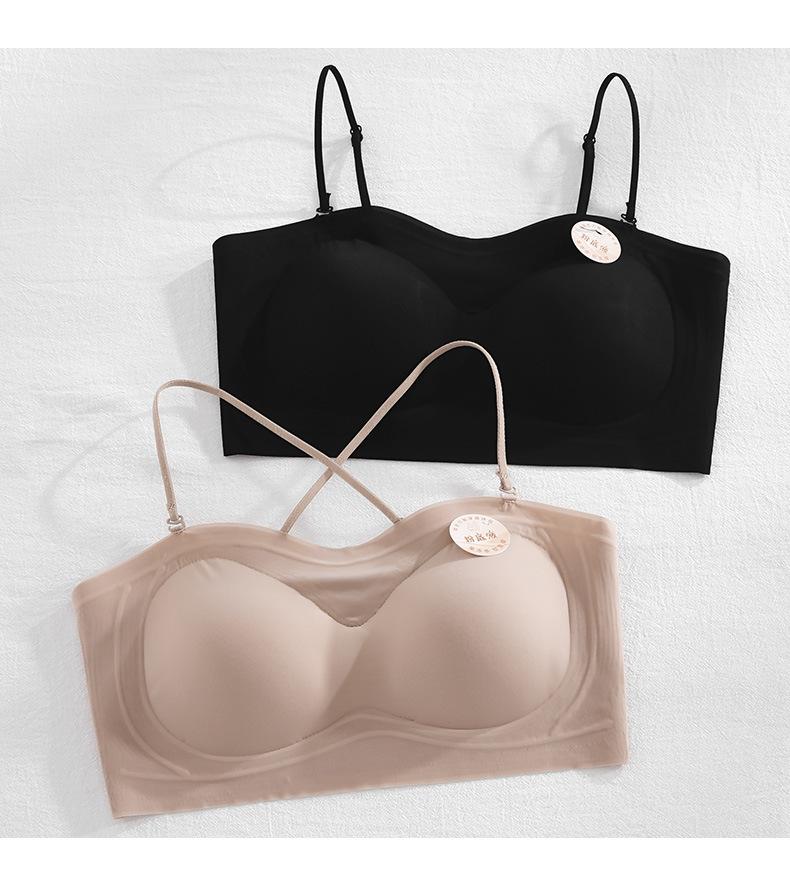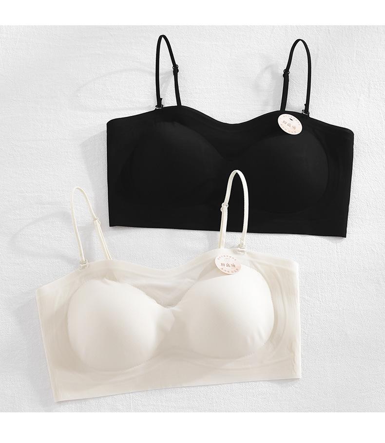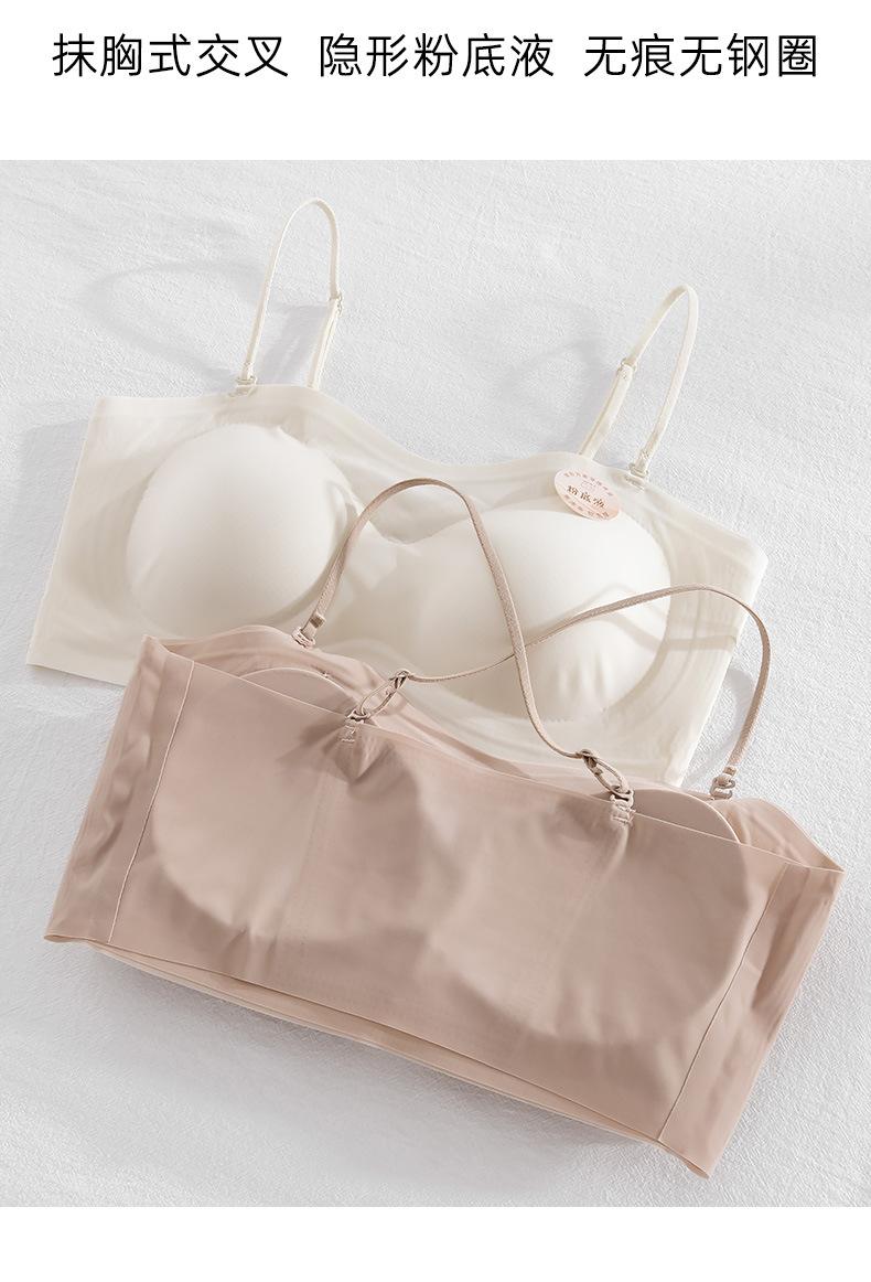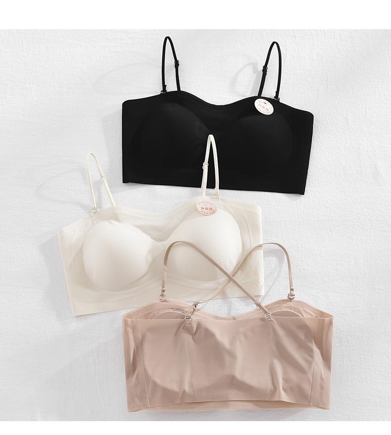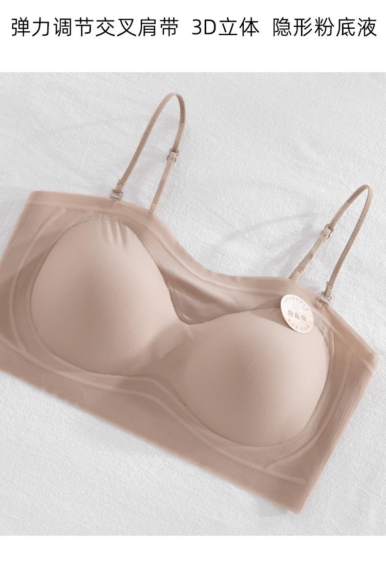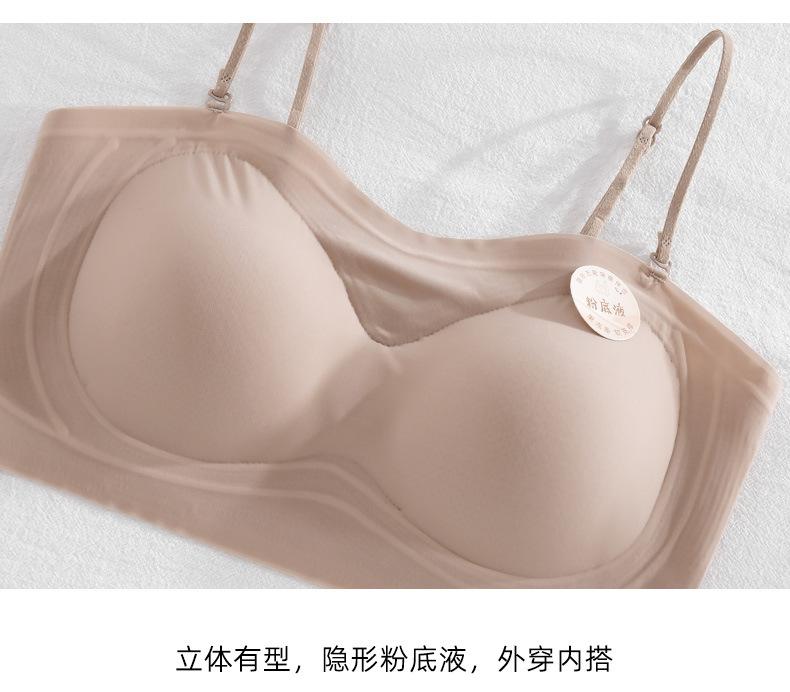 Ropa Interior de Base Líquida para Mujer Pecho Pequeño Push-up Sujetador Sin Aro de Acero Invisible Verano Fino Tirante de Hombro Sujetador Sin Costuras