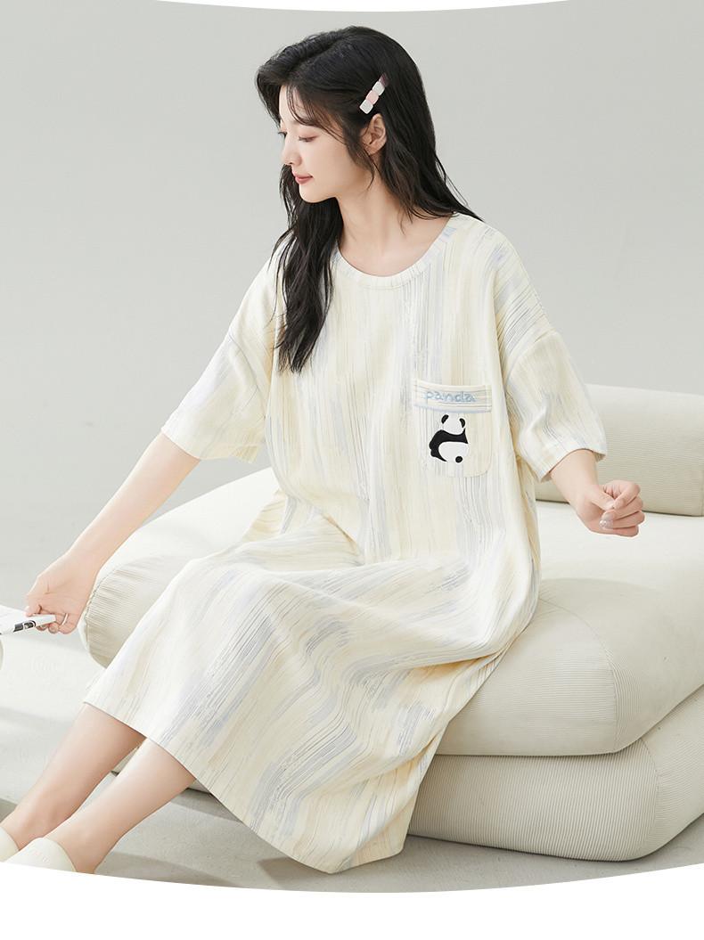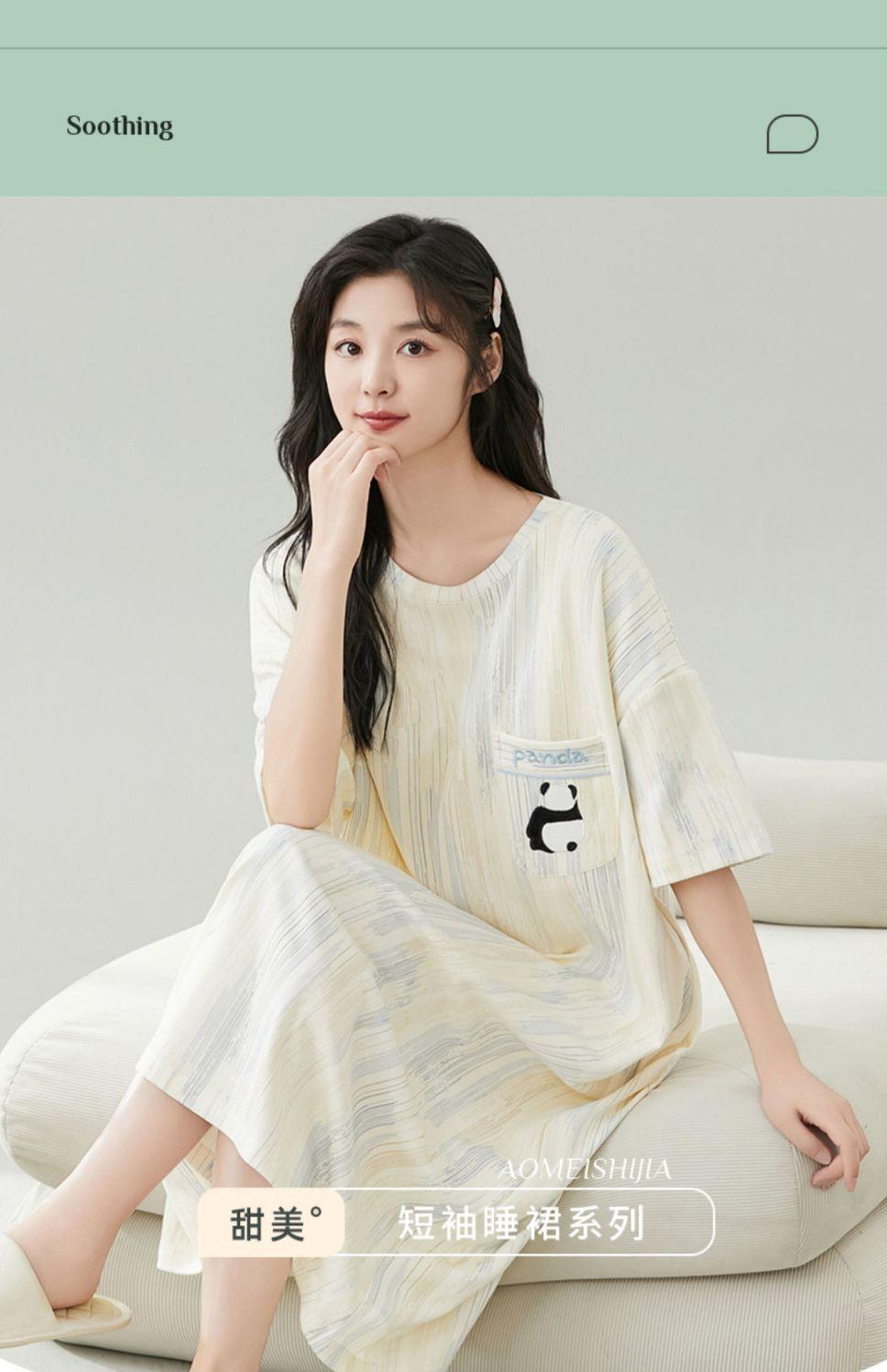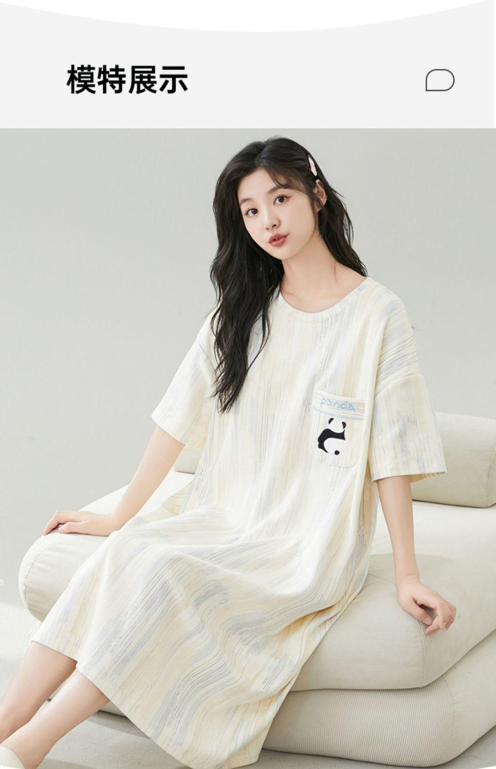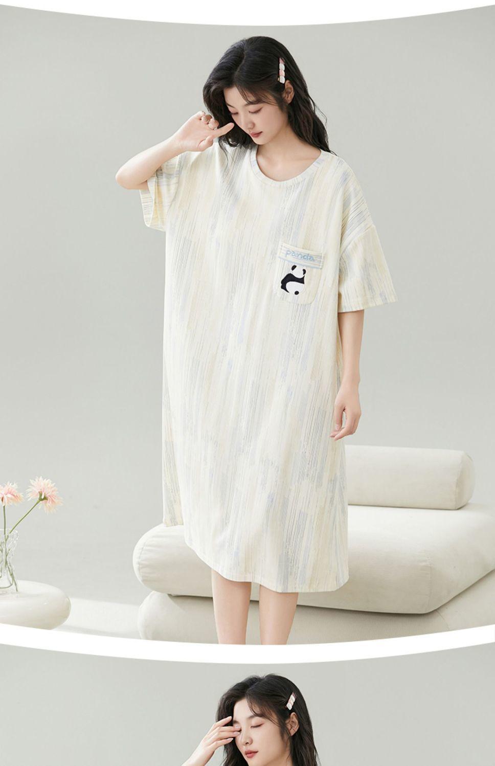 Camisón de Noche de Gran Venta para Mujer Verano Delgado Manga Corta Antigolpes Todo en Uno Talla Grande con Almohadillas para el Pecho Que se Puede Usar Fuera Ropa de Casa