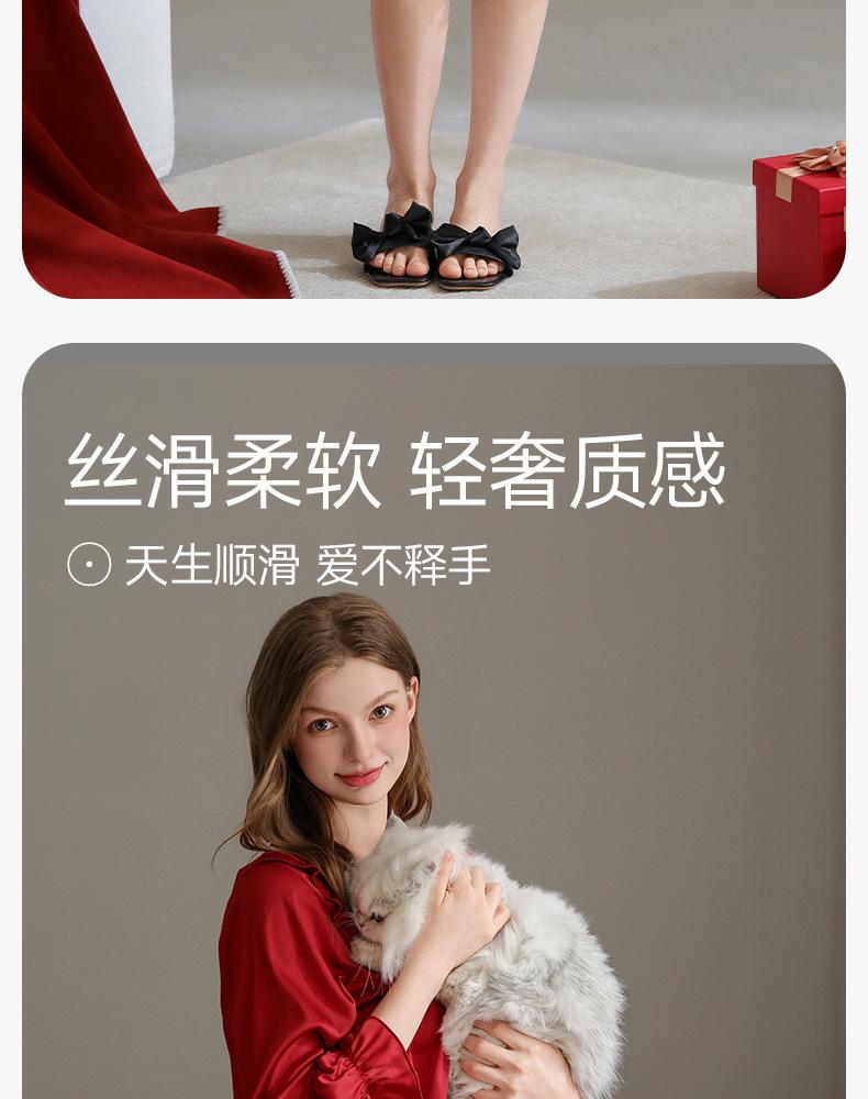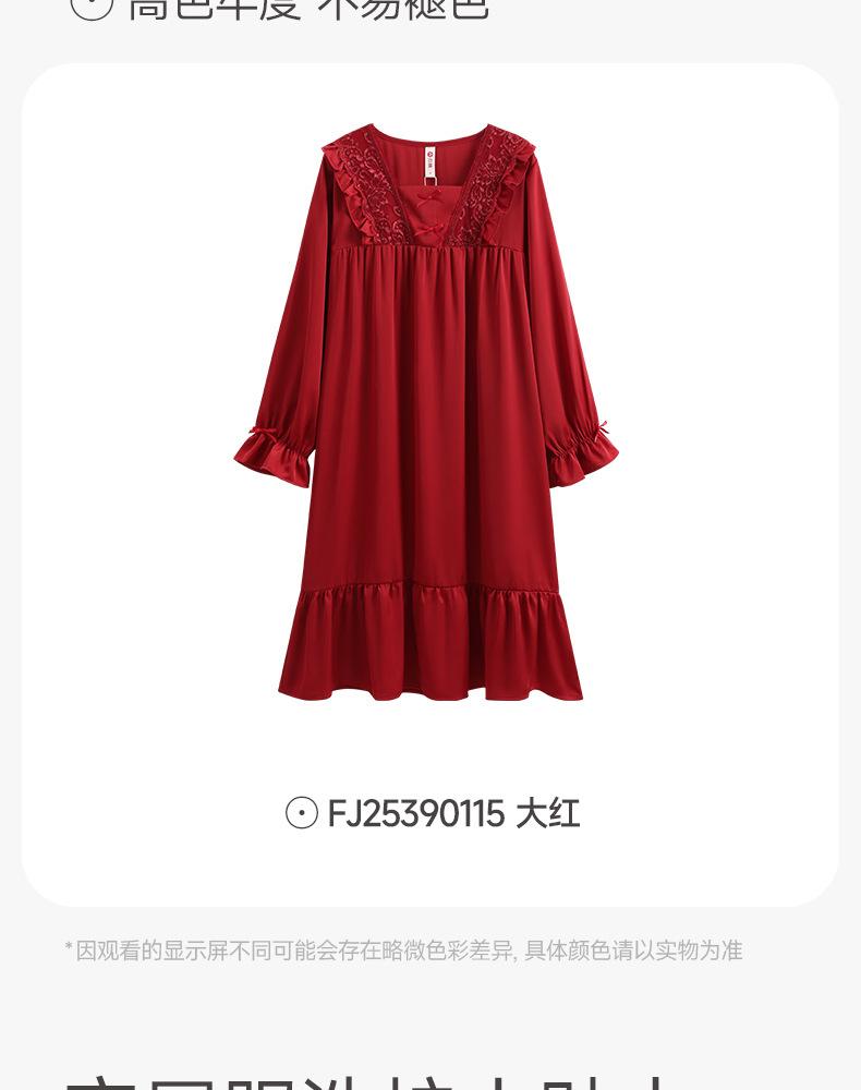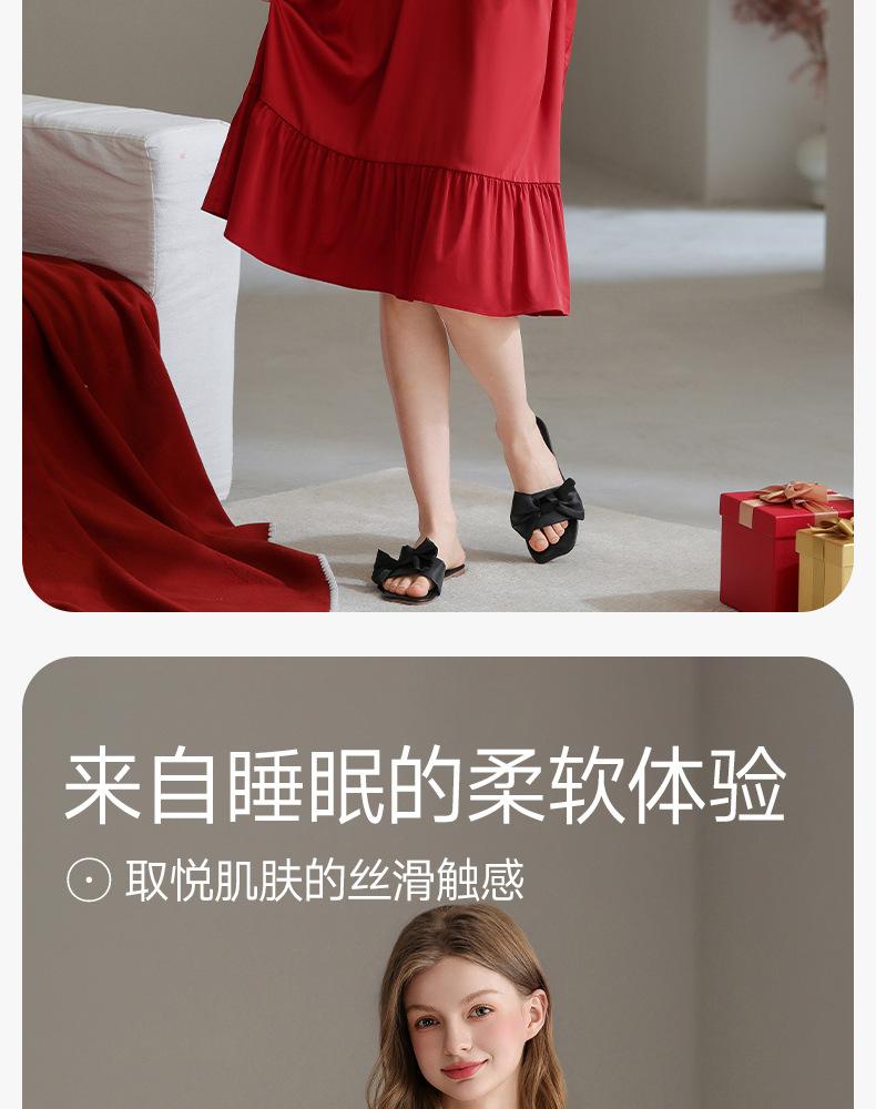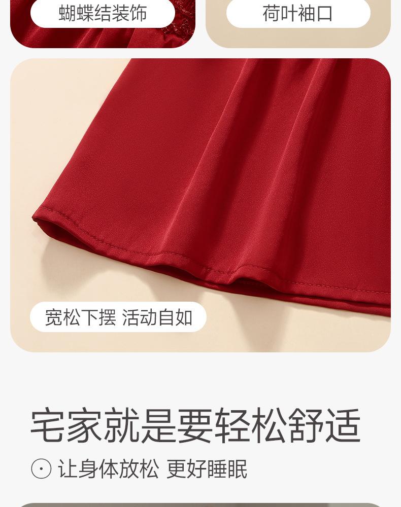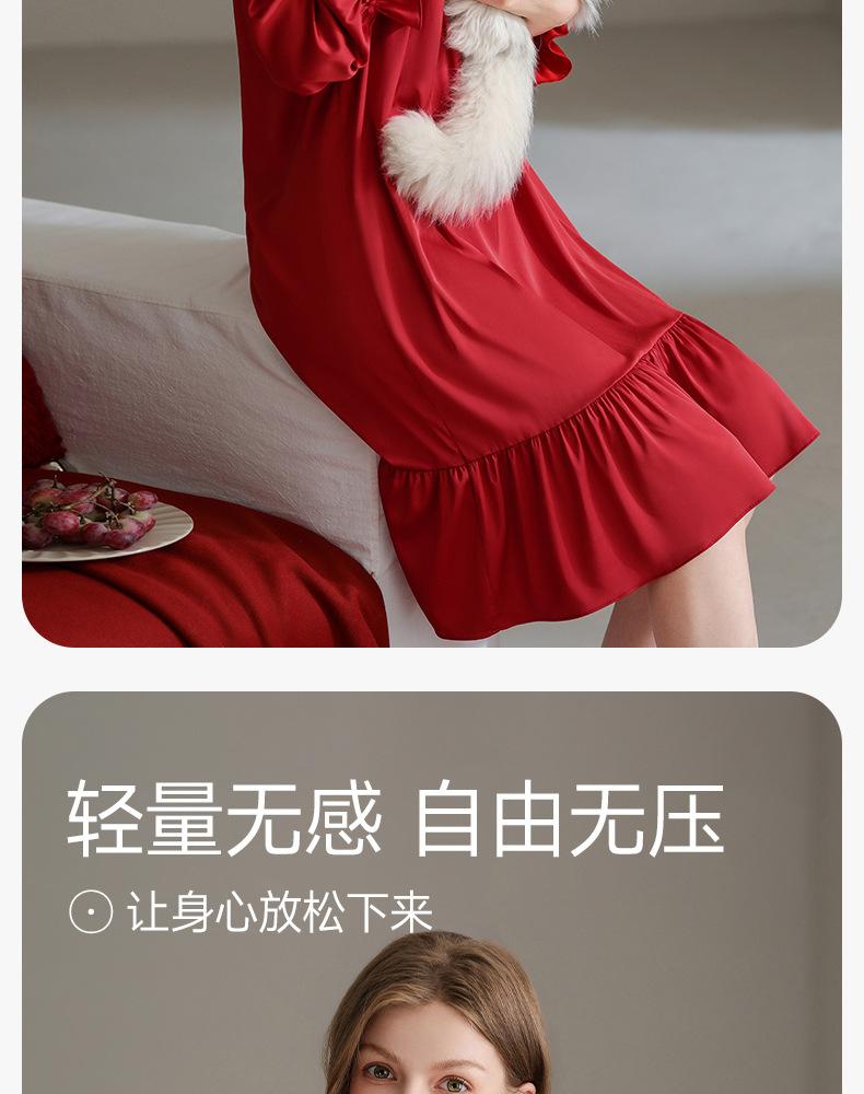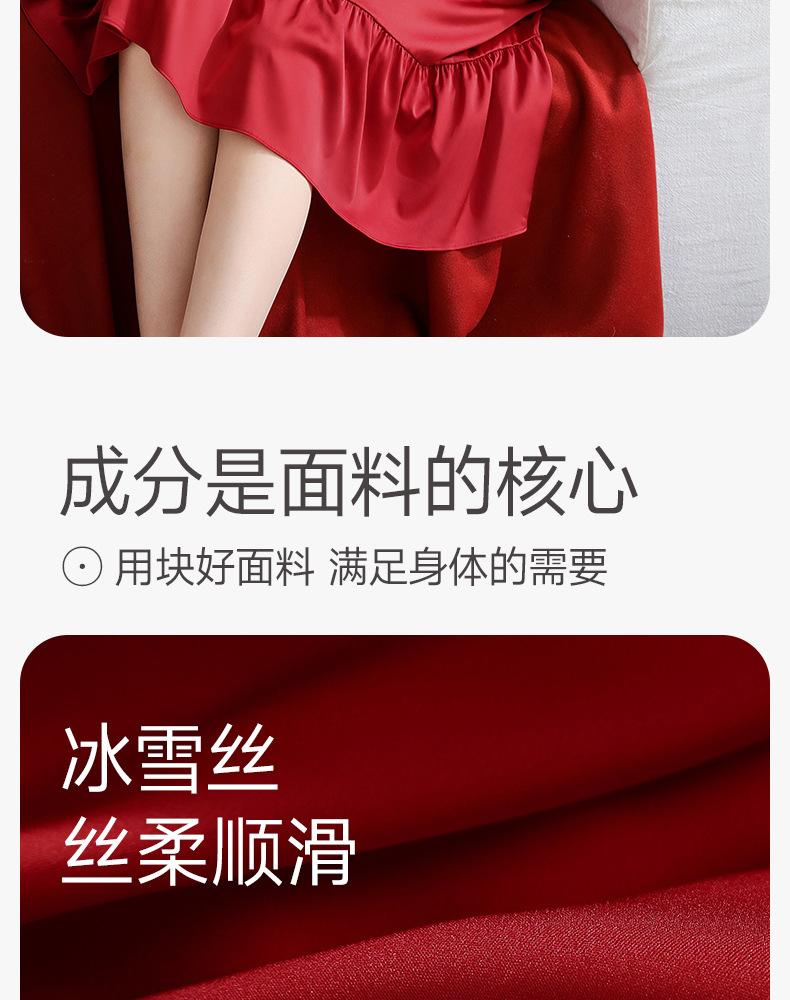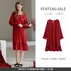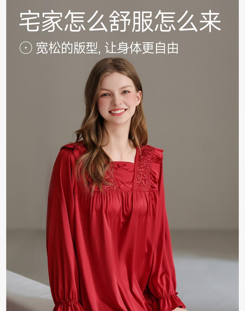 [Seda de Hielo Antibacteriana 5A] Camisón de Mujer Primavera y Otoño Manga Larga Pijama Rojo Boda Año Suelto Falda Media