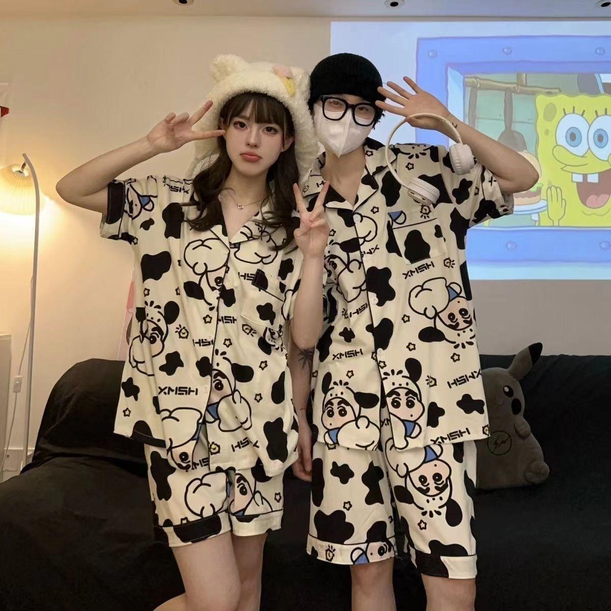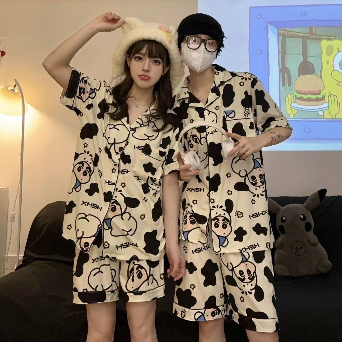 Pijamas de Verano de Talla Grande para Pareja de Dibujos Animados Japoneses para Hombre y Mujer Verano de Manga Corta Pantalones Cortos Se Pueden Usar Fuera Conjuntos de Ropa para el Hogar