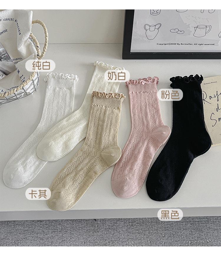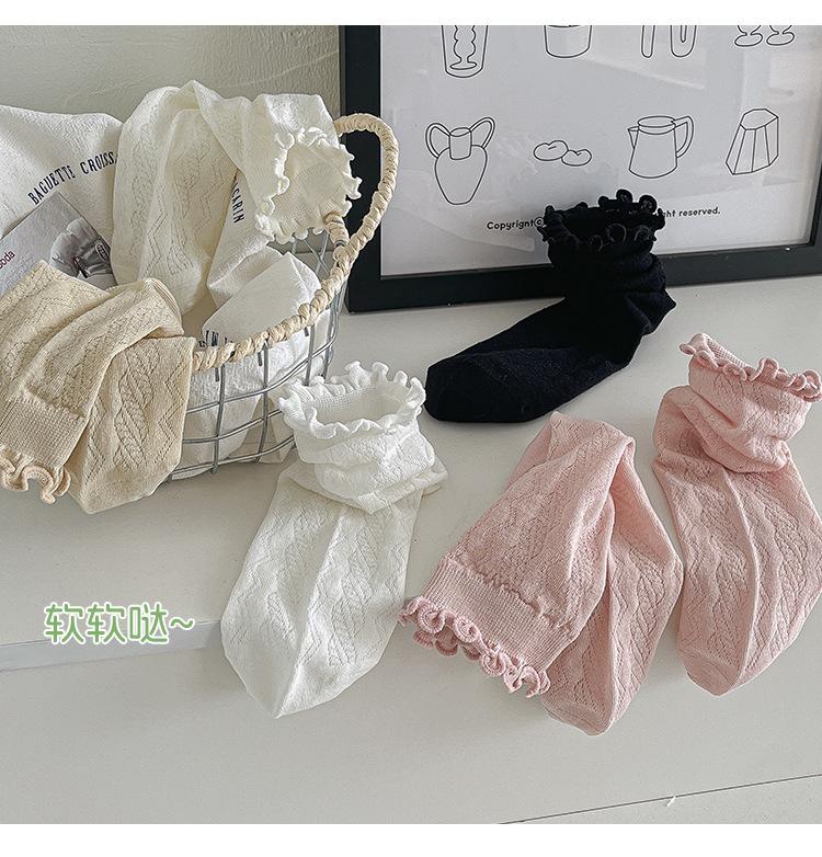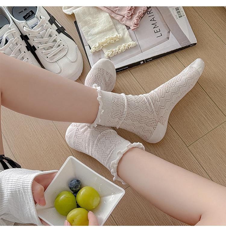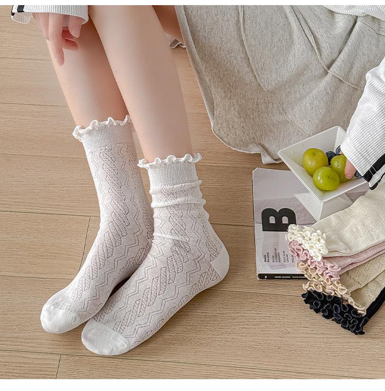 Calcetines de verano calcetines de encaje para mujer calcetines finos de verano de malla hueca transpirables calcetines de rizo calcetines de algodón de color sólido calcetines de tubo desodorantes
