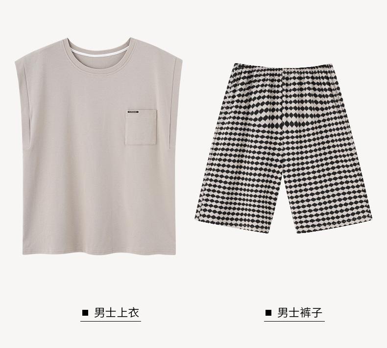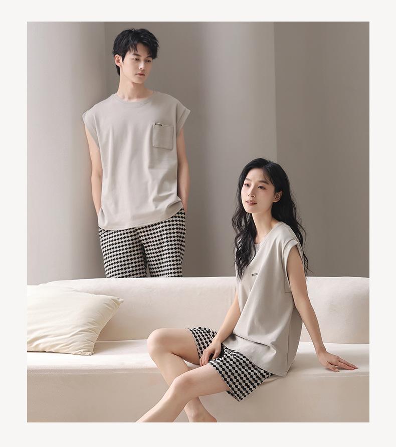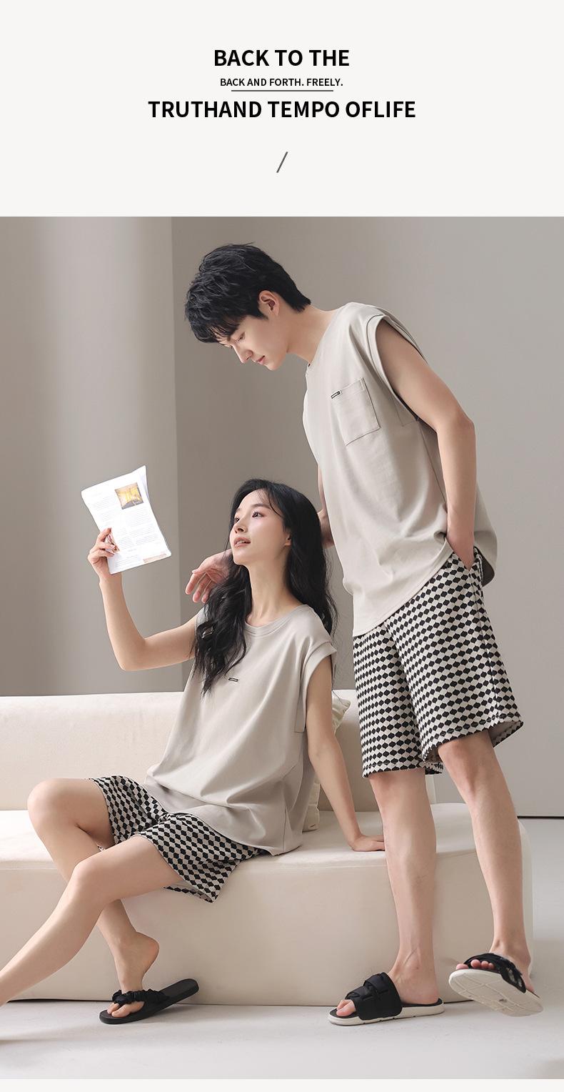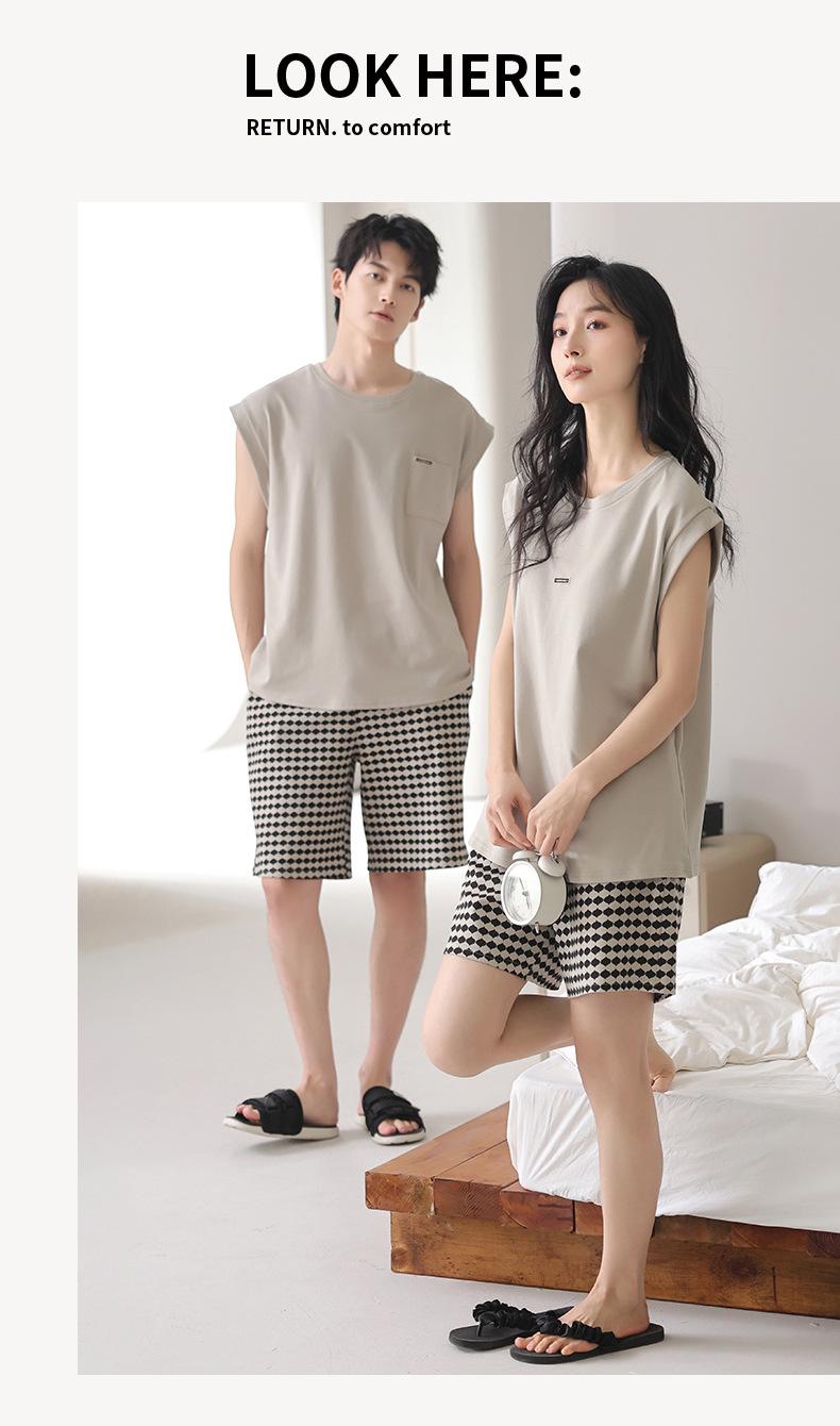 Pijama de Pareja con Almohadillas Propias de Yu Zhaolin para Mujer de Algodón Puro de Verano sin Mangas Chaleco Shorts Conjunto para Hombre para Estar en Casa