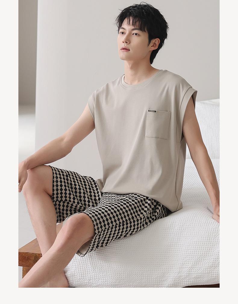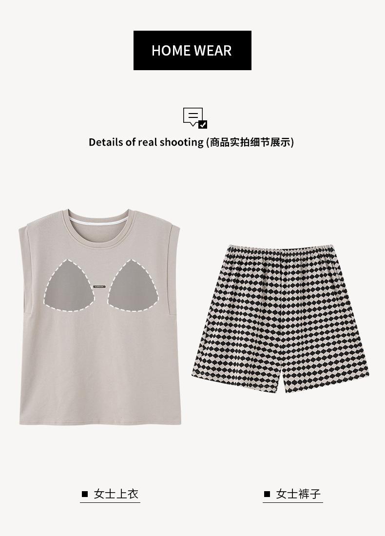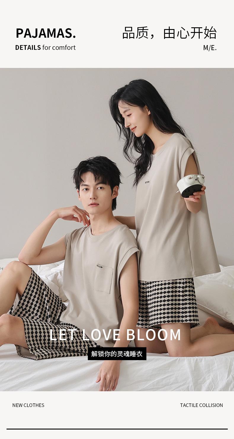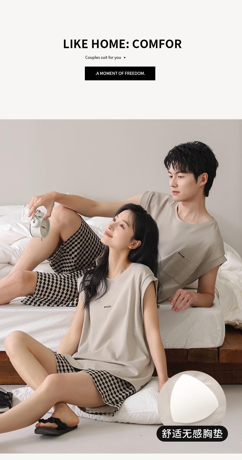 Pijama de Pareja con Almohadillas Propias de Yu Zhaolin para Mujer de Algodón Puro de Verano sin Mangas Chaleco Shorts Conjunto para Hombre para Estar en Casa
