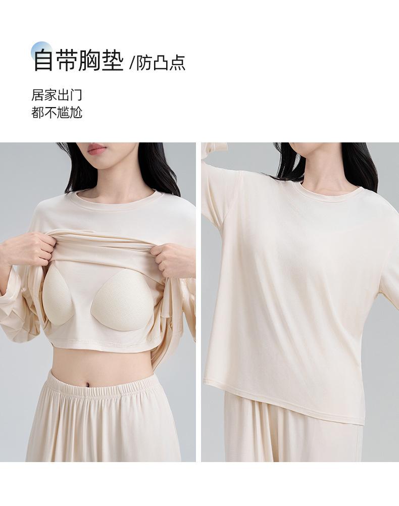 Conjunto de Pijama para Mujer con Almohadillas de Seda Integradas 2025 Nuevo Conjunto de Ropa para el Hogar de Verano Holgado y Transpirable de Alta Gama