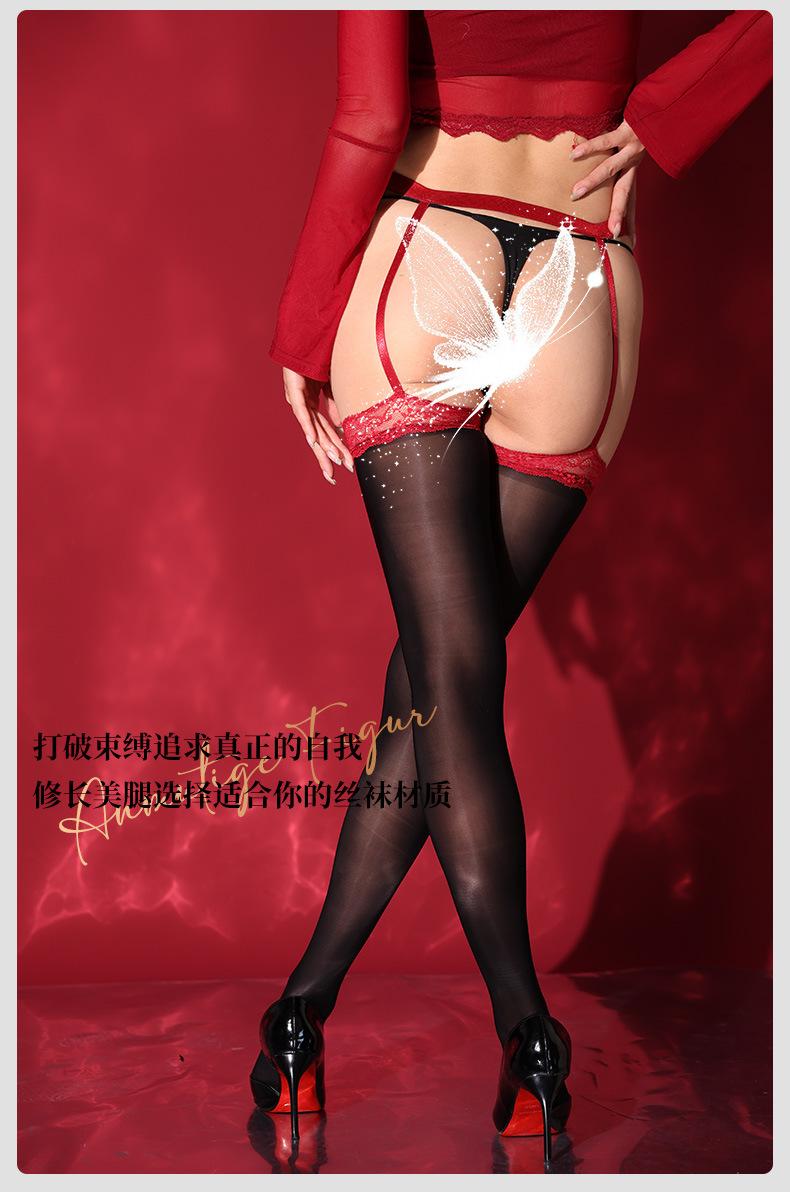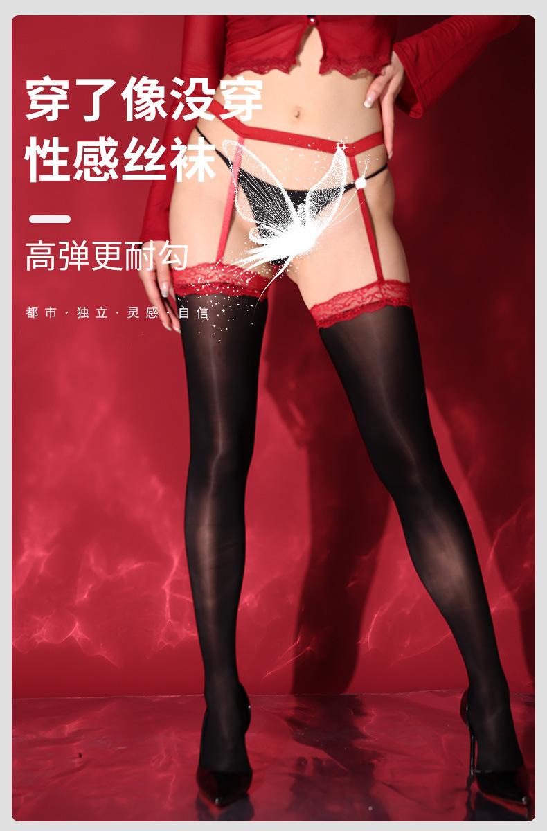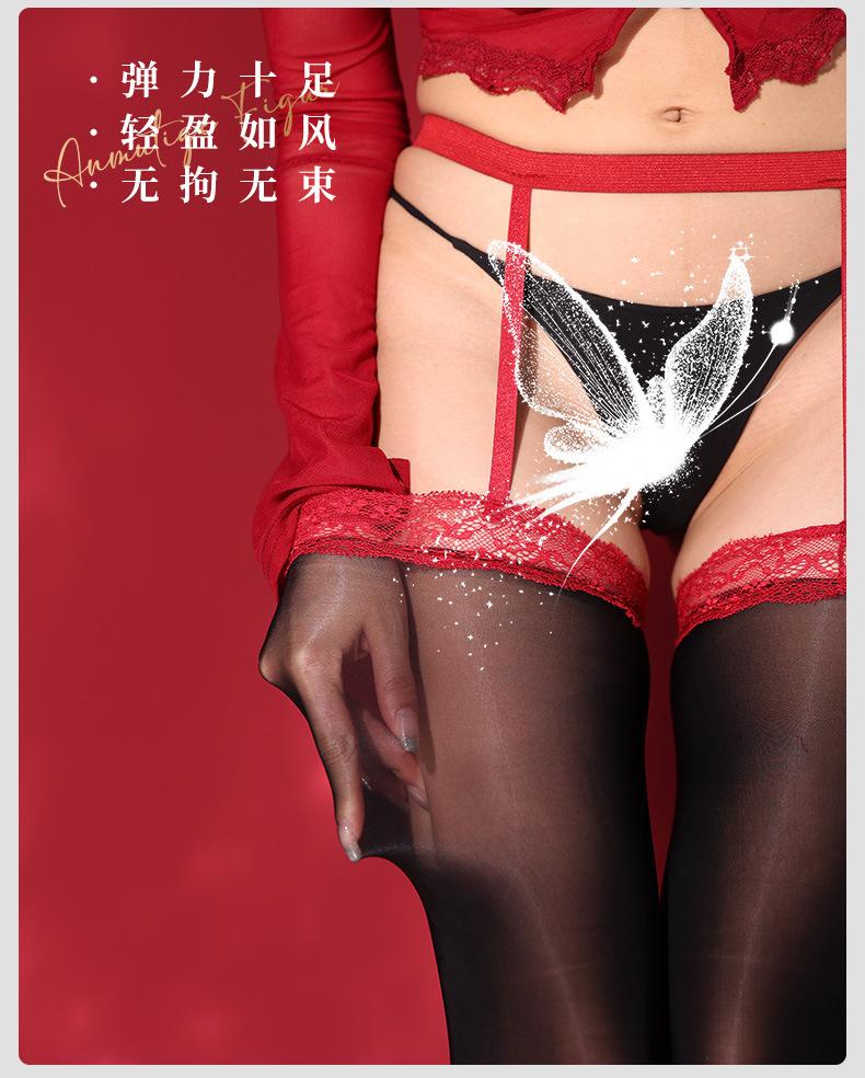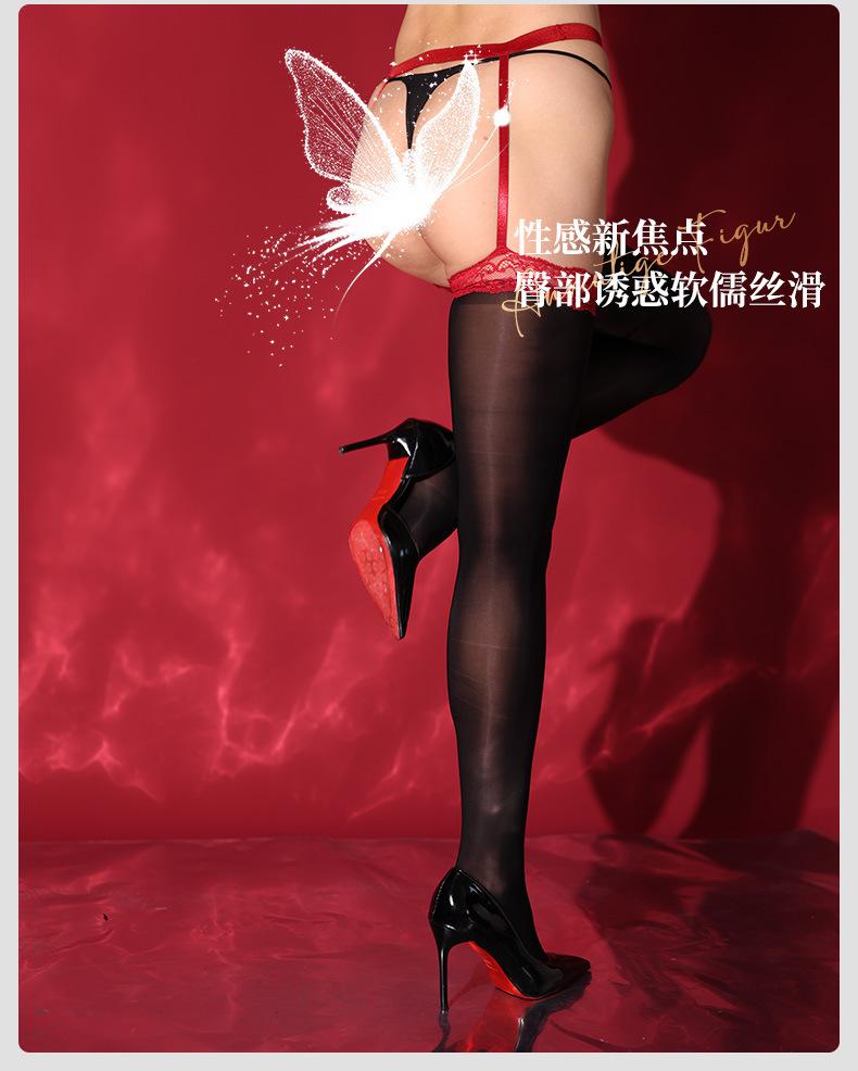 Medias Liguero de Encaje Negro Sexy Ultradelgadas con Encaje Brillante Aurora Integrado Medias de Tubo Medio