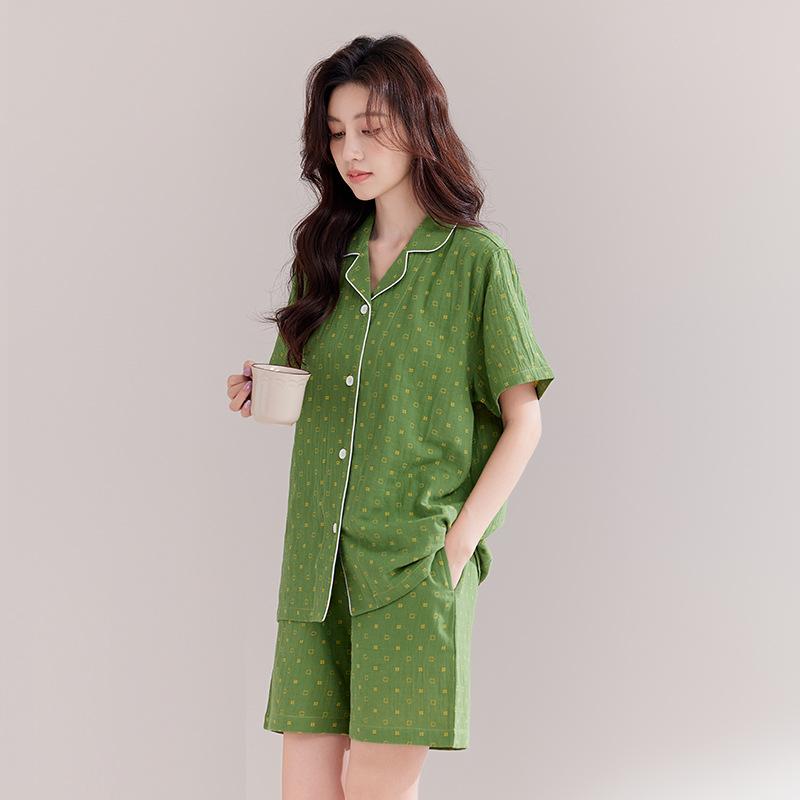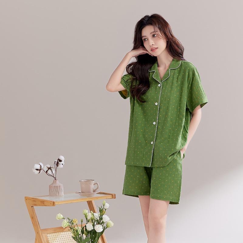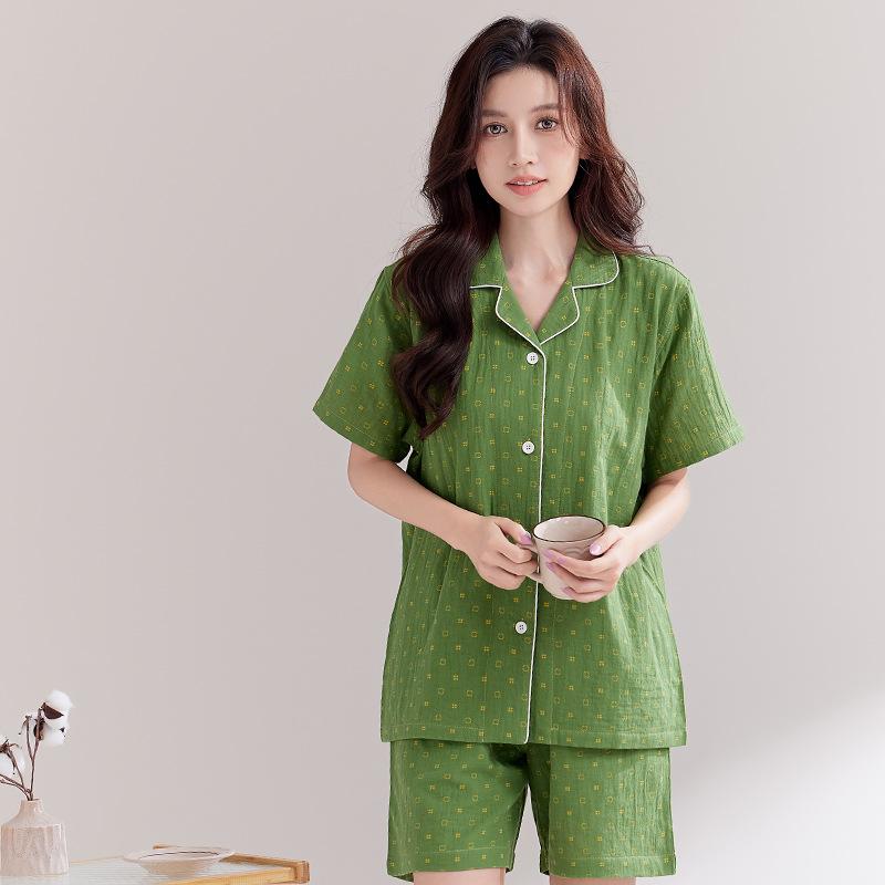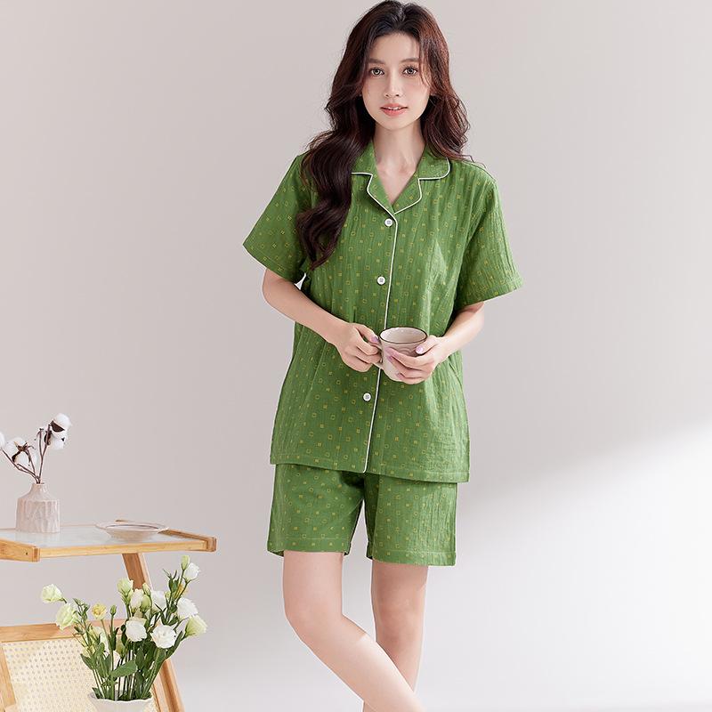 Ropa de Casa de Algodón Muji de Estilo Japonés de Hilo de Doble Capa de Manga Corta Buen Conjunto de Pijama de Verano de Manga Corta y Pantalones Cortos para Pareja