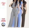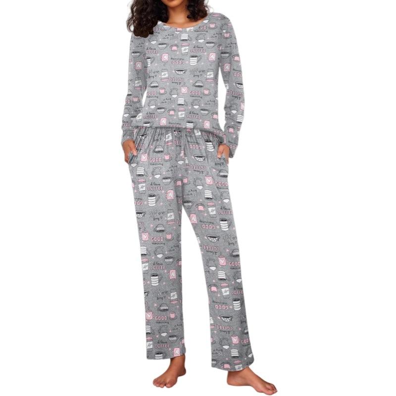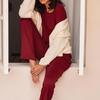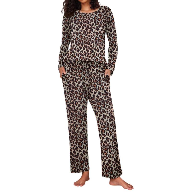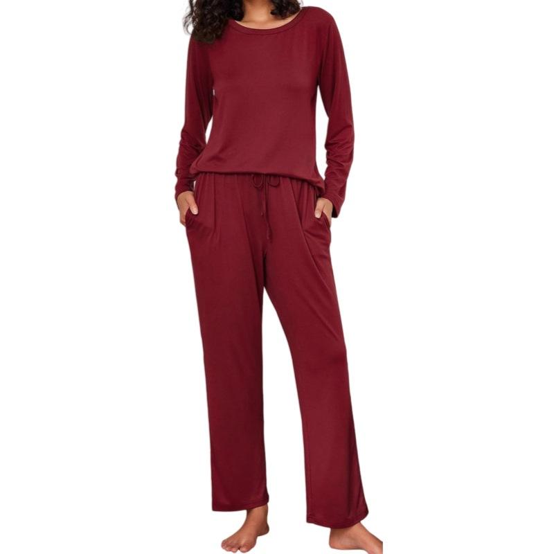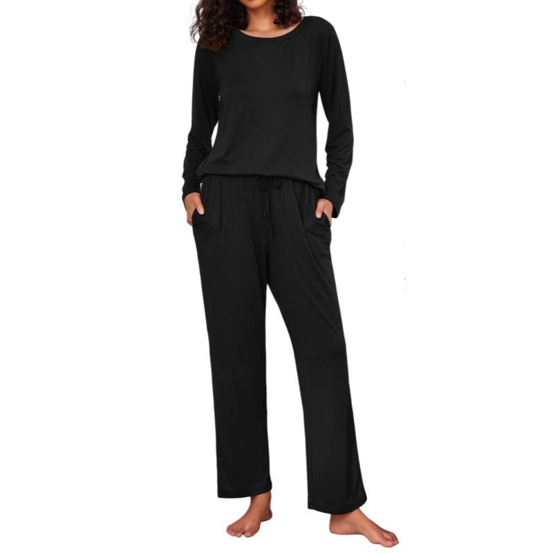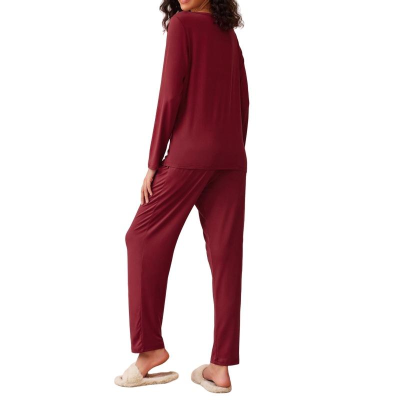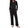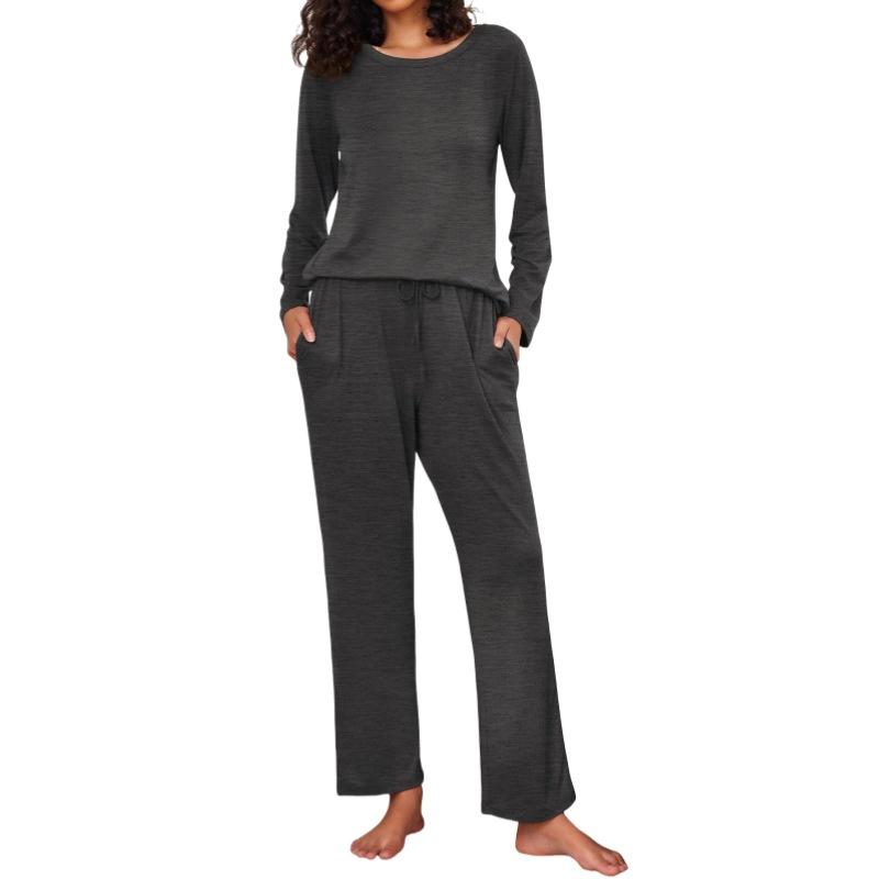 Nueva Ropa de Casa de Cuello Redondo para Mujer de Amazon Pijama Casual Transfronterizo Europeo y Americano para Mujer Conjunto de Pantalón de Manga Larga de Color Sólido