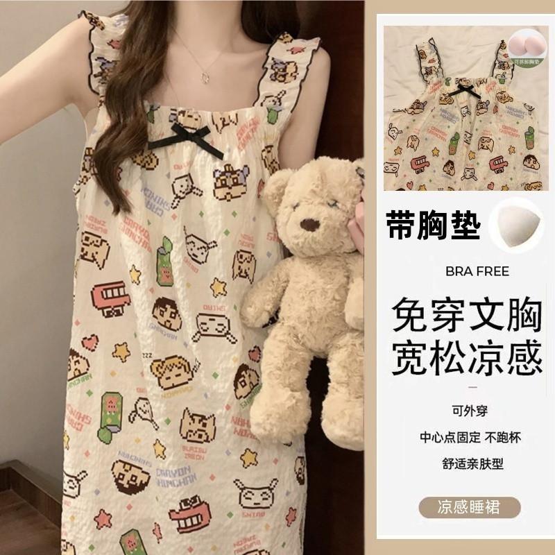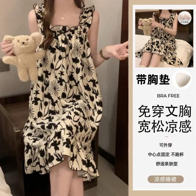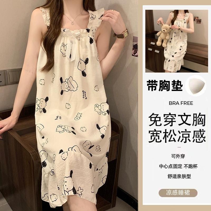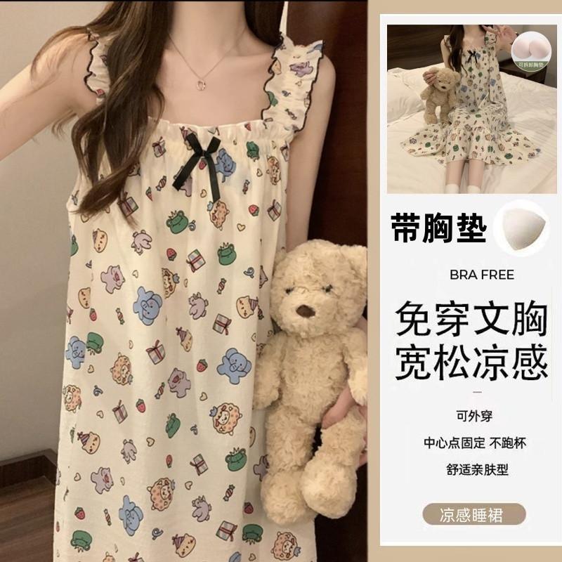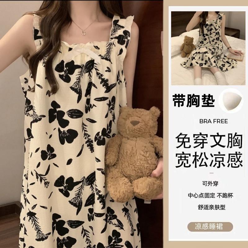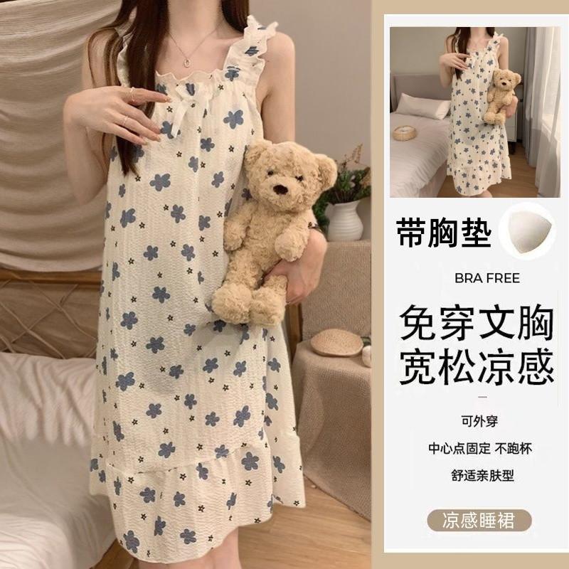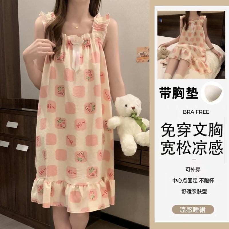 Nuevo Estilo Almohadilla para el Busto Sling Pijama de Verano Verano Delgado Sin Mangas Celebridad de Internet Dulce Camisón Exterior Ropa de Casa Holgada