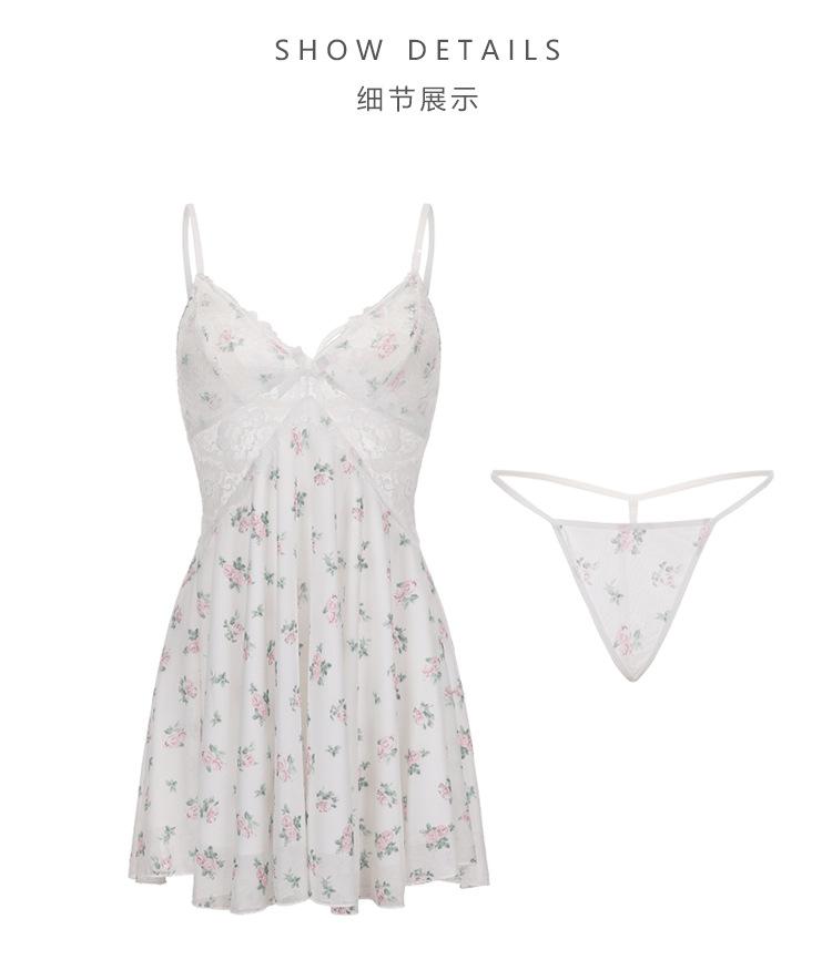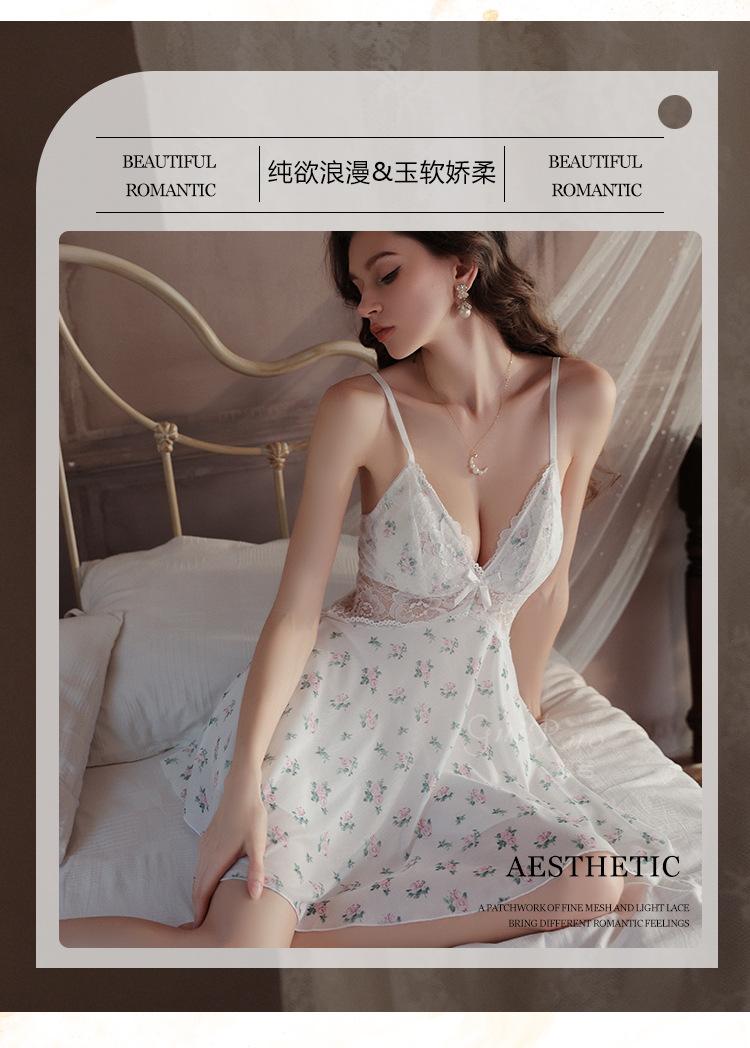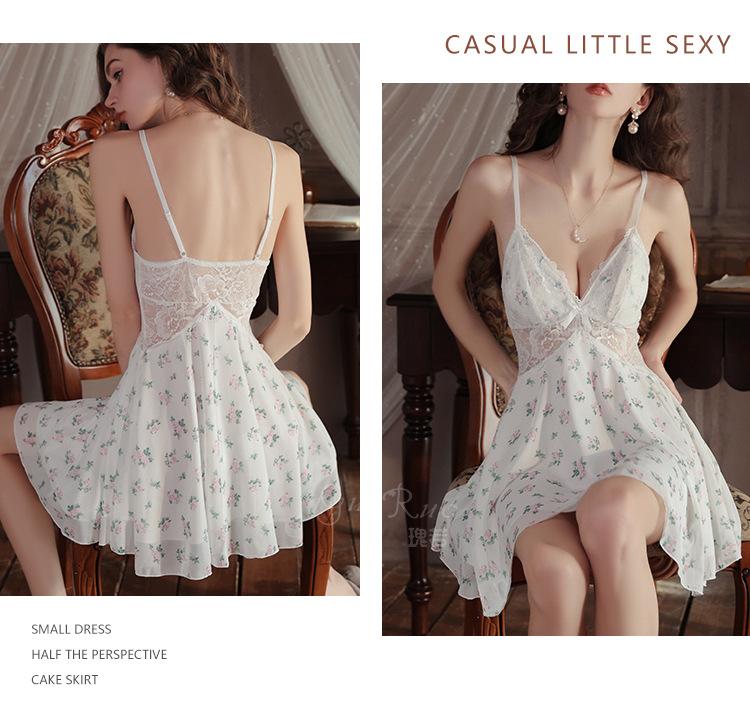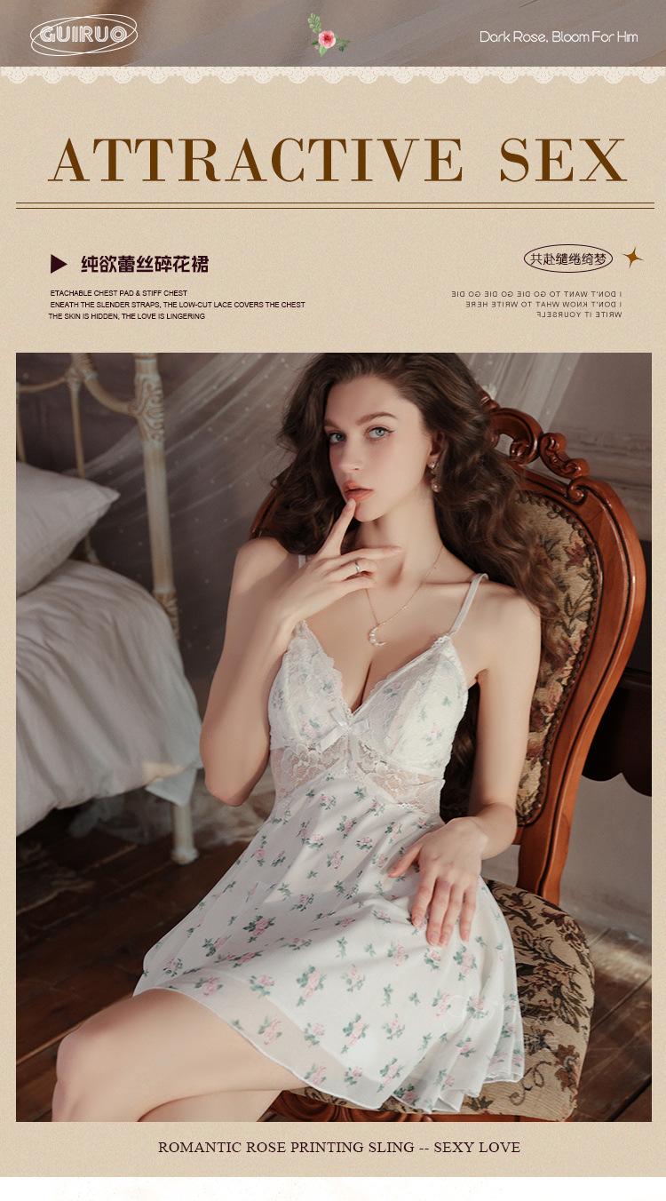 DZ Guiruo Marca Ropa Interior Pasión Caliente Encaje Calado Sexy Profundo V Más Almohadilla para el Pecho Camisón de Talla Grande Traje C4751