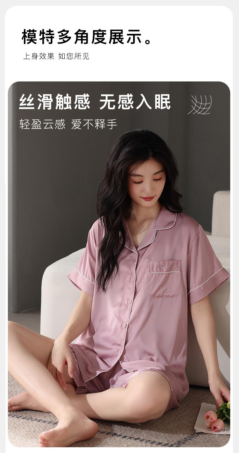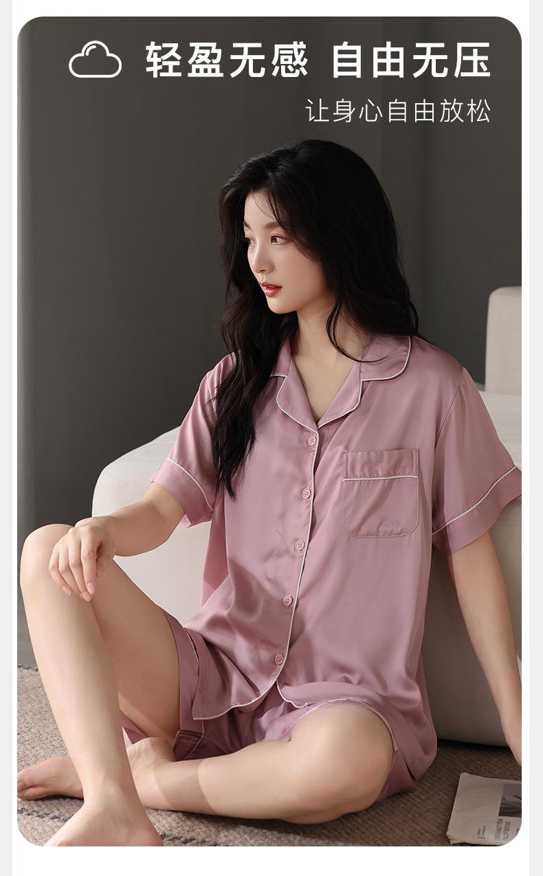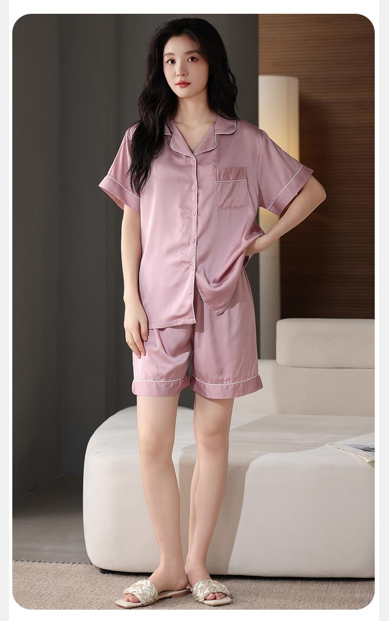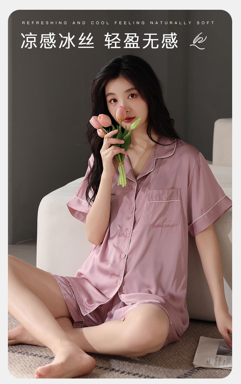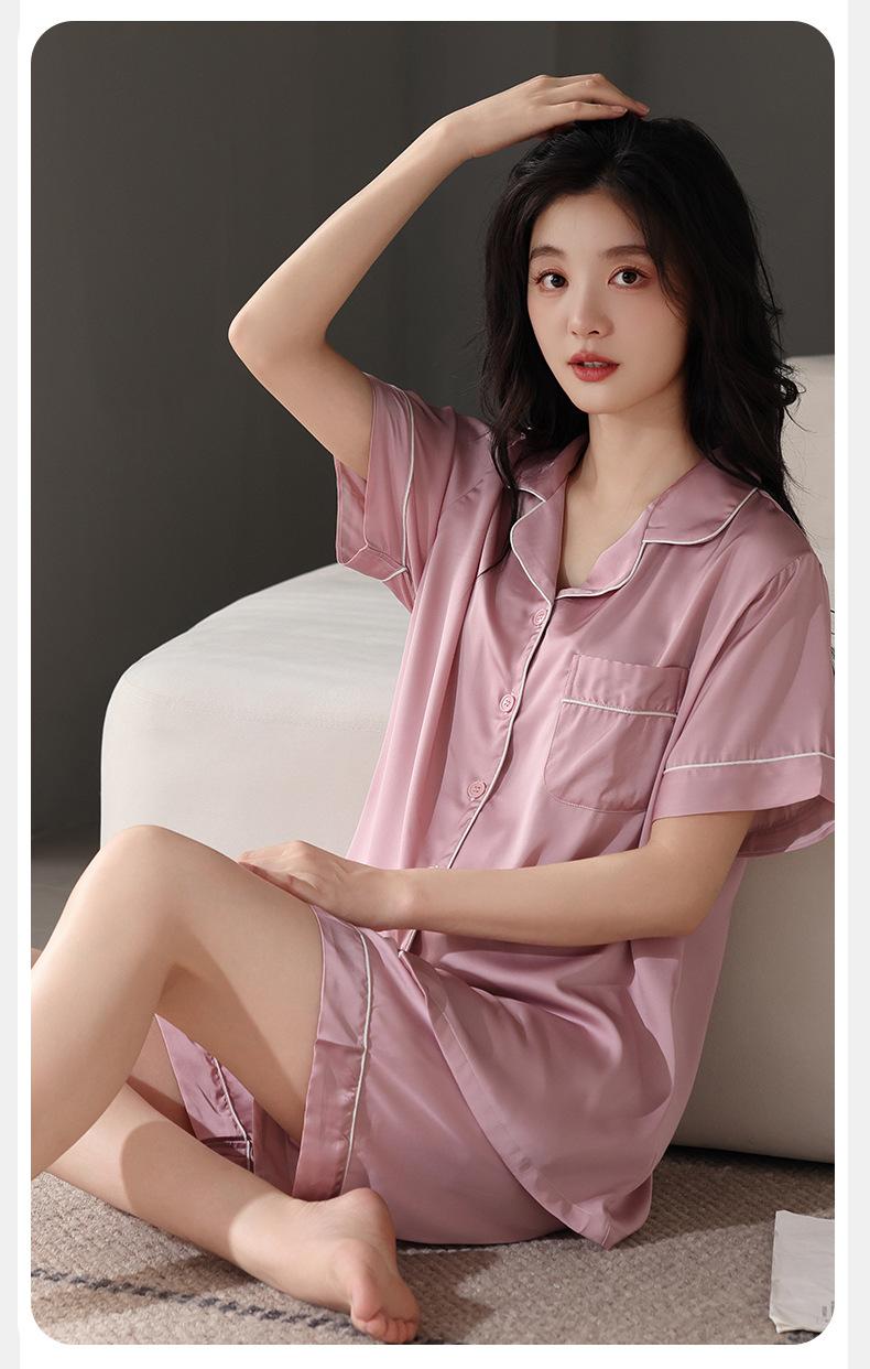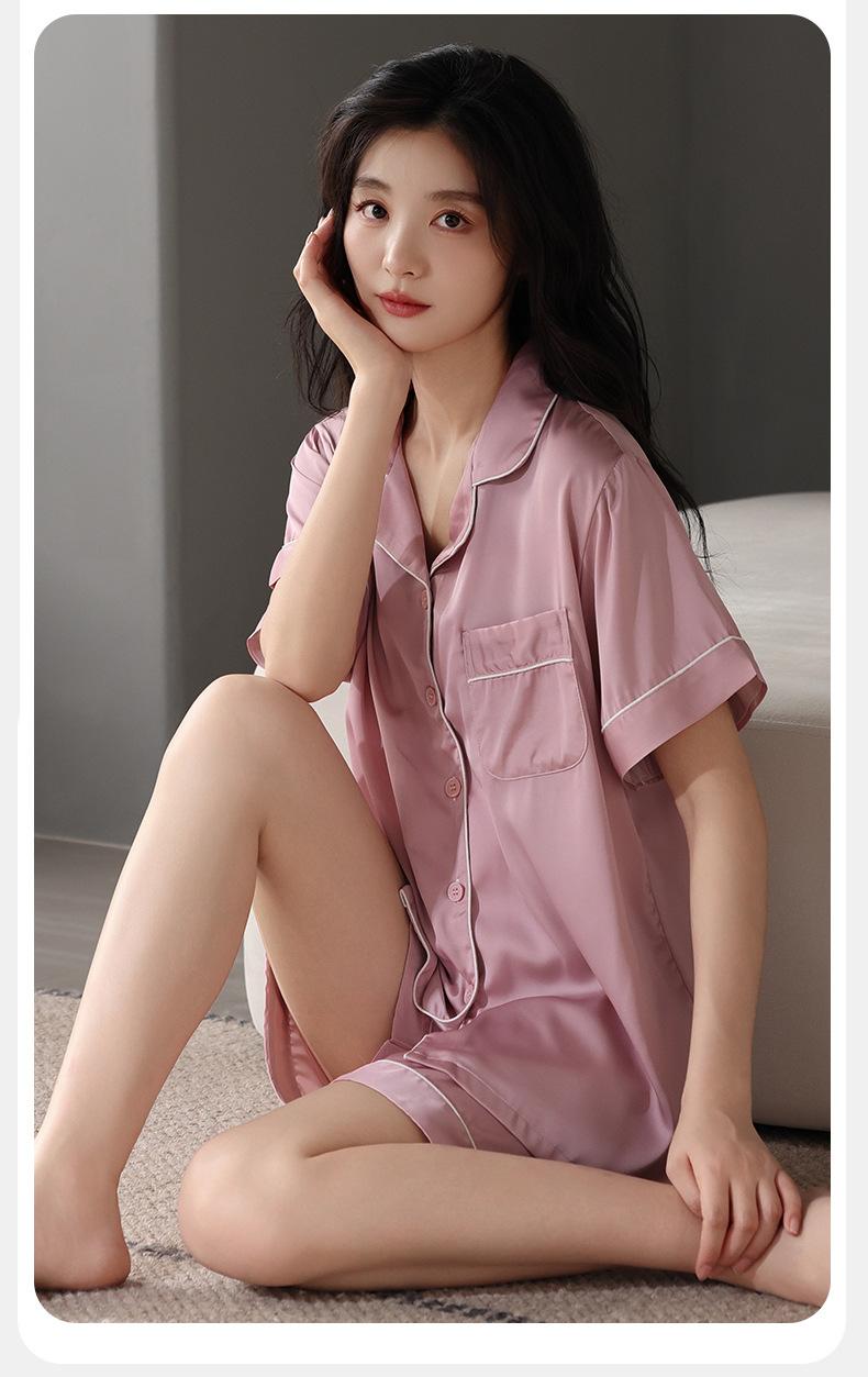 Pijamas para Mujer Verano Seda Hielo Seda de Imitación Manga Corta Shorts Ropa para Casa Verano Delgada Talla Extra Traje