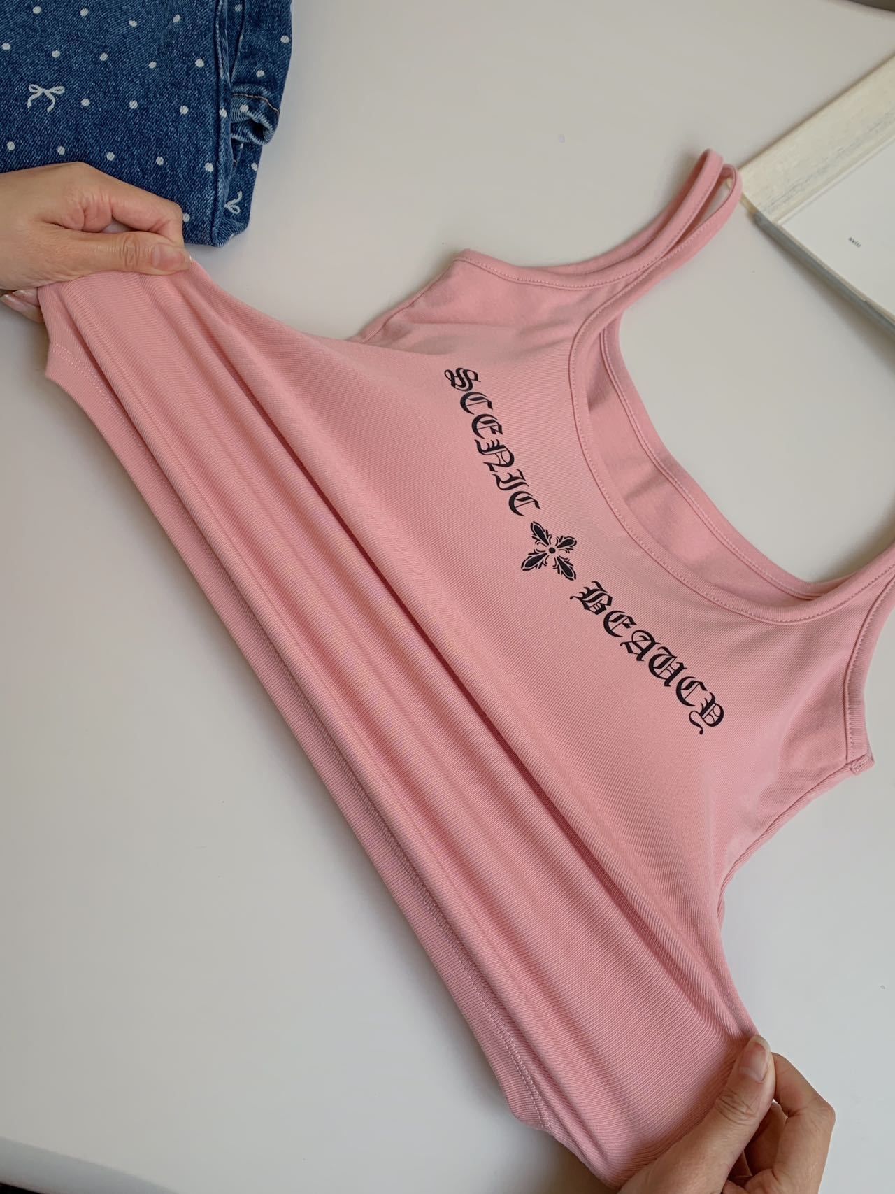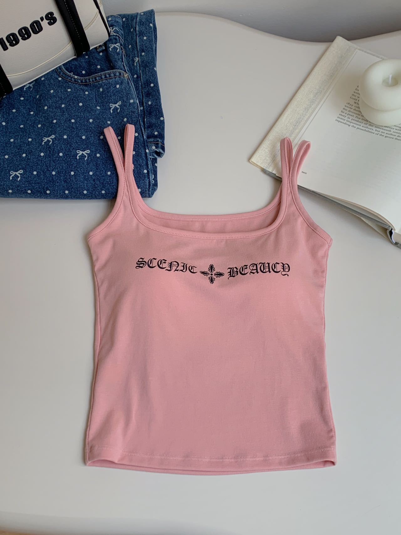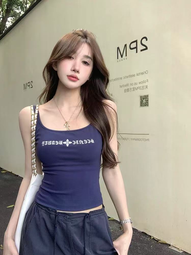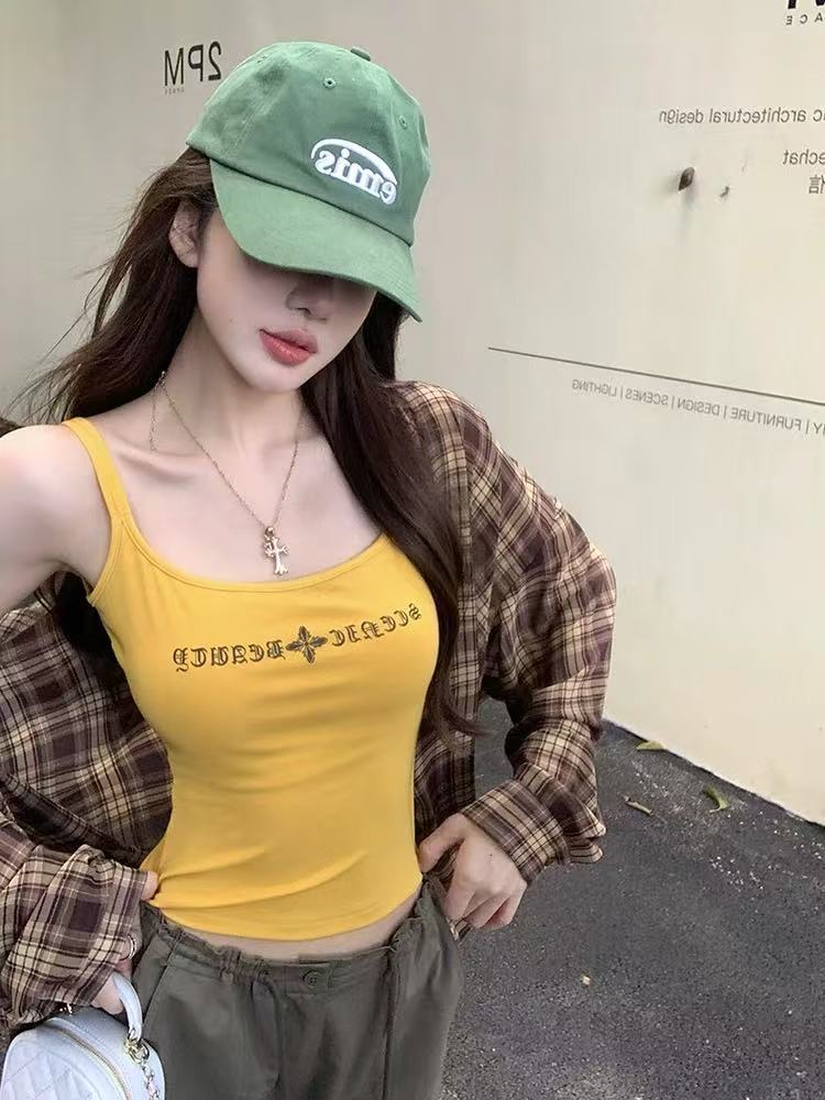 2025 Nuevo Camisola de Tirantes Estampado de Letras Americanas para Chica Hot Ropa Interior para Mujer Slim Verano Ropa Exterior Dopamina Sin Mangas