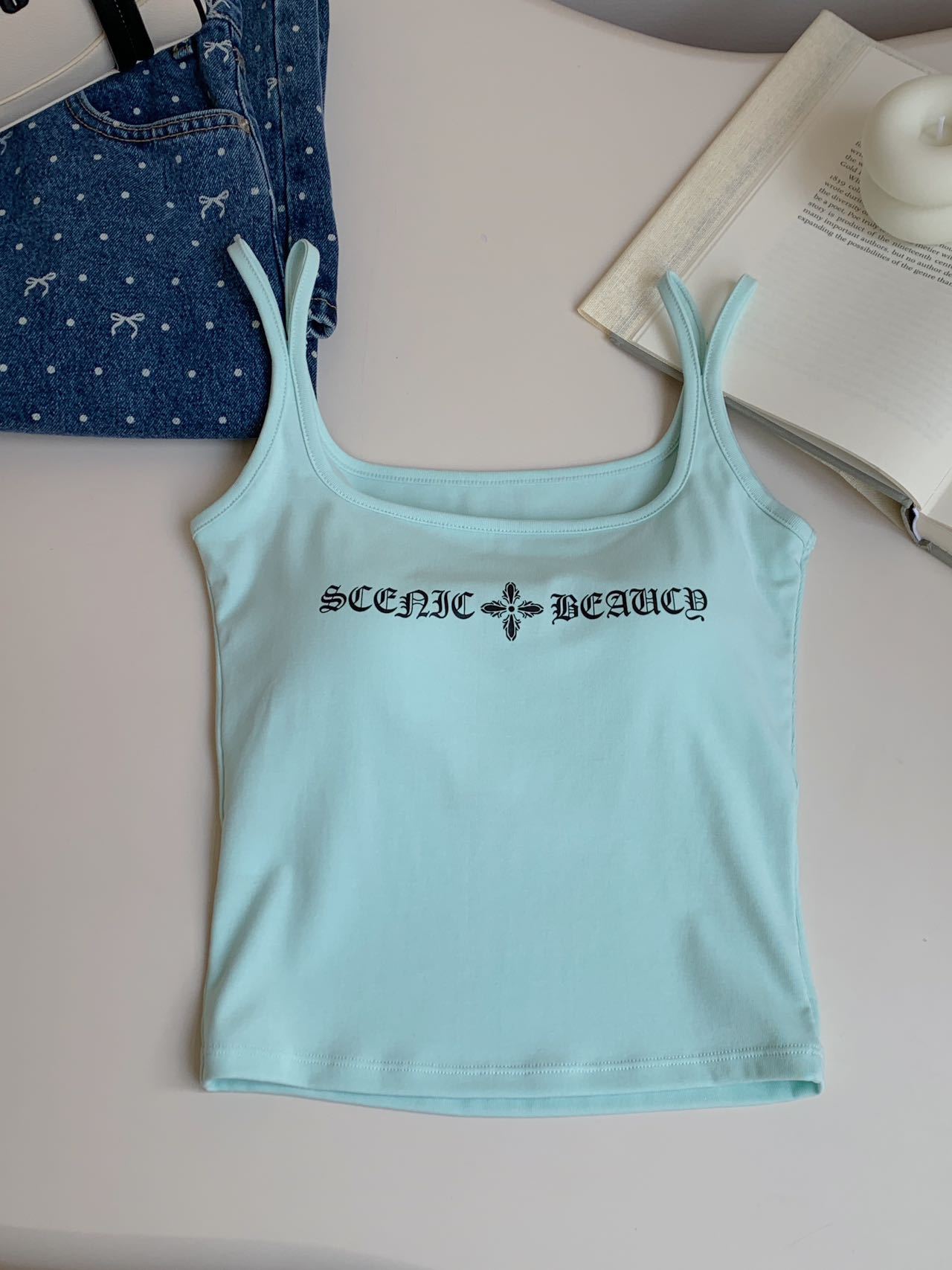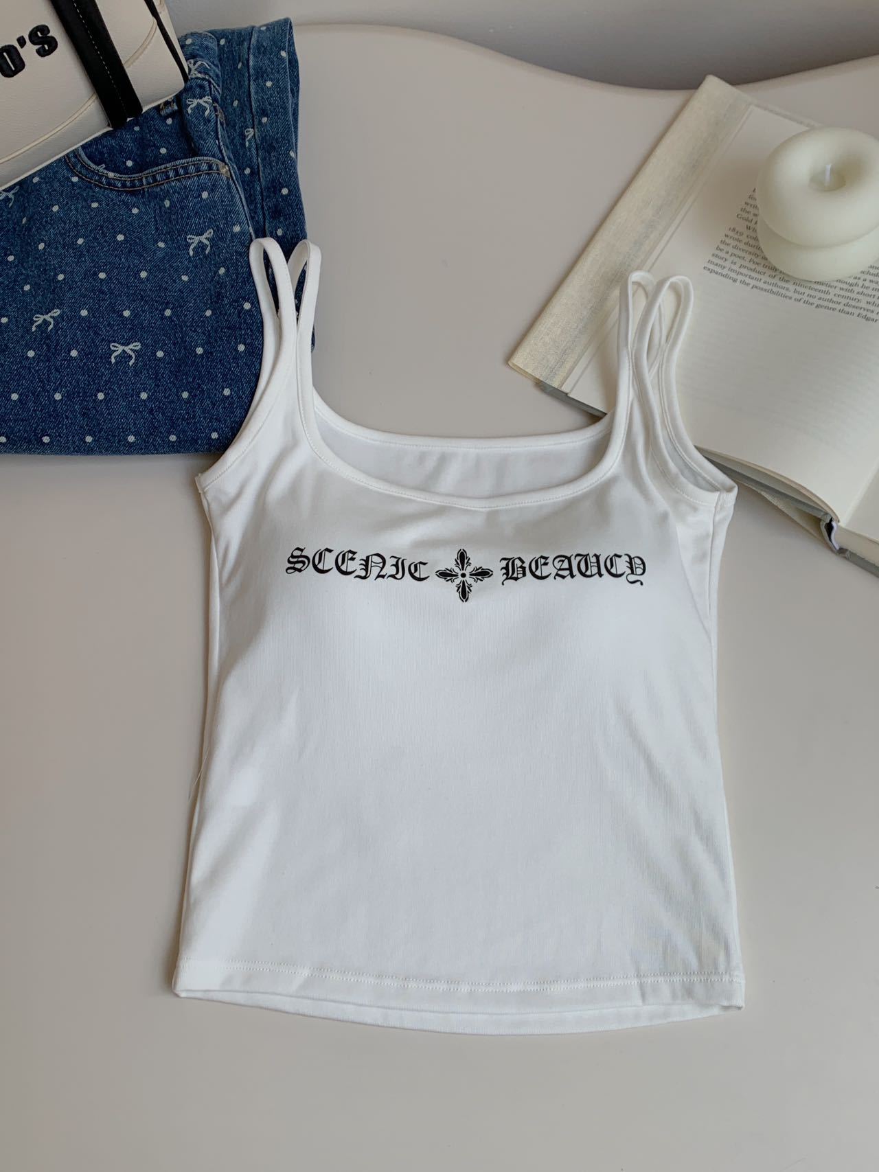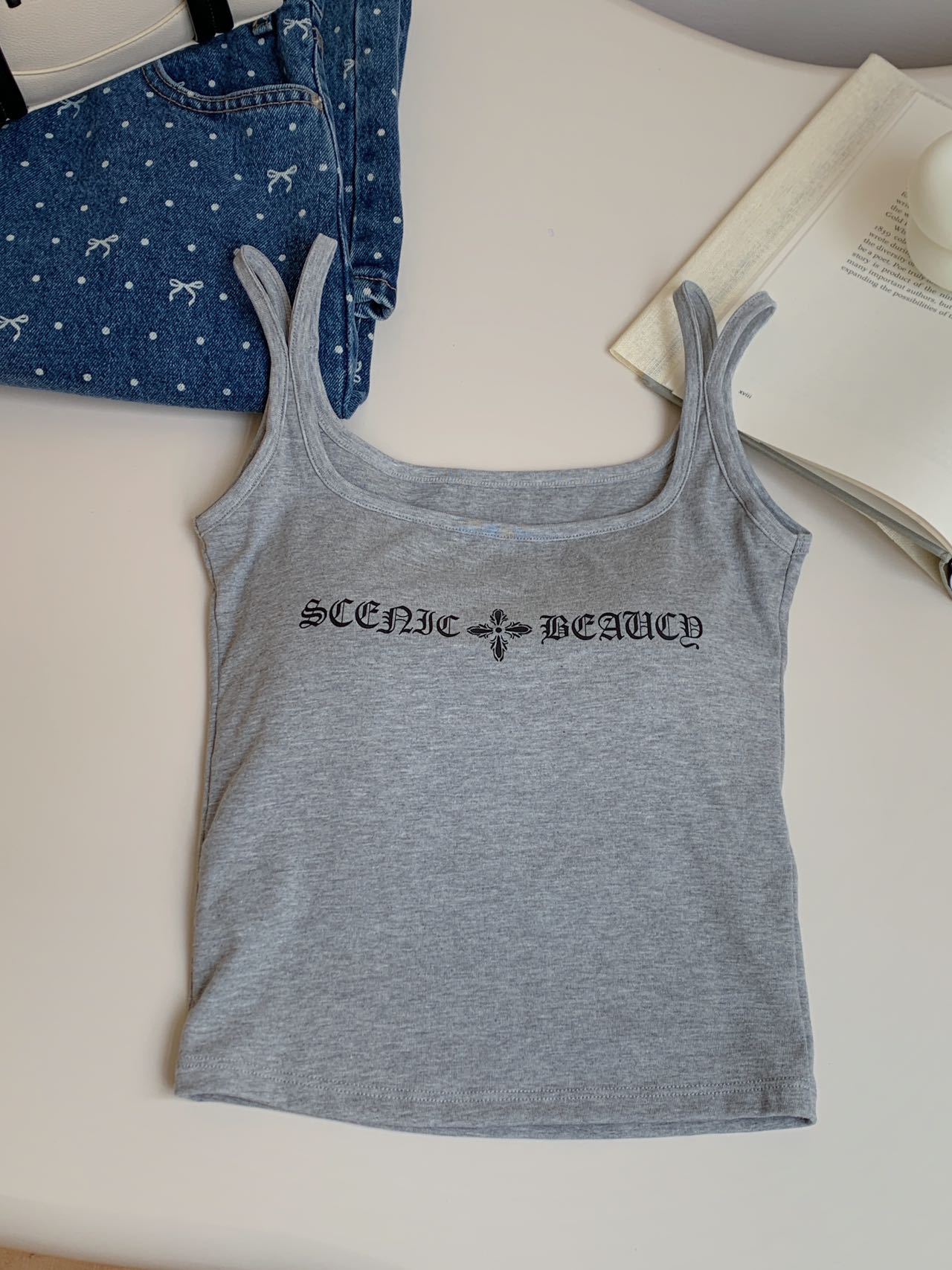 2025 Nuevo Camisola de Tirantes Estampado de Letras Americanas para Chica Hot Ropa Interior para Mujer Slim Verano Ropa Exterior Dopamina Sin Mangas