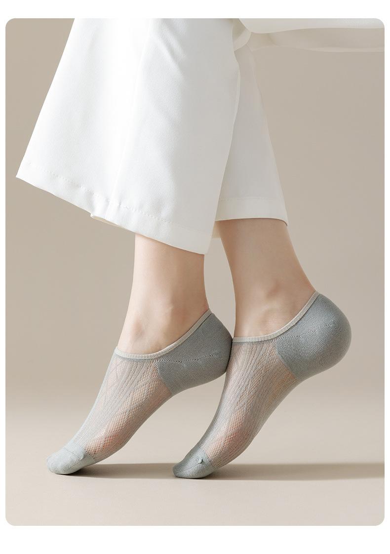 Calcetines invisibles para mujer, Calcetines de malla fina transpirable de corte bajo invisibles con silicona antideslizante para verano