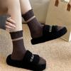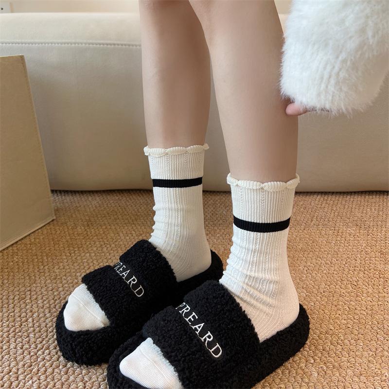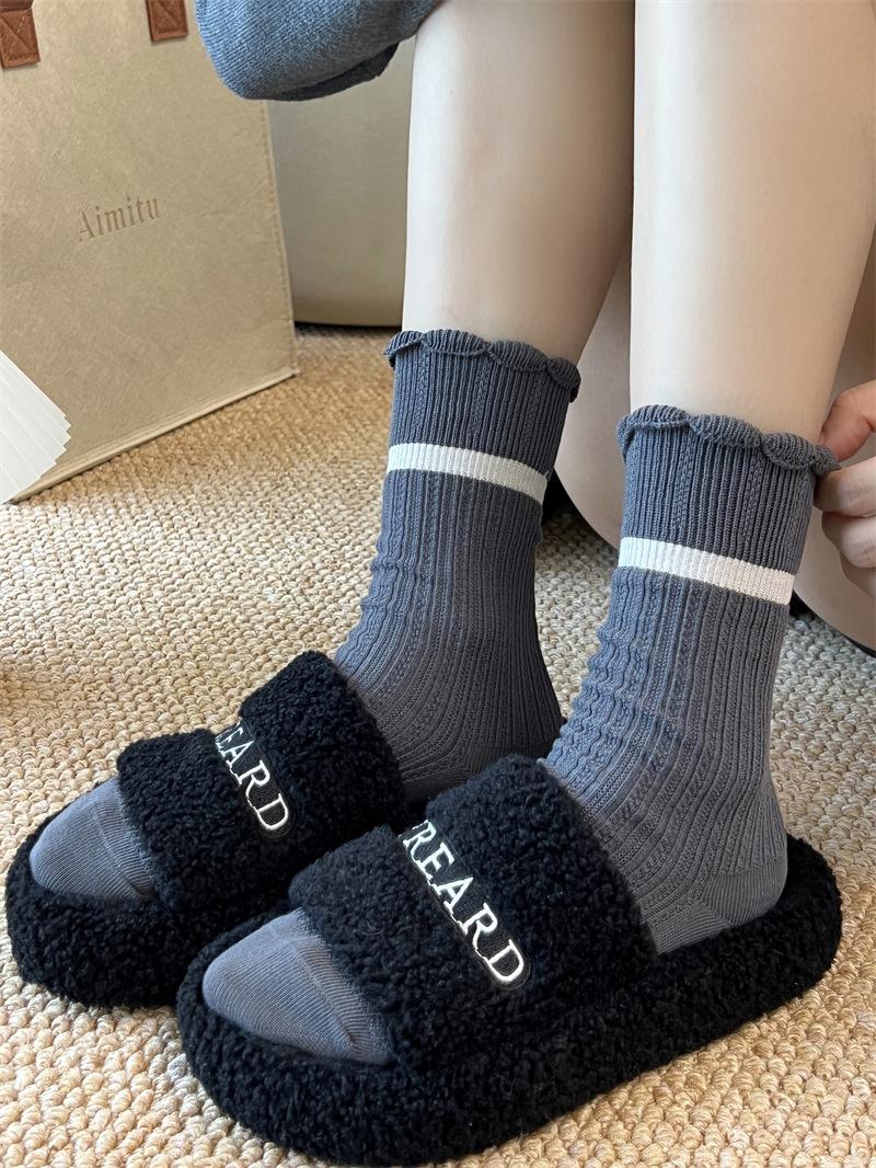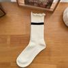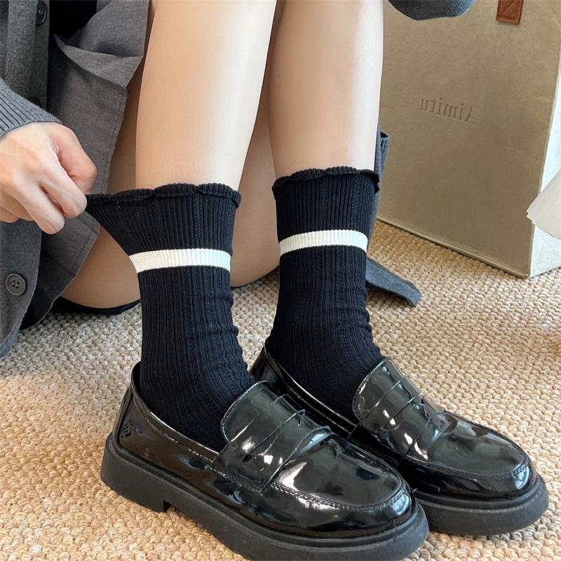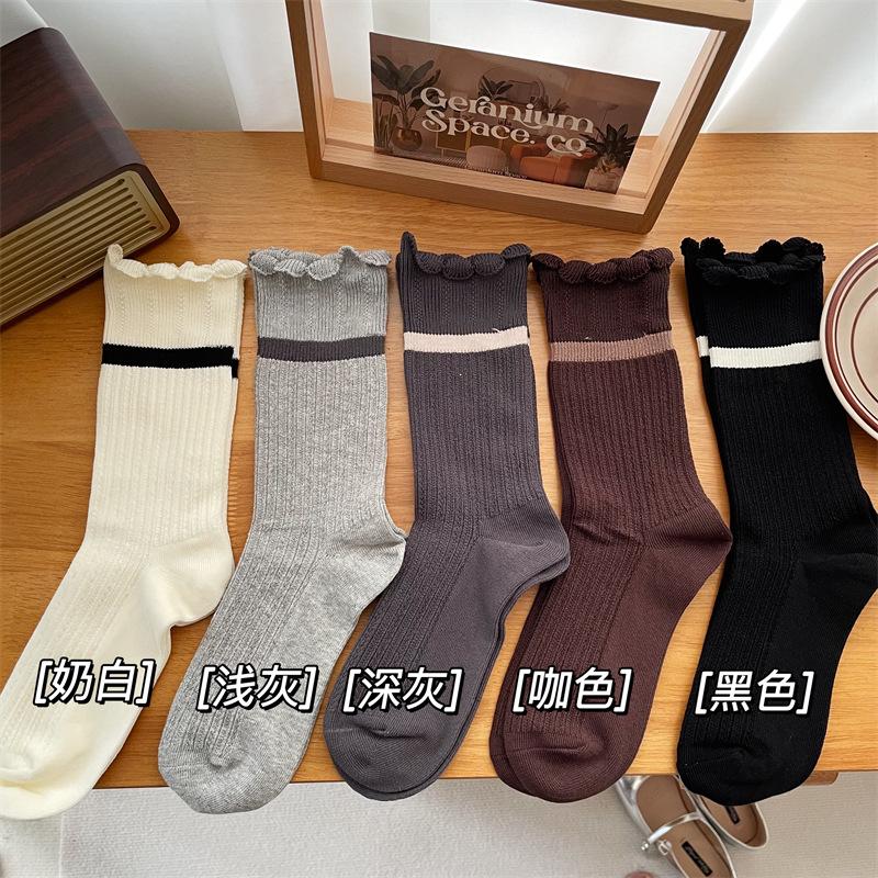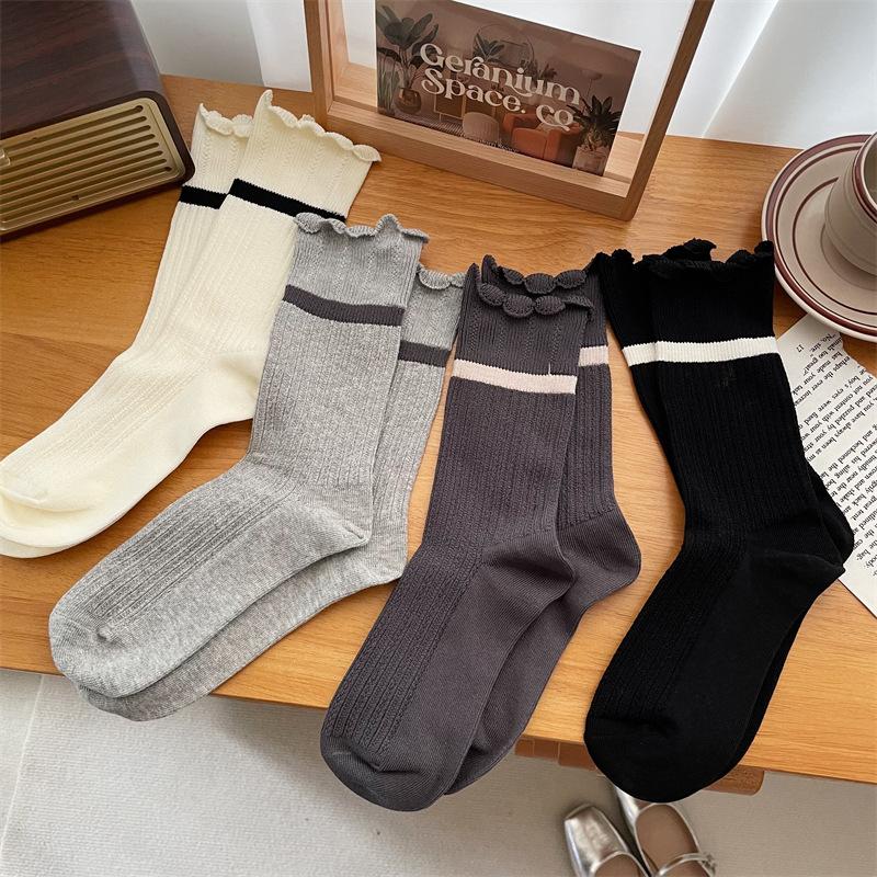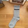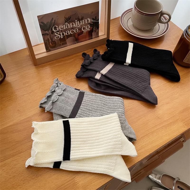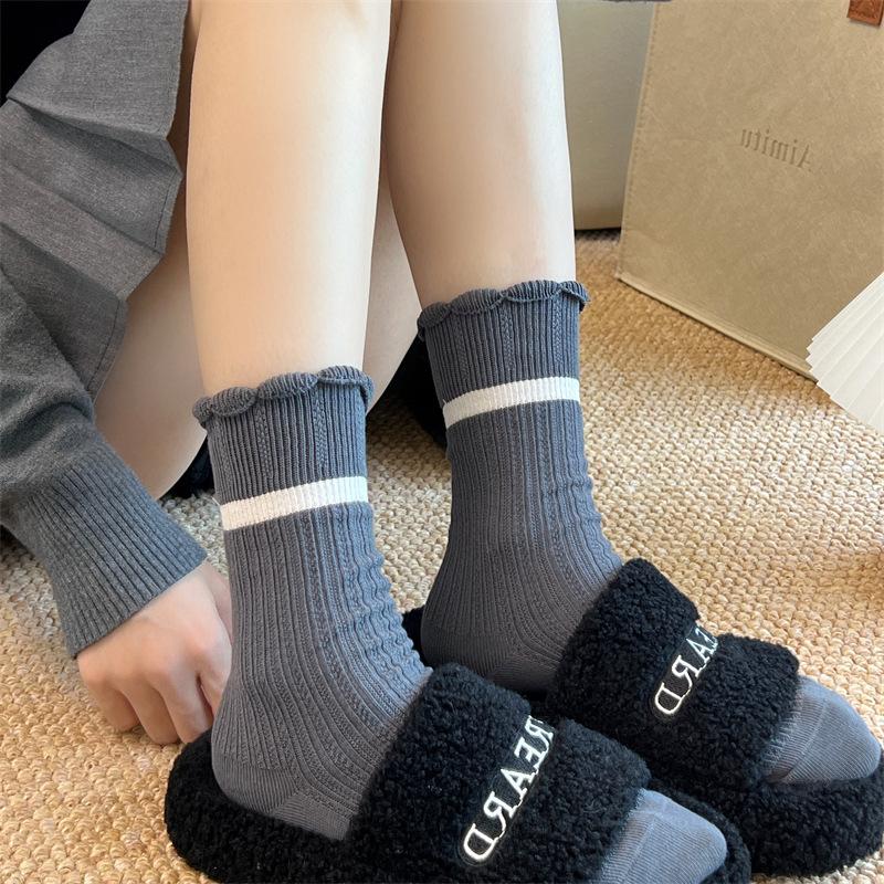 Calcetines de otoño e invierno calcetines para niños calcetines de rizo a rayas grises calcetines de encaje para mujer medias sencillas lindas japonesas al por mayor