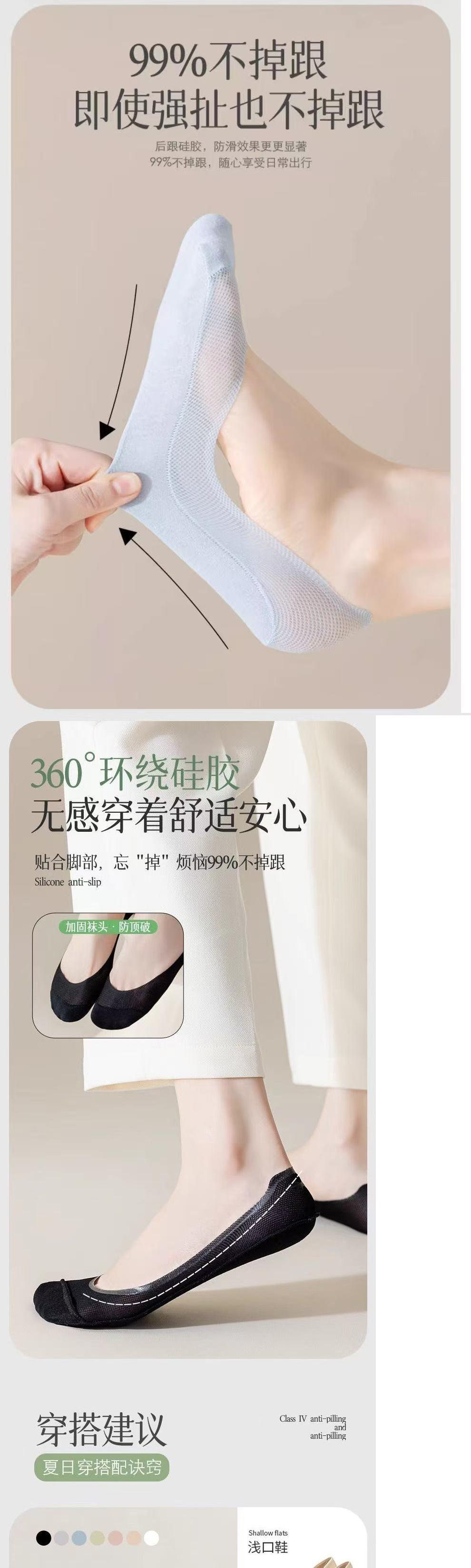 Calcetines de Verano para Barco Calcetines de Mujer Calcetines Super Invisibles Malla Transpirable Algodón Parte Inferior Silicona Antideslizante Sin Talón