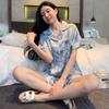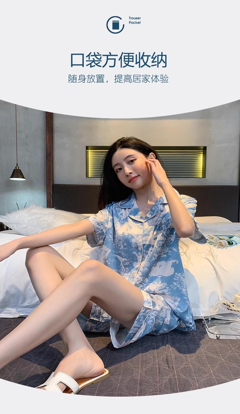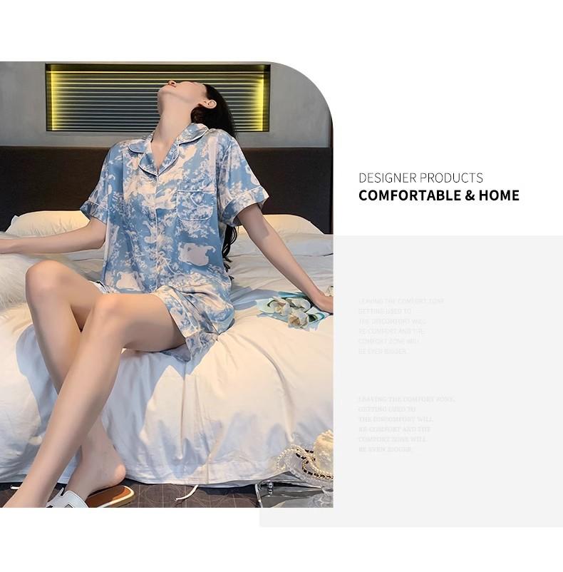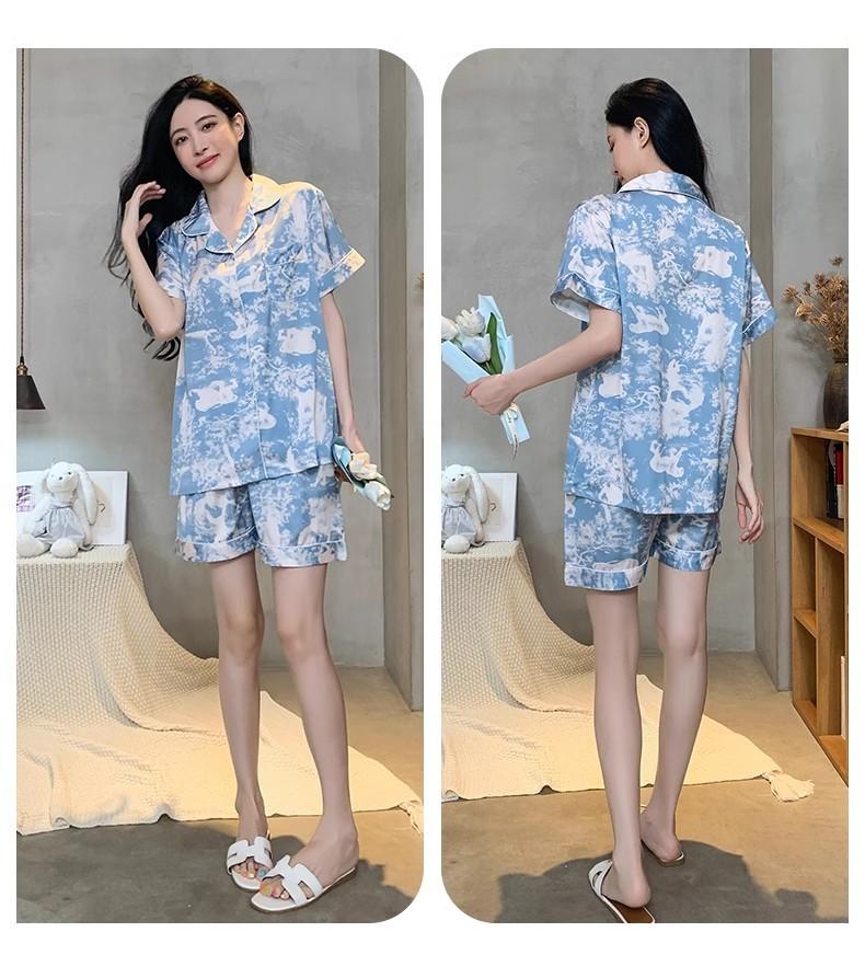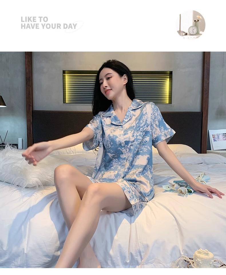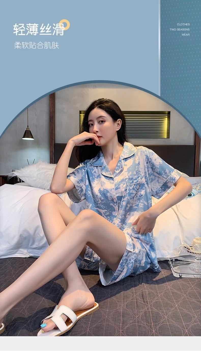 Pijama para Mujer Verano Seda de Hielo Camisa de Manga Corta Traje Seda Imitación Elegante de Alta Gama Moda Delgada Ropa para el Hogar Verano
