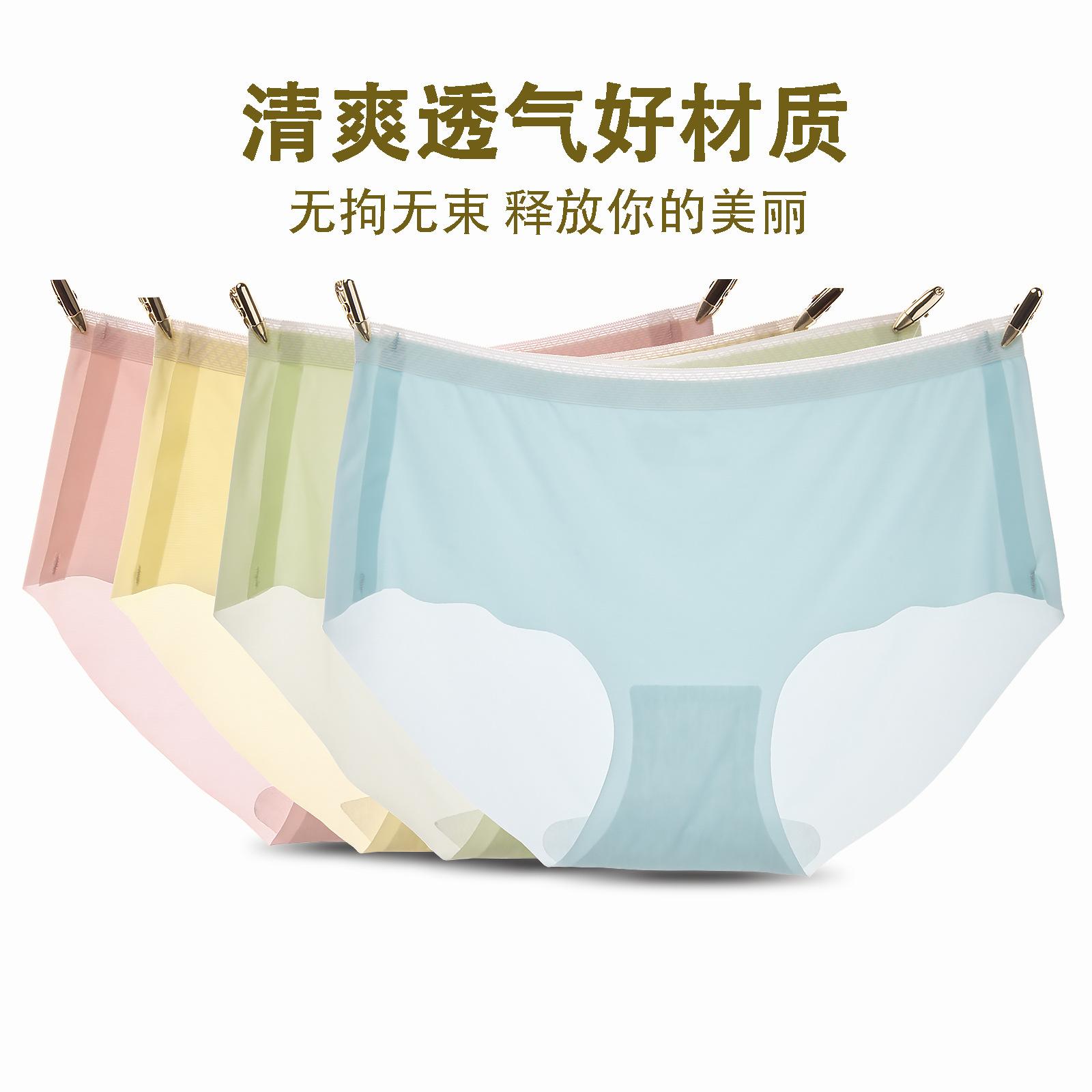 Ropa Interior Nueva de Seda de Hielo para Mujer, Sin Costuras, Transpirable, Absorbente de Humedad, Entrepierna de Algodón Puro, Calzones Transparentes de Cintura Media para Niña, Venta al Mayoreo