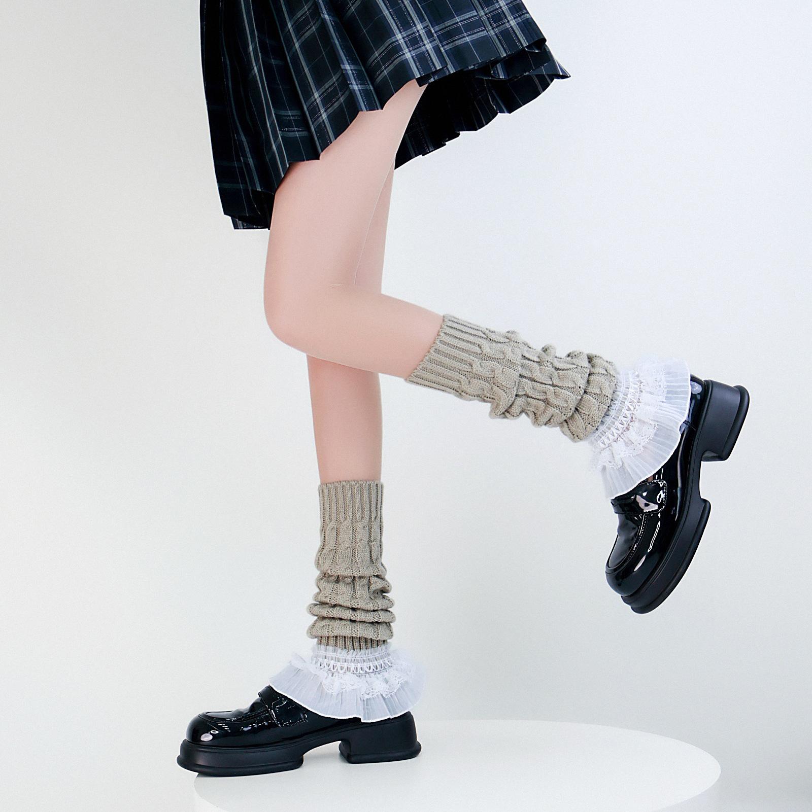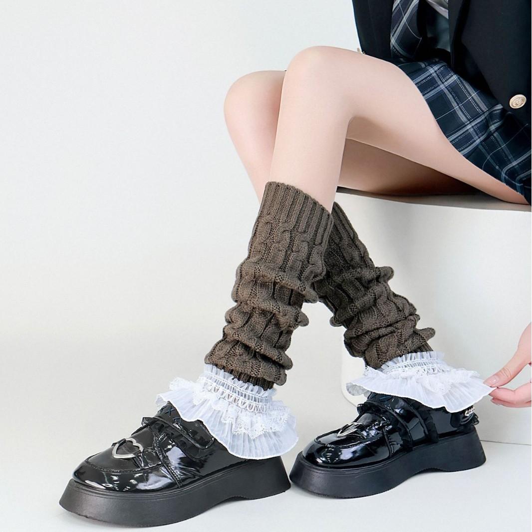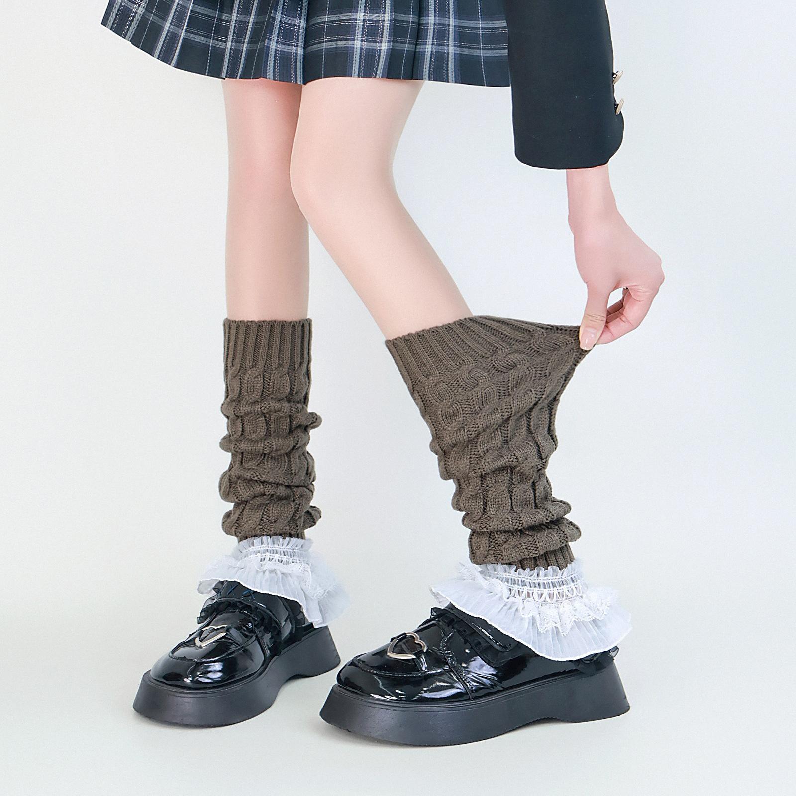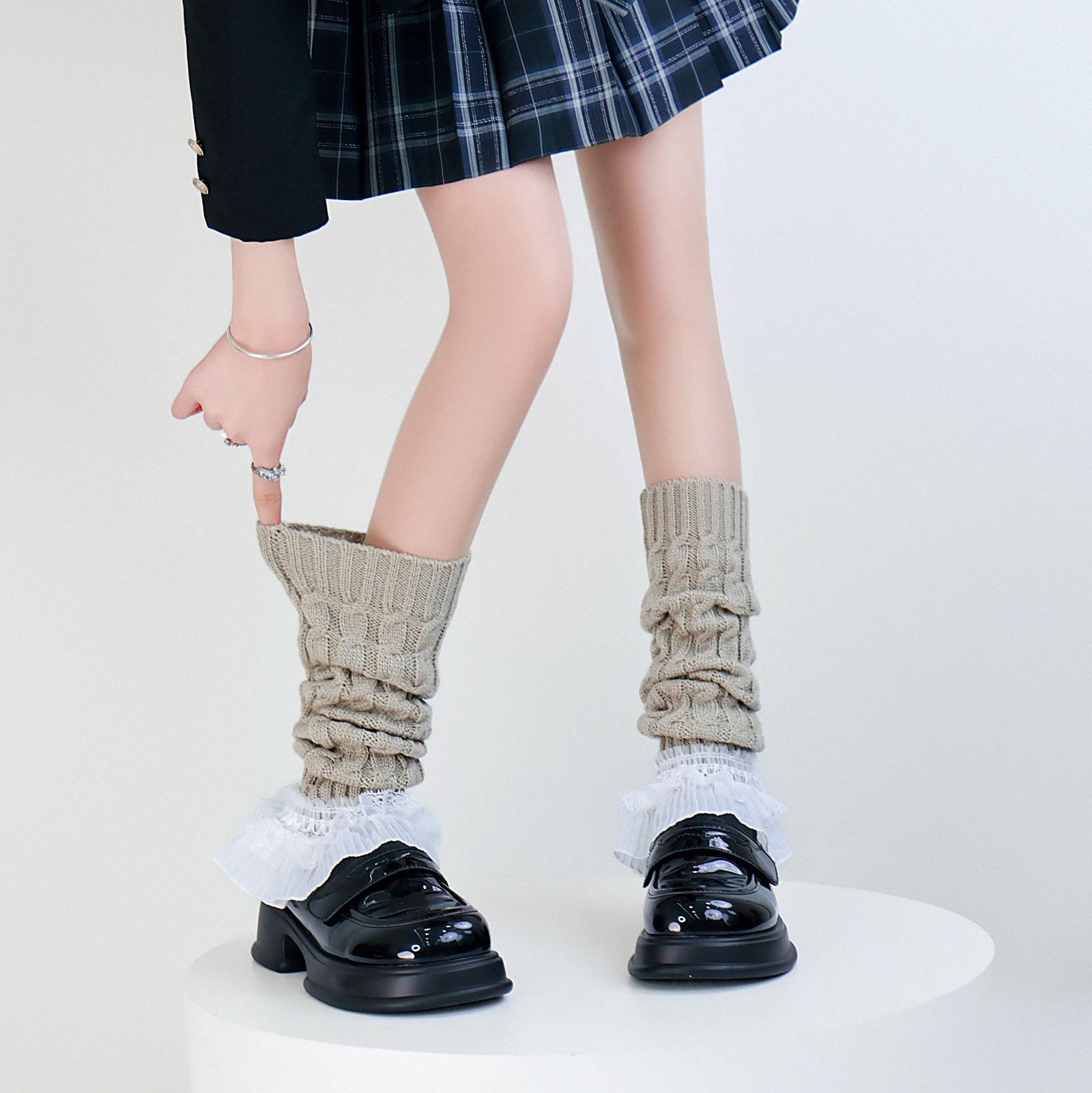 Calcetines Gruesos de Lana, Calentadores de Pierna, Calcetines de Montón Estilo Coreano, Calentadores de Pierna Tejidos para Otoño e Invierno, Leggings con Trenzado en Forma de Ocho Transfronterizos y Cubrebotas