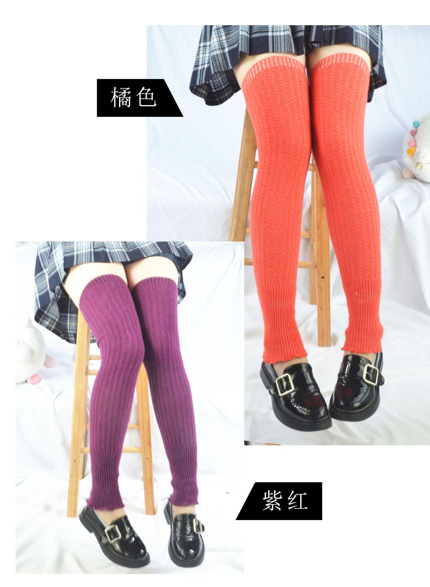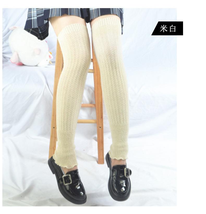 Calcetines Bajos de Punto de Invierno, Calcetines Largos para Mujer de Color Puro Estilo Japonés por Encima de la Rodilla, Calcetines de Lana, Calcetines Cálidos hasta el Muslo, Calcetines Altos Elásticos