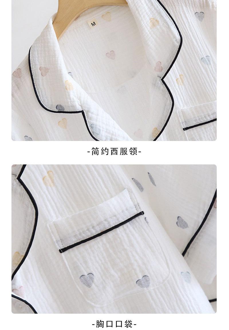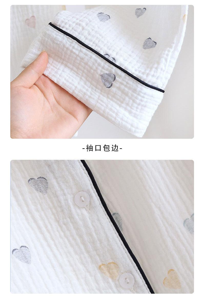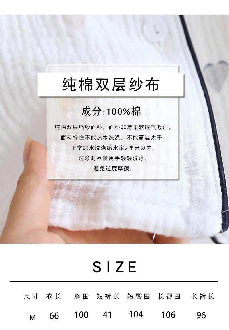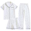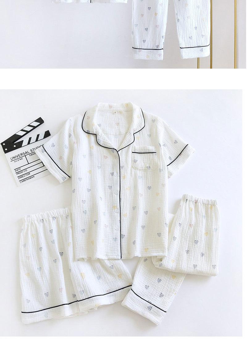 Verano Nuevo Estilo Corazón Gasa de Algodón Puro Pantalones de Manga Corta Conjunto de Pijama Casual de Tres Piezas Ropa de Casa Fina para Mujer