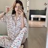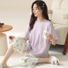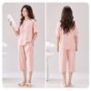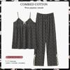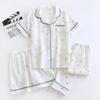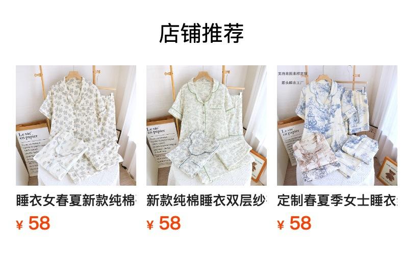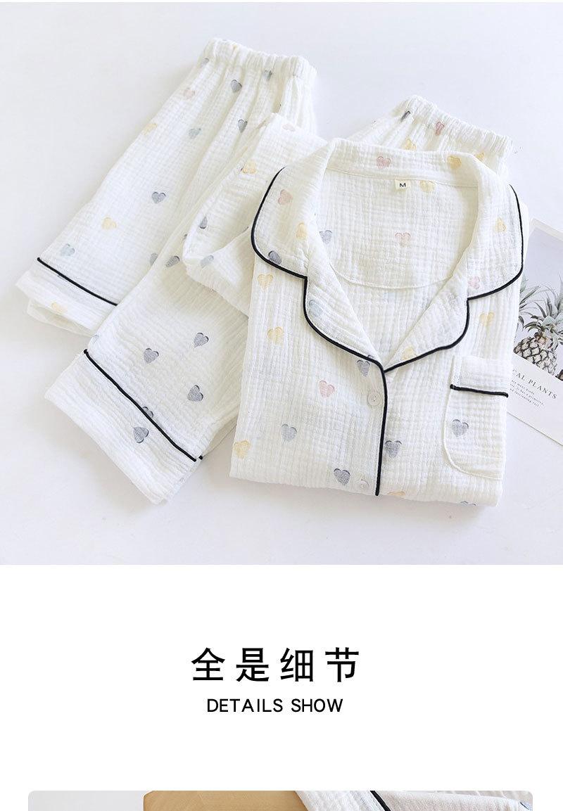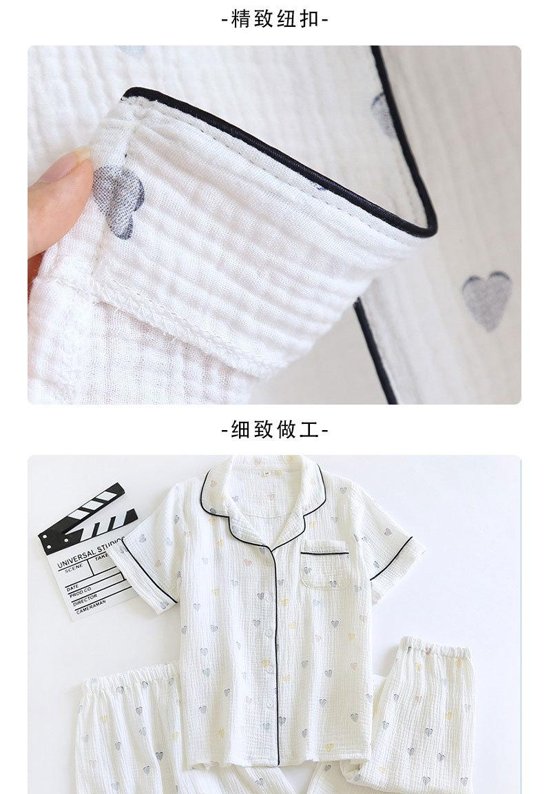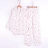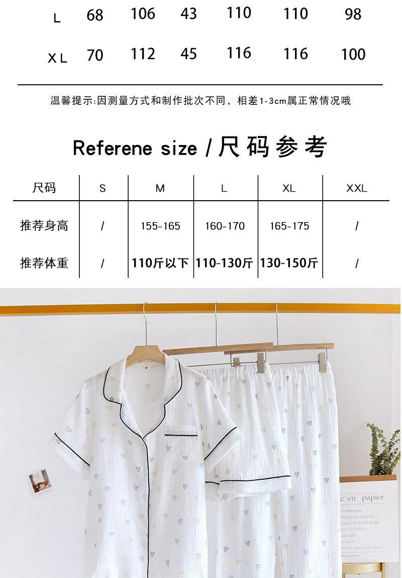 Verano Nuevo Estilo Corazón Gasa de Algodón Puro Pantalones de Manga Corta Conjunto de Pijama Casual de Tres Piezas Ropa de Casa Fina para Mujer