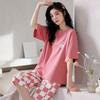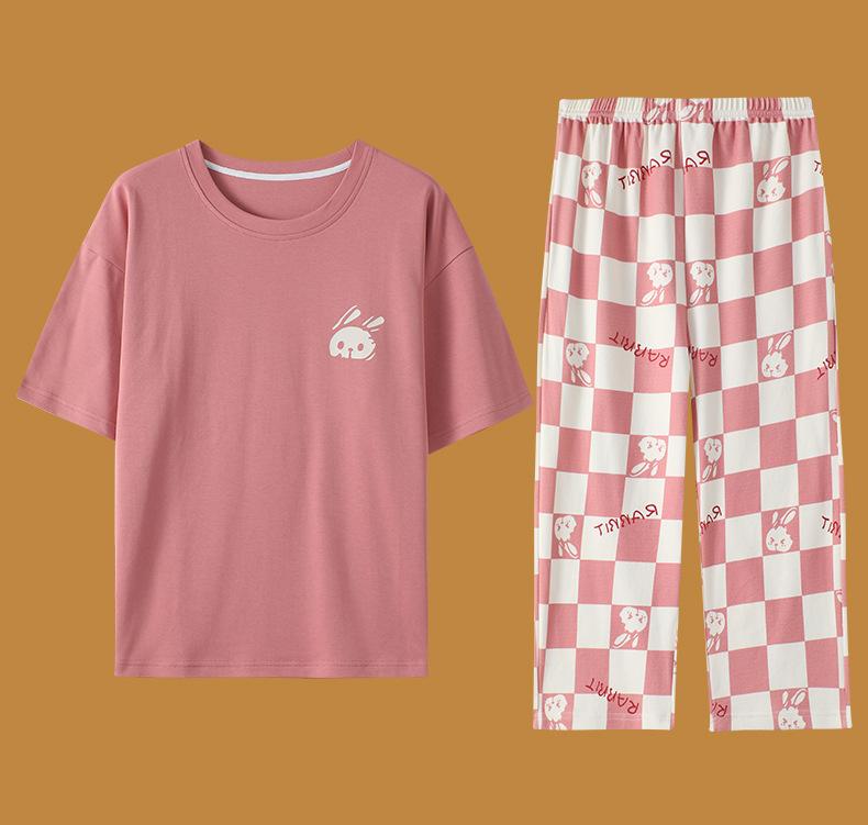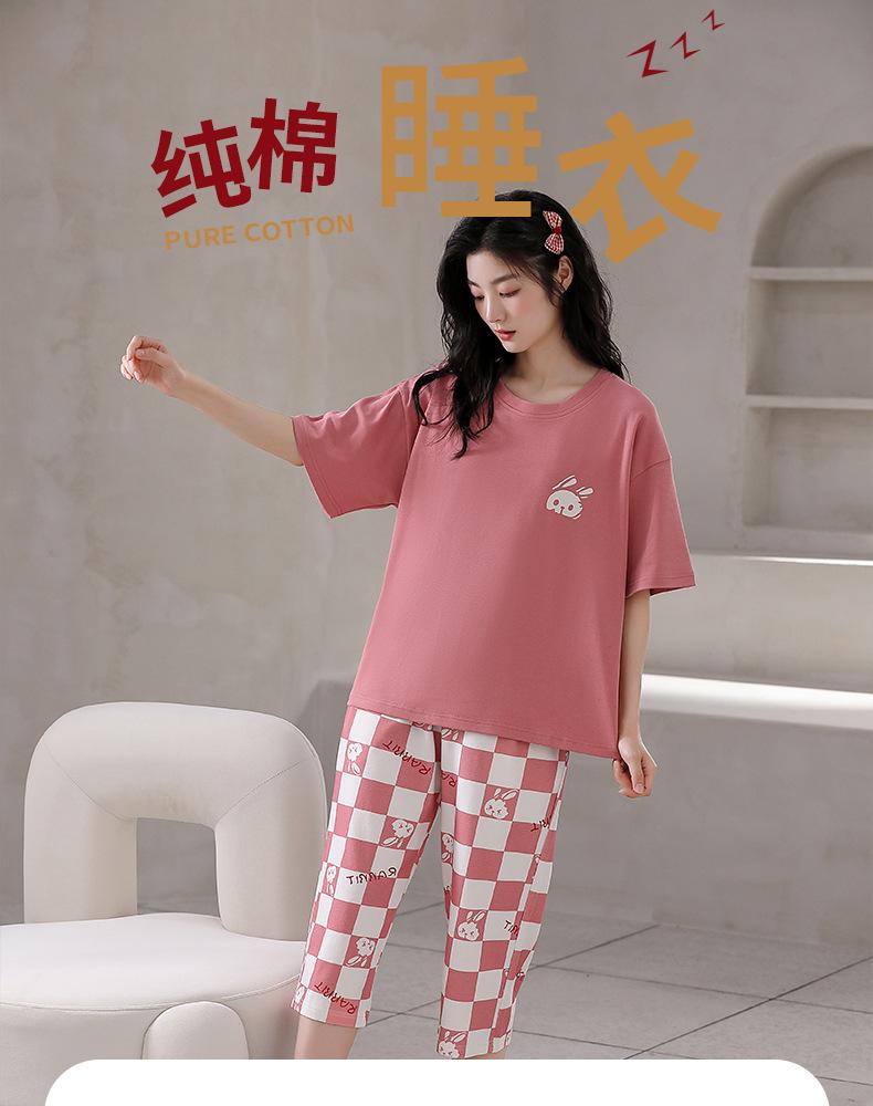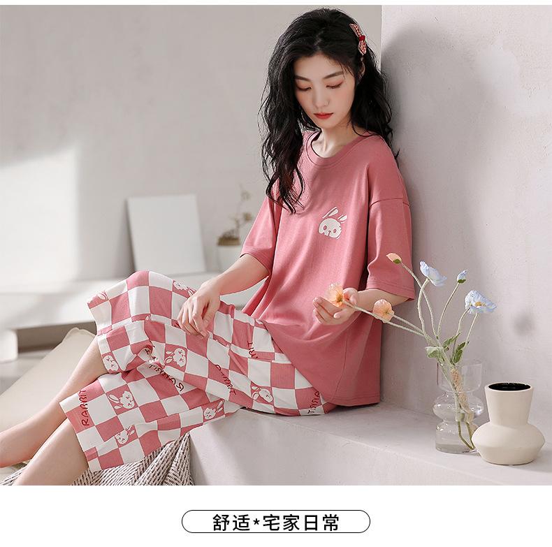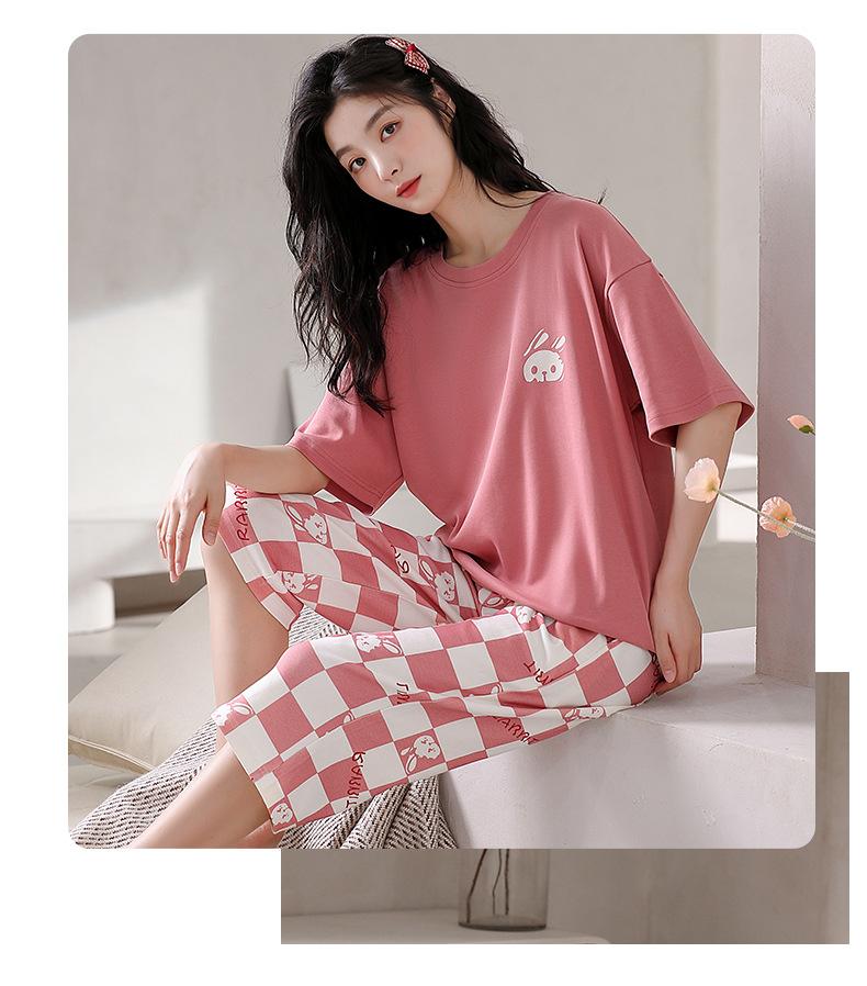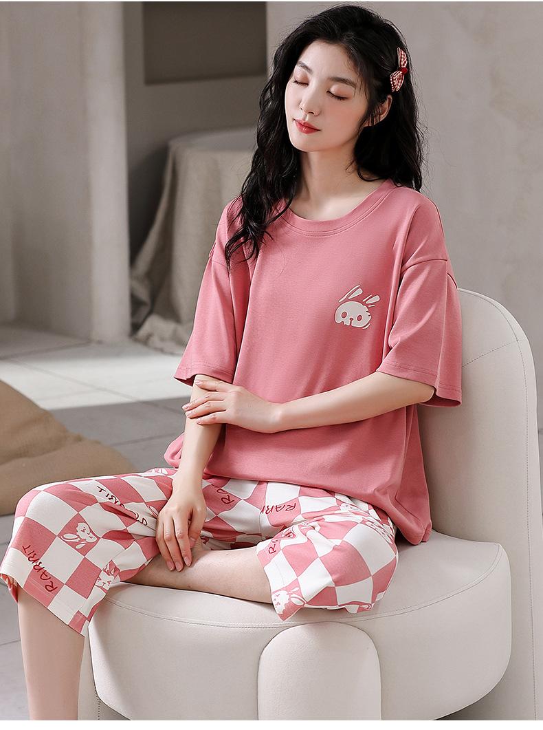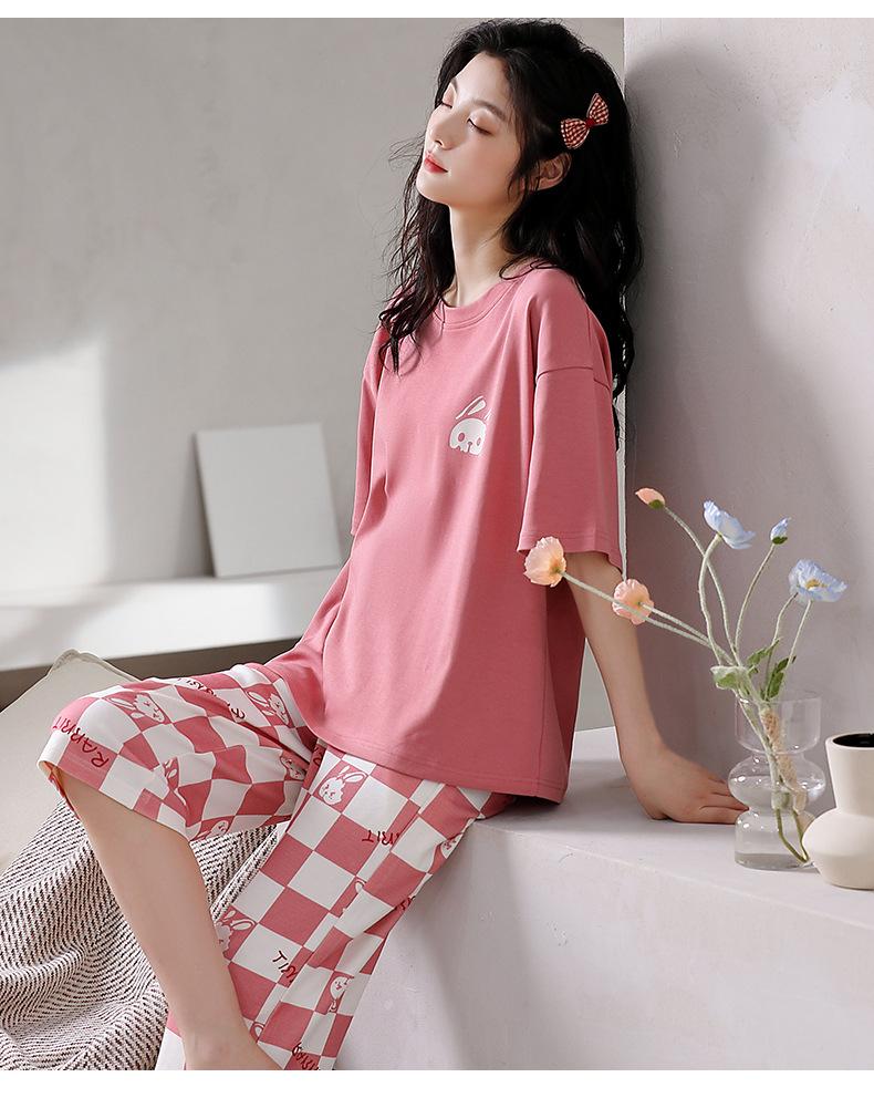 Pijama de Verano 2025 Fresco y Dulce para Mujer Algodón Fino Manga Corta Pantalones Recortados Casual Verano Ropa para el Hogar Traje de Mujer