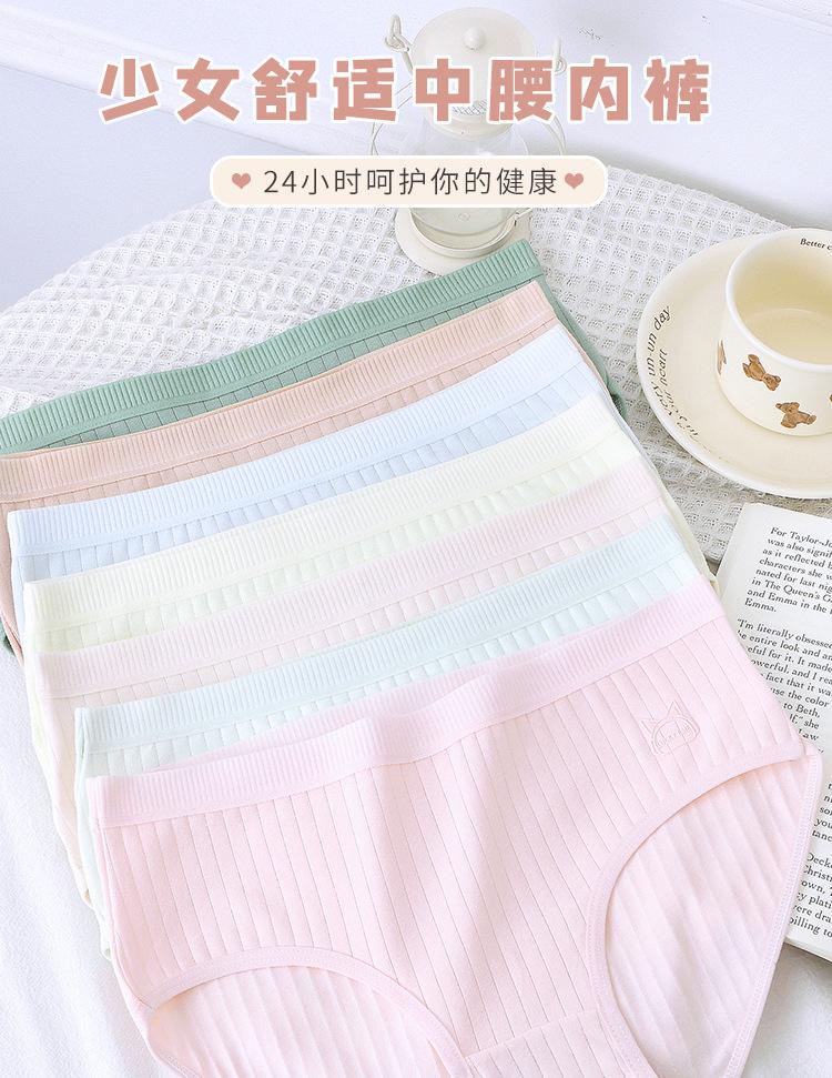 Ropa interior de mujer de algodón puro con hilo fino, para niñas, color lindo, entrepierna de algodón puro, cintura media, calzones japoneses para niñas