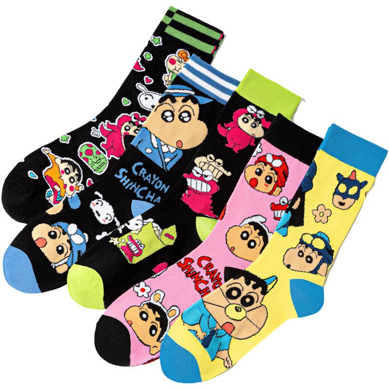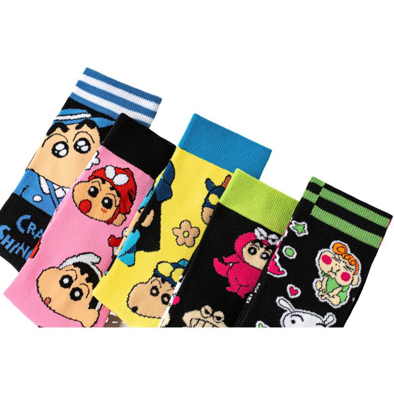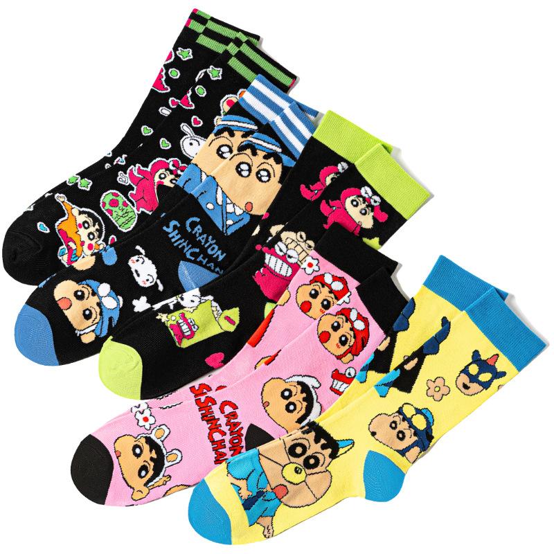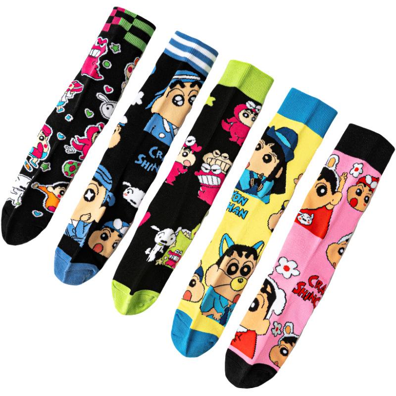 Calcetines de Algodón de Dibujos Animados Estilo Japonés para Mujer, Calcetines Anime de Dibujos Animados Lindos de Tubo Medio Amazon, Calcetines de Moda Crayon Shin-Chan, Venta al por Mayor Transfronteriza